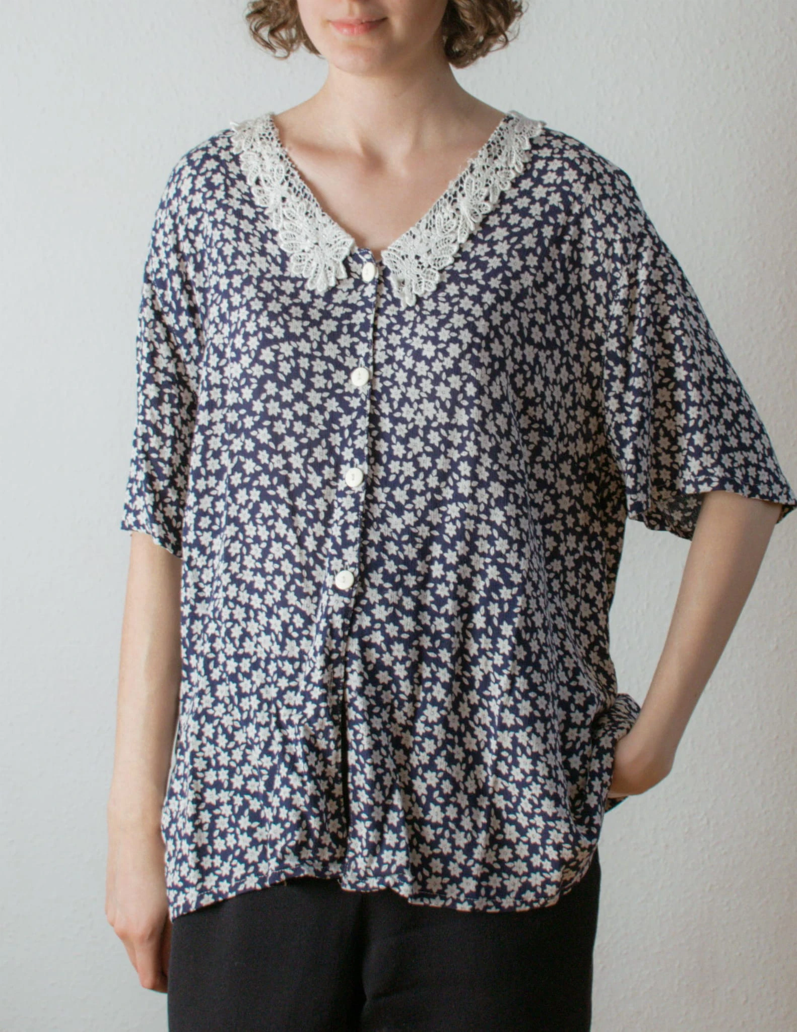 Bluzka w kwiatki z kołnierzykiem 100% wiskoza XL