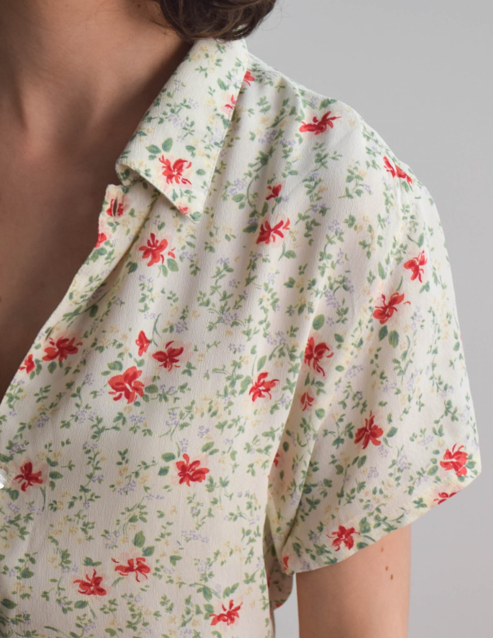 Carli Gry ecru w drobne rośliny 100% wiskoza M