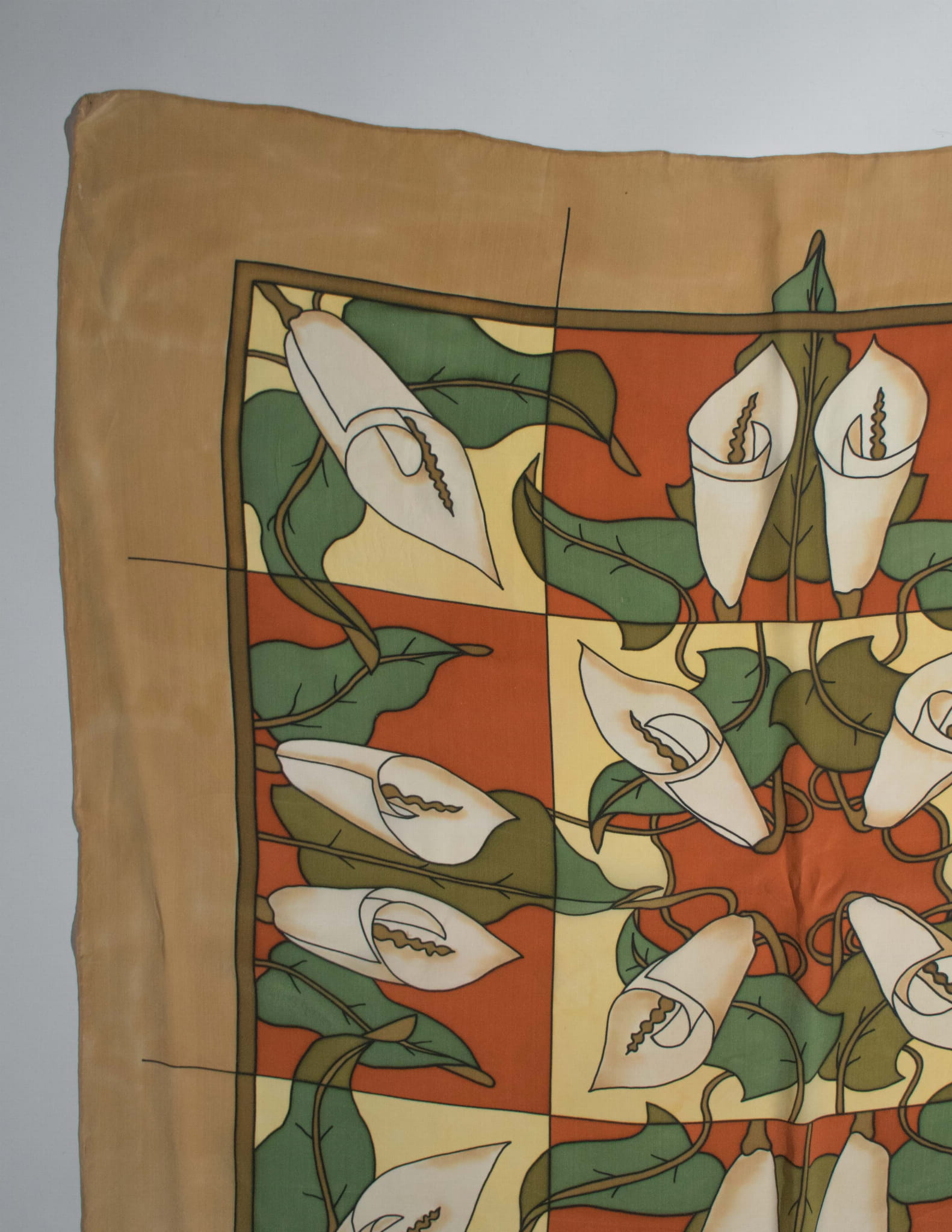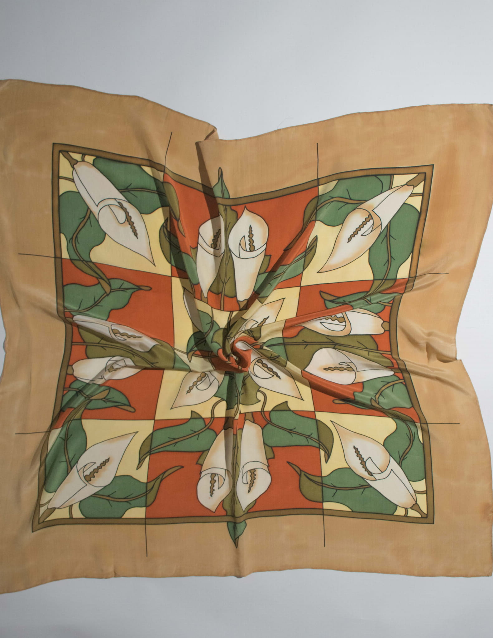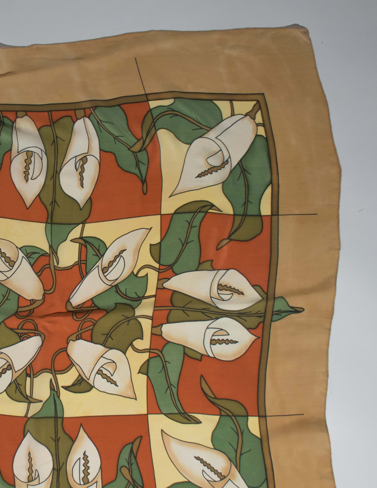 Chusta 100% jedwab w białe kalie kwiaty 85x85cm