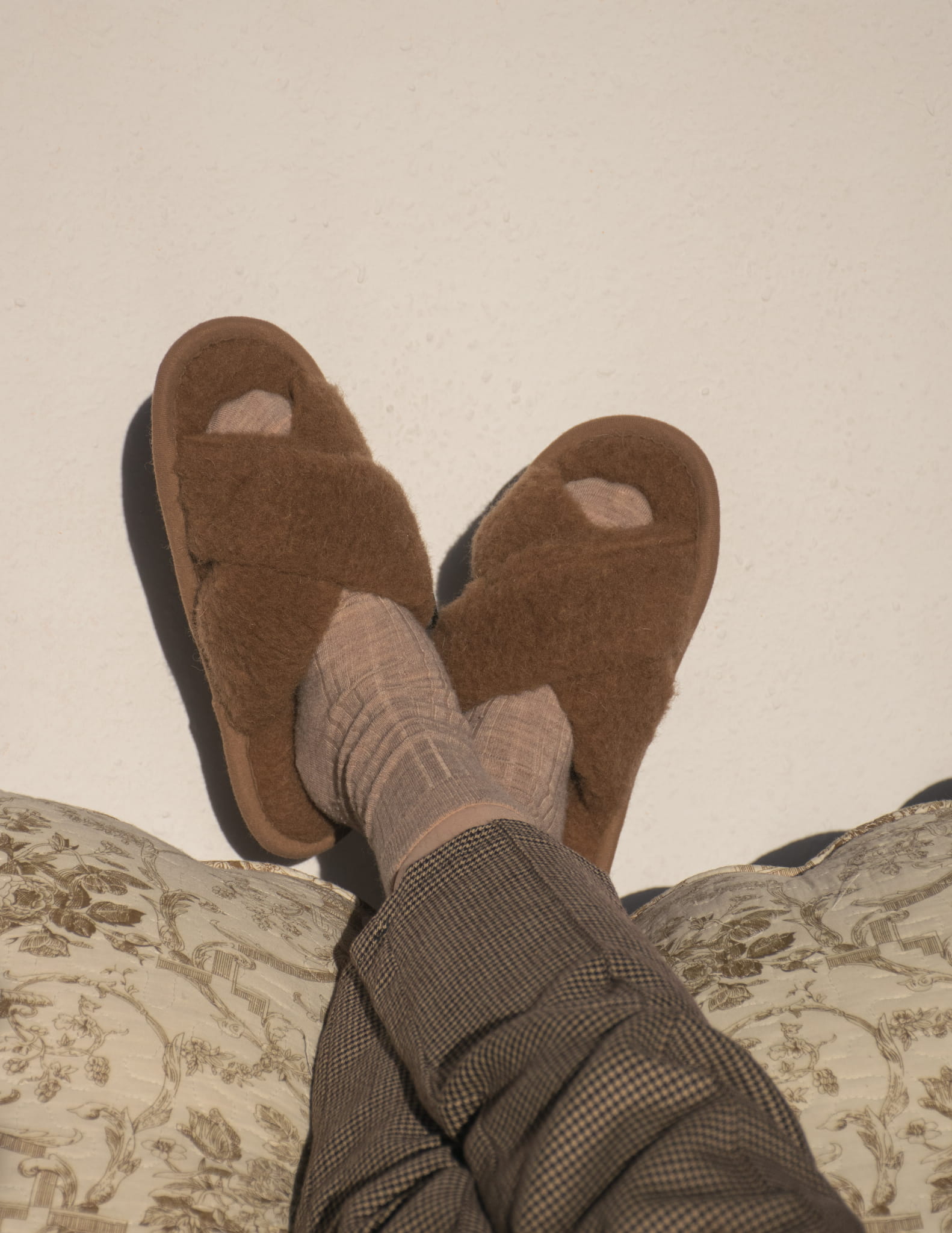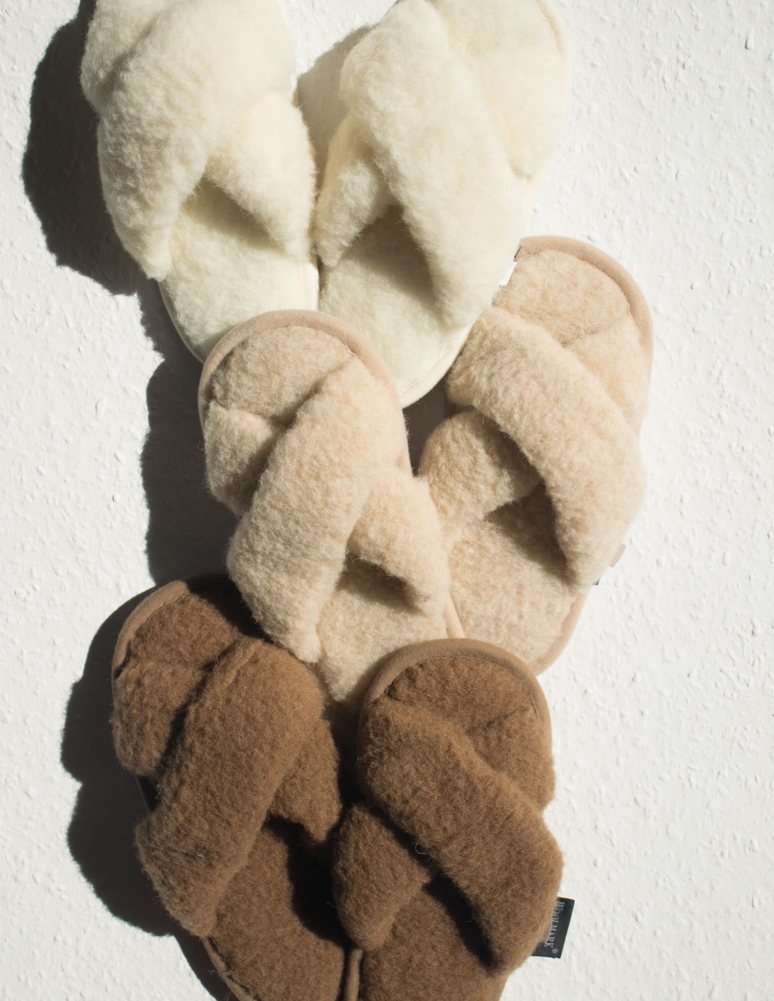Każda para jest szyta ręcznie z naturalnego surowca jakim jest wełna dlatego możliwe są minimalne różnice w kształcie obuwia, długości włosia oraz kolorze wełny