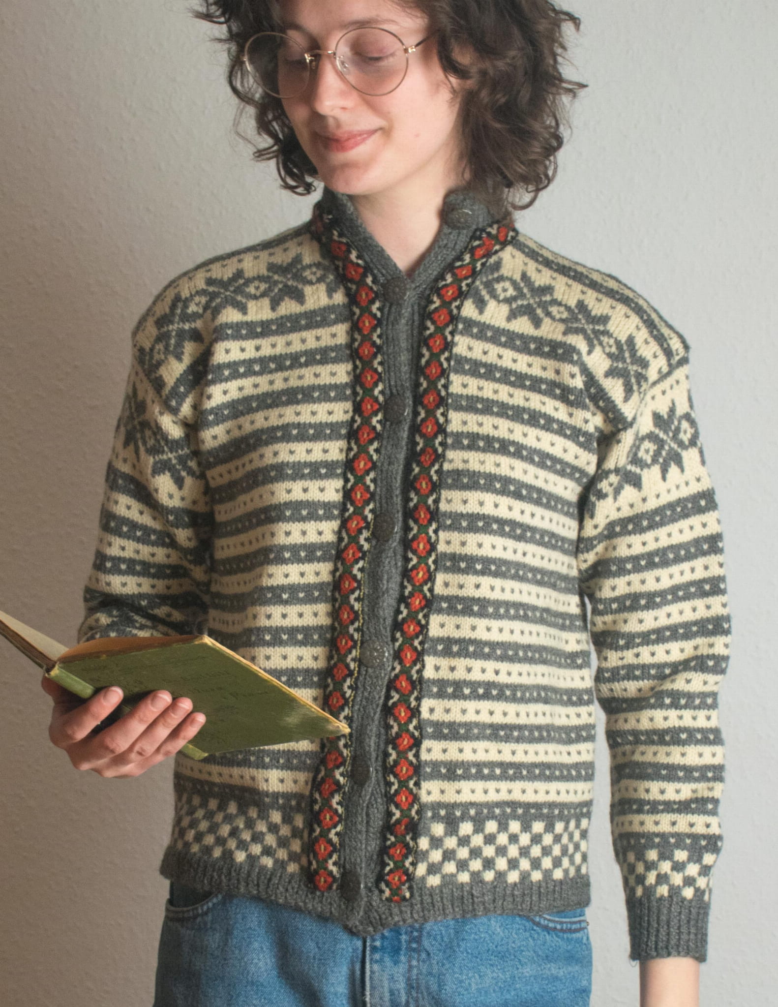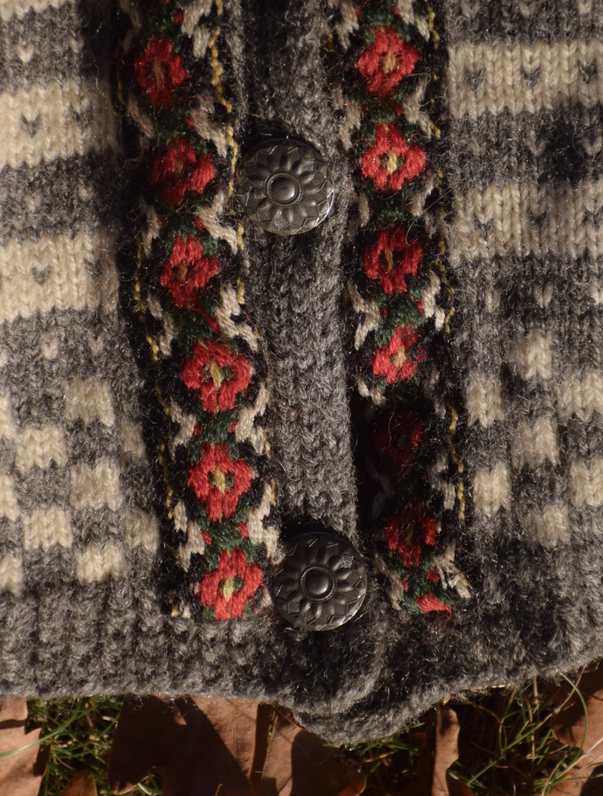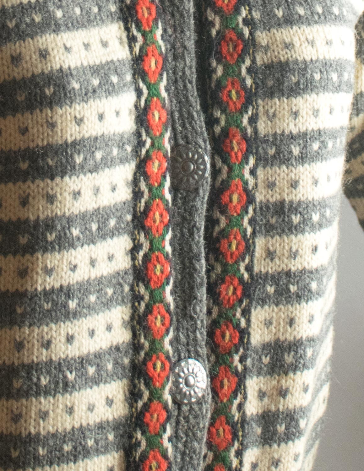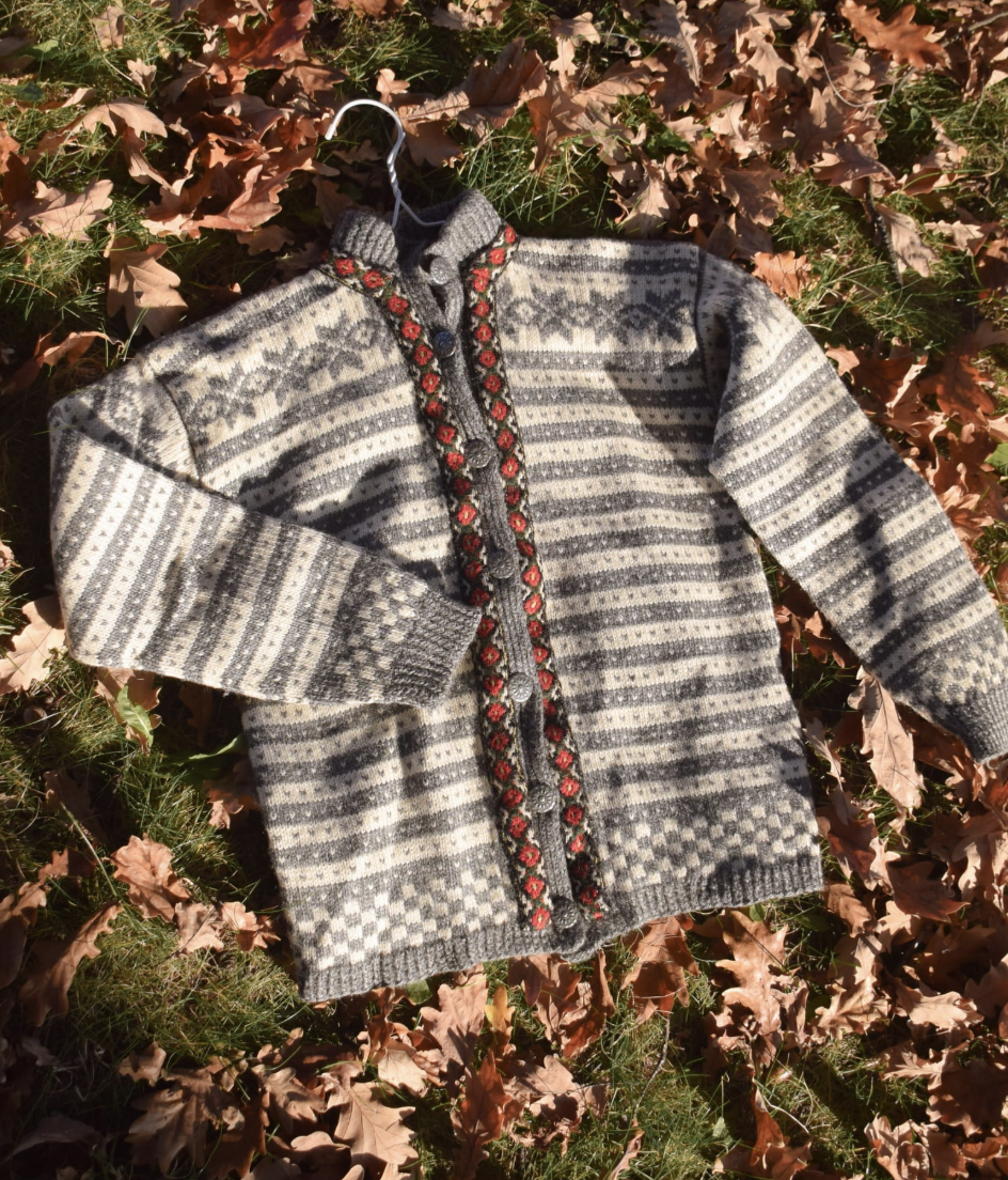 Kardigan 100% wełna norweski szary i ecru XS