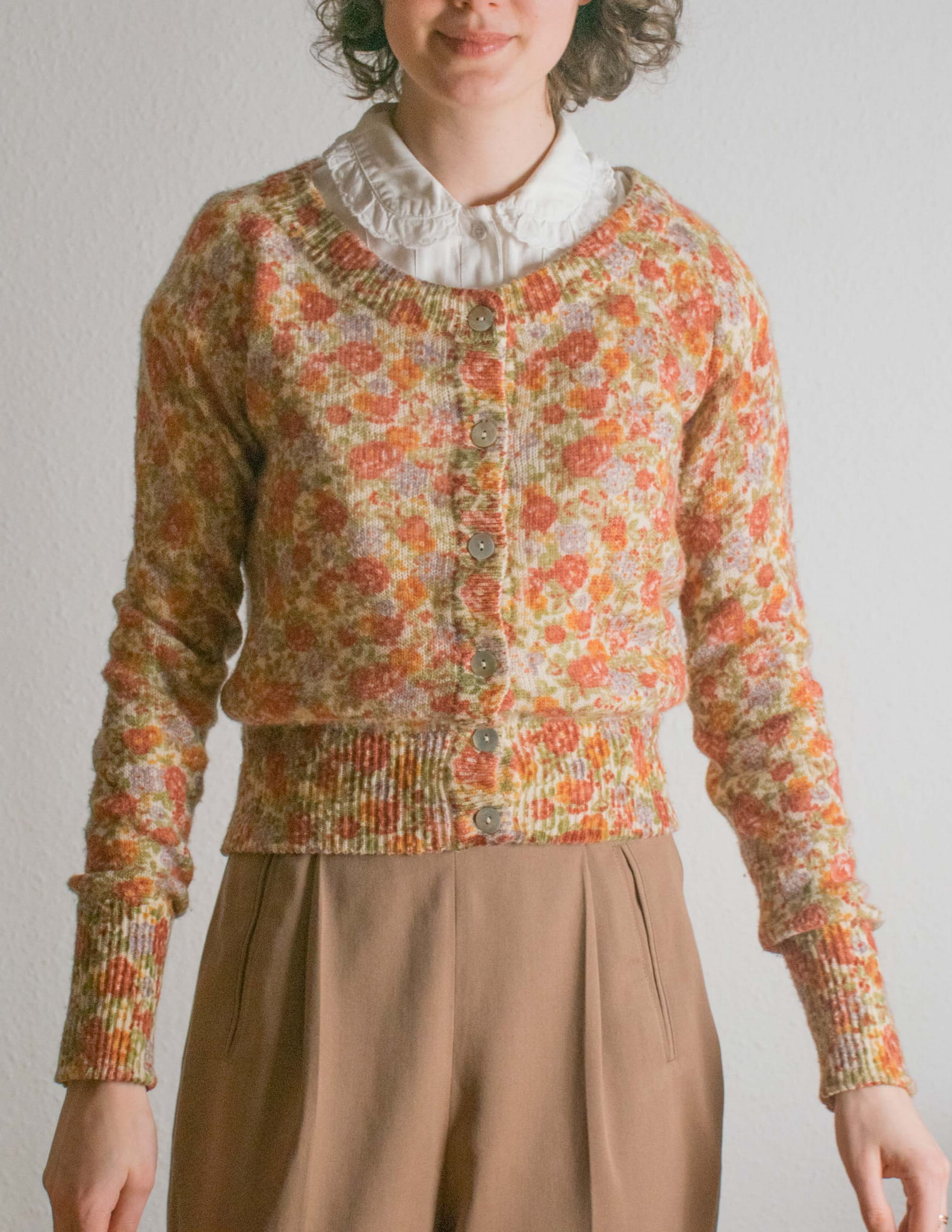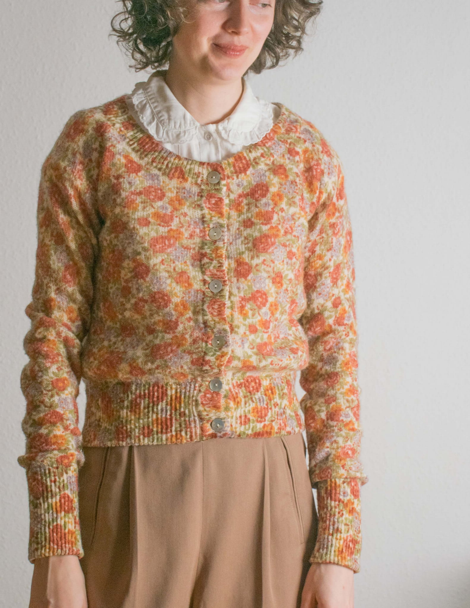 Kardigan malownicze kwiaty 50% wełna i akryl S | k09