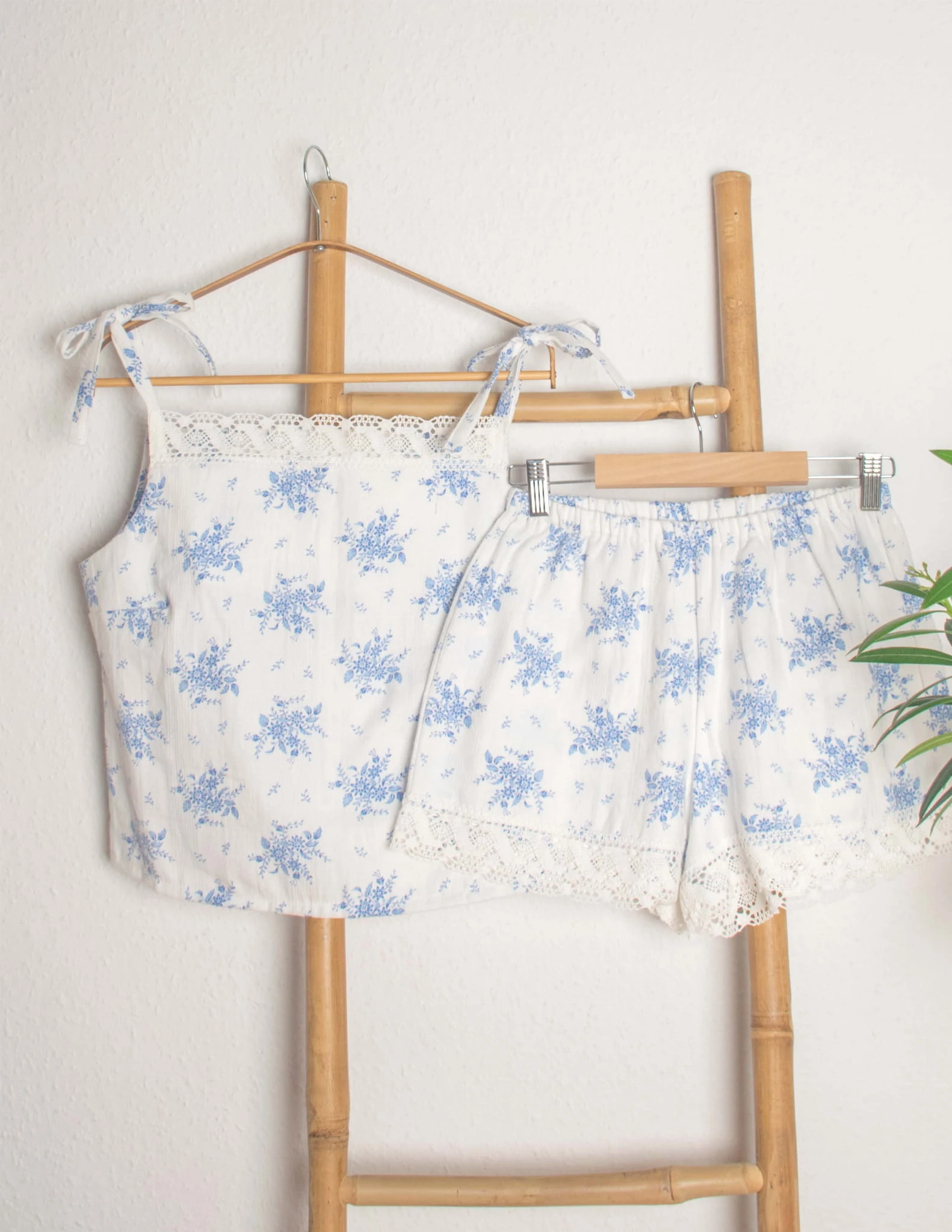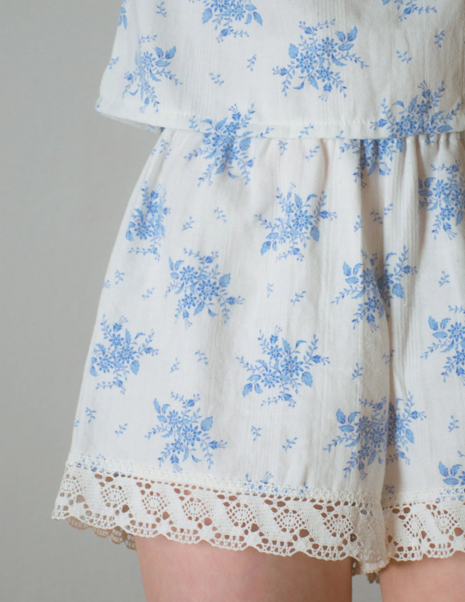Komplet błękitne kwiaty 100% bawełna S uszyty ręcznie upcykling
