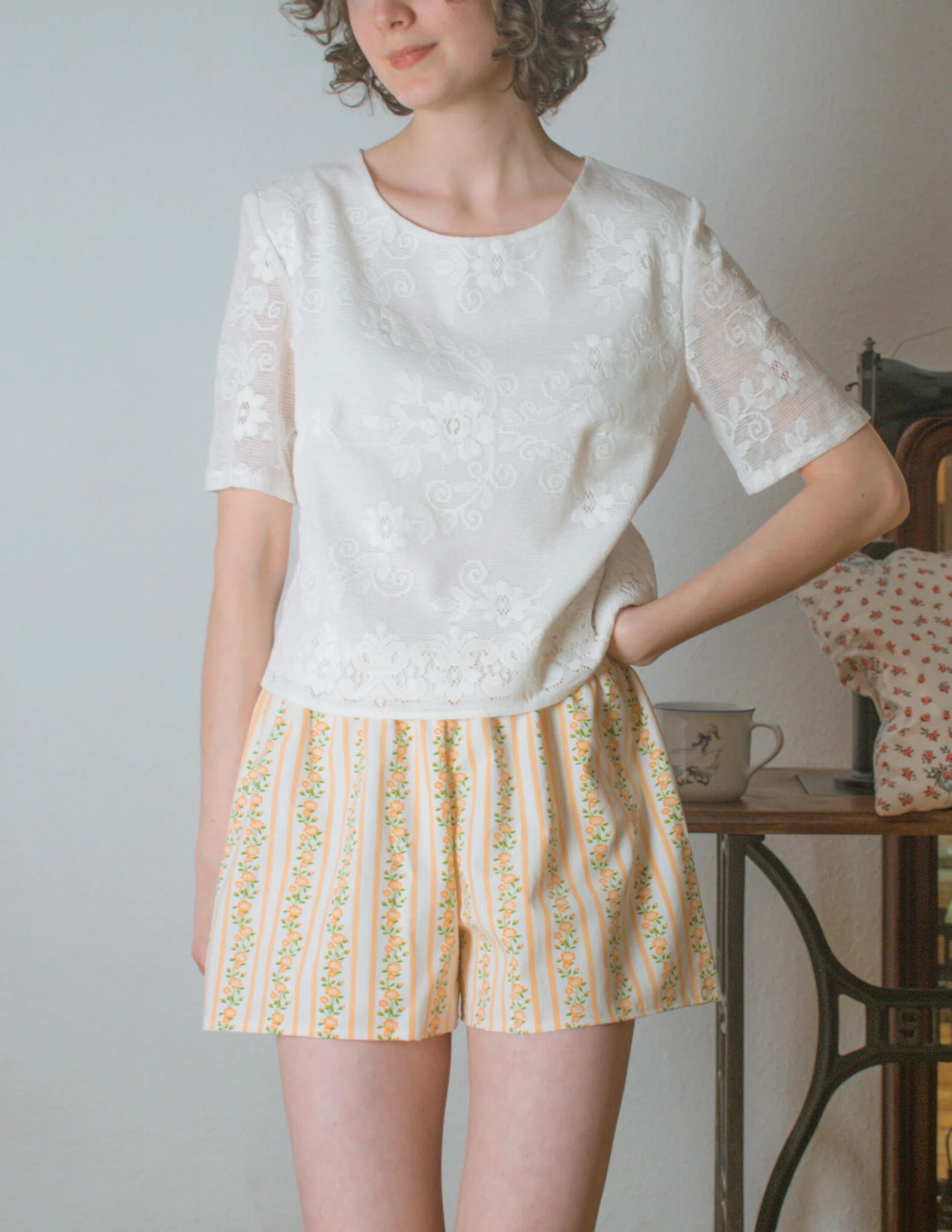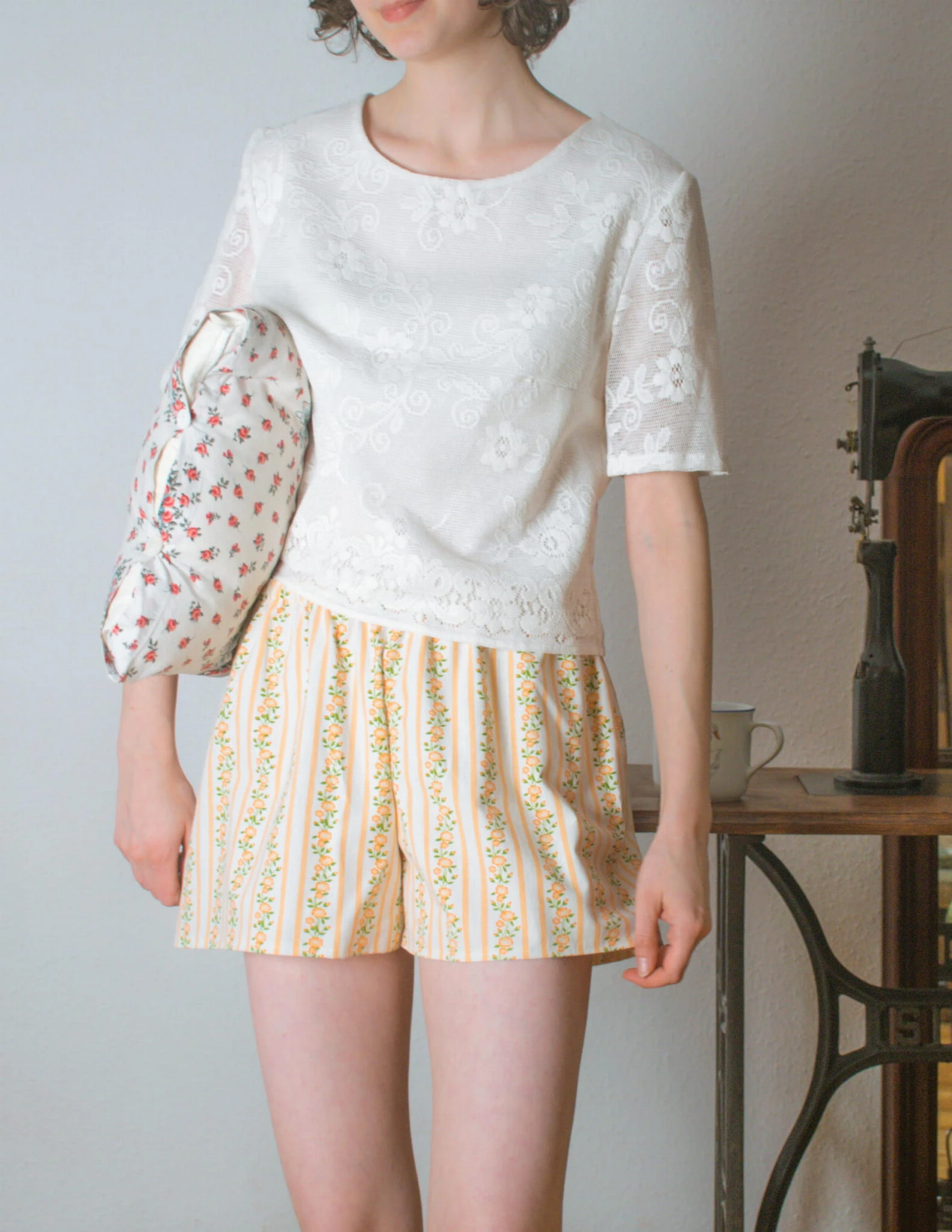 Komplet koronkowe róże i paski 100% bawełna S uszyty ręcznie upcykling