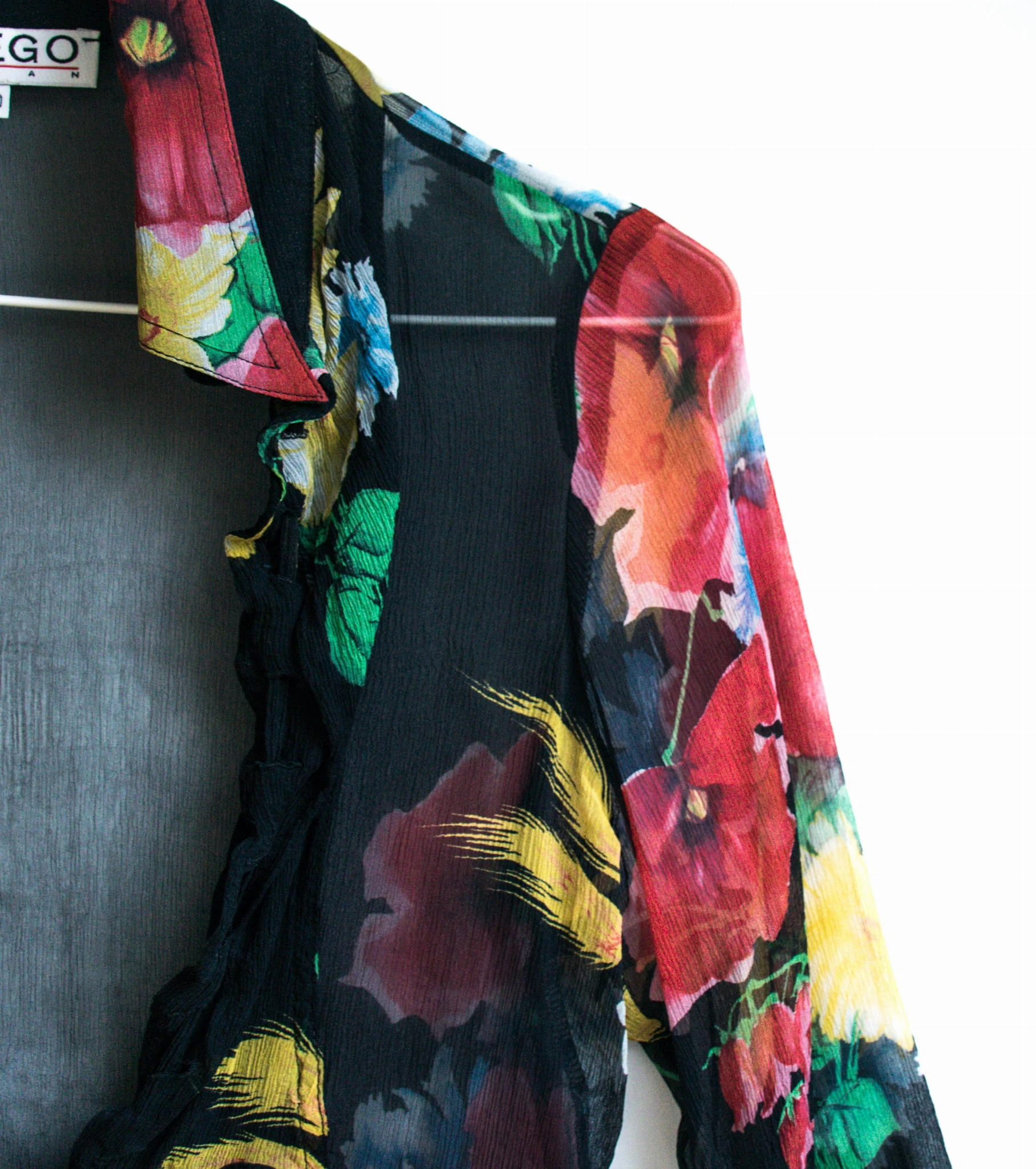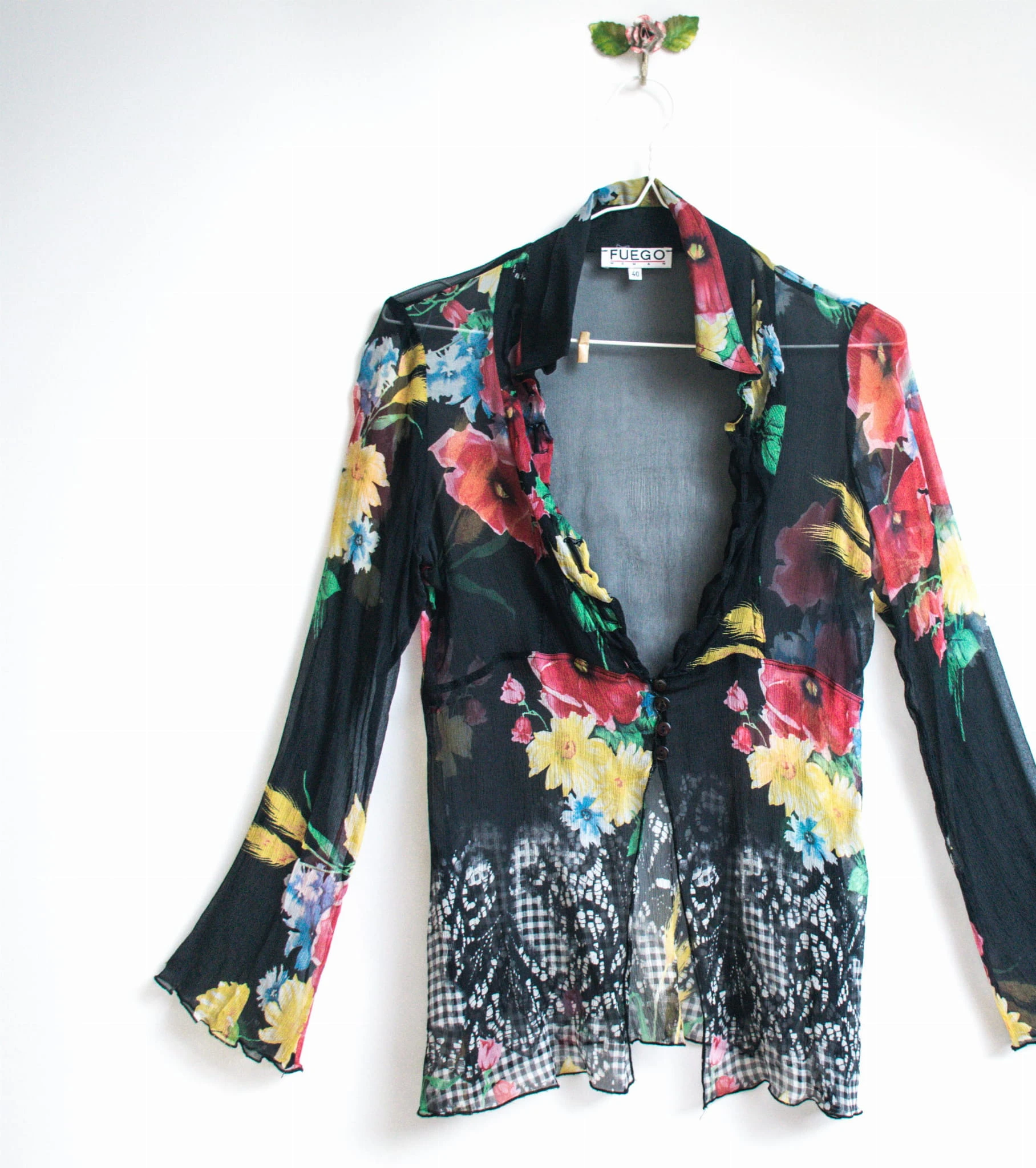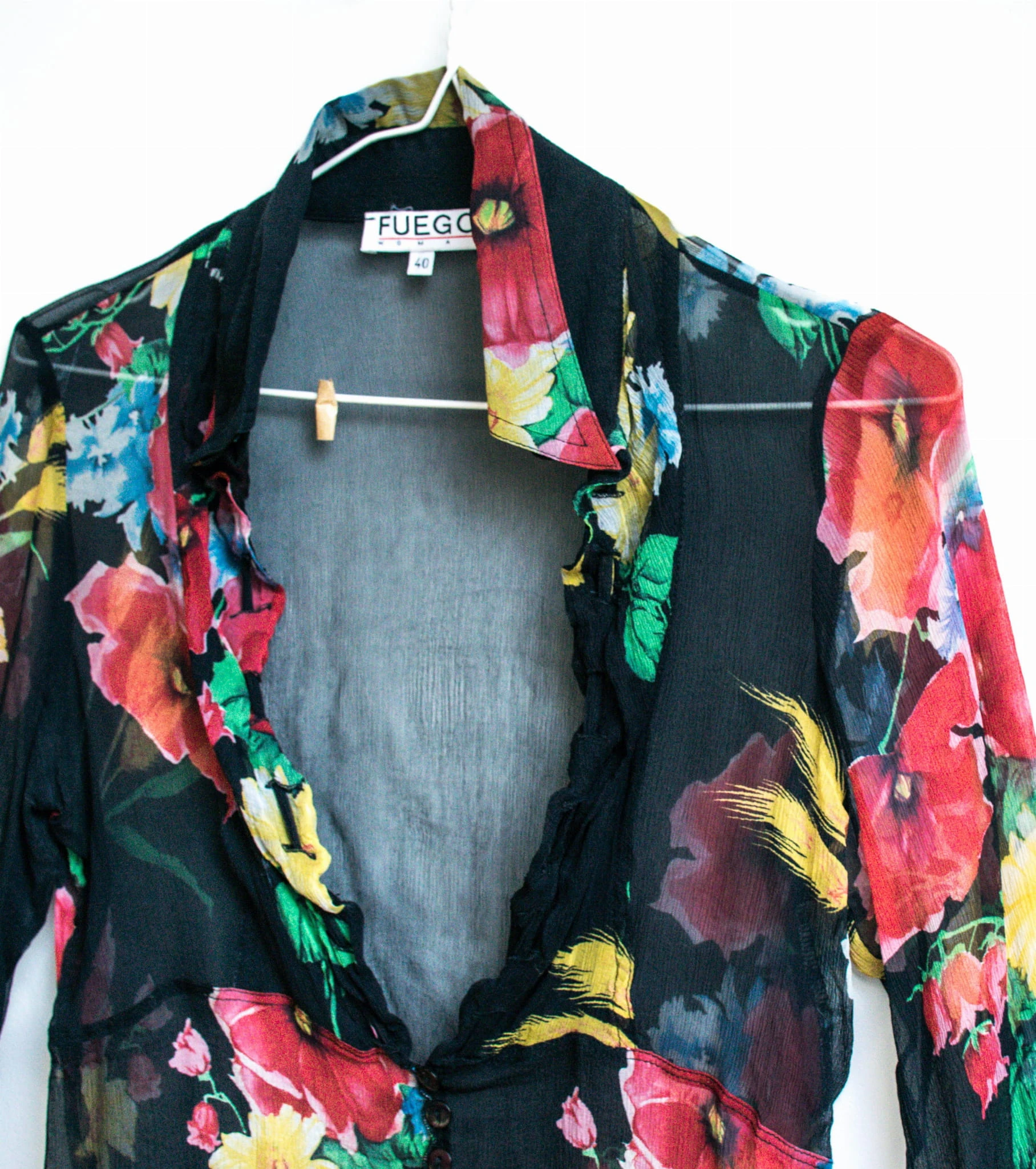 Koszula 100% jedwab czarna mgiełka w maki XS/S