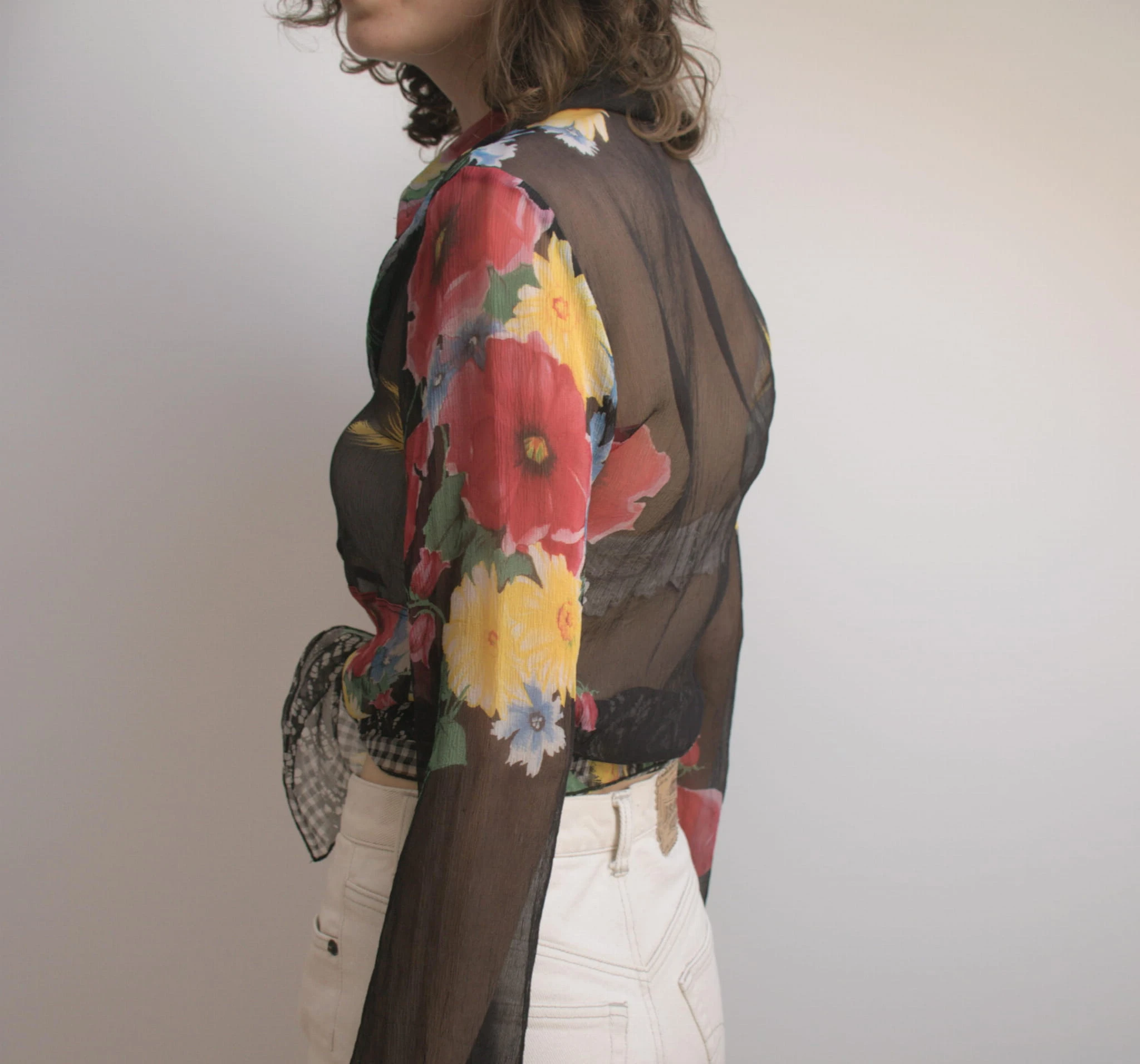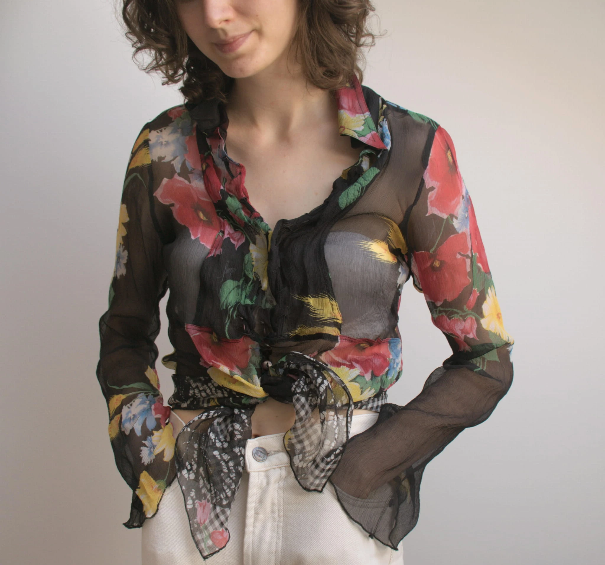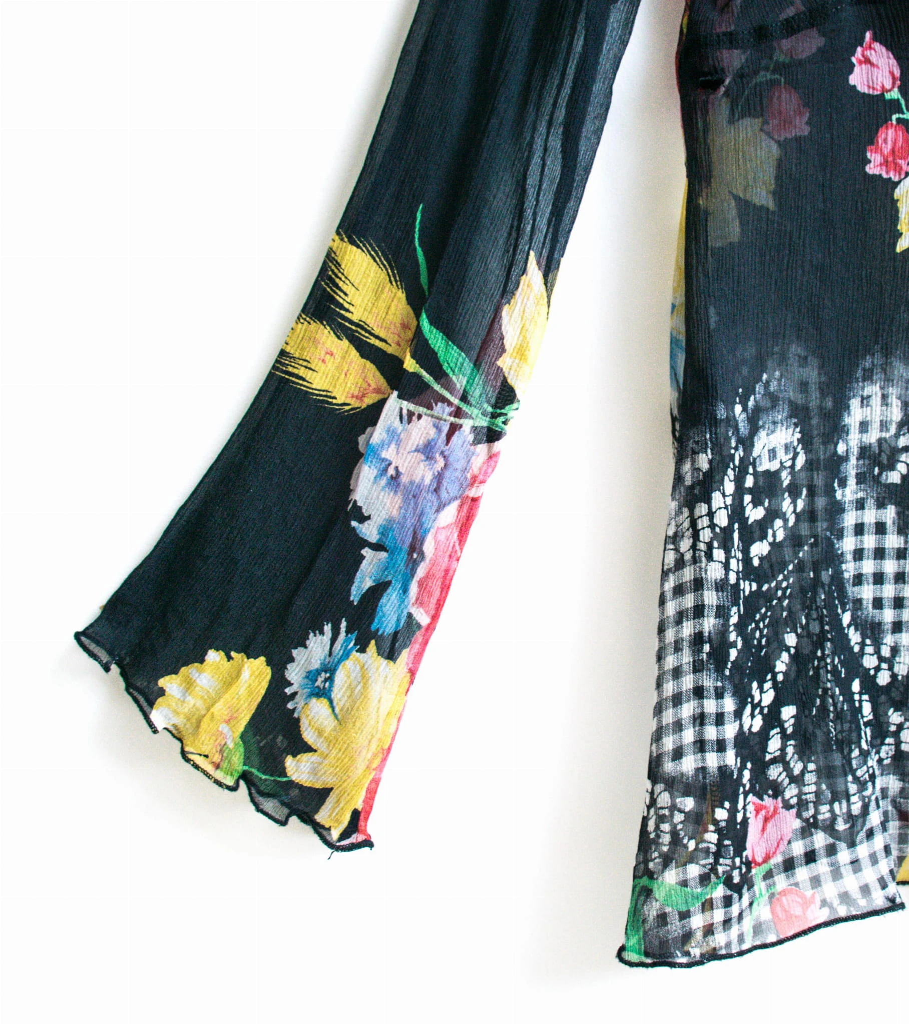 Koszula 100% jedwab czarna mgiełka w maki XS/S