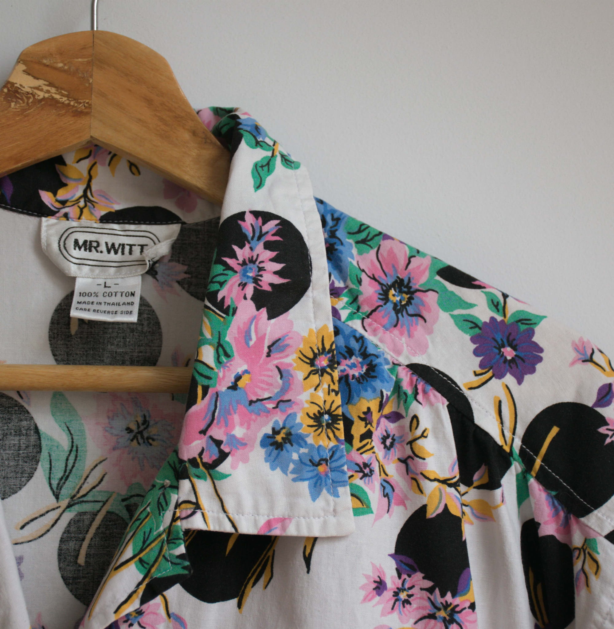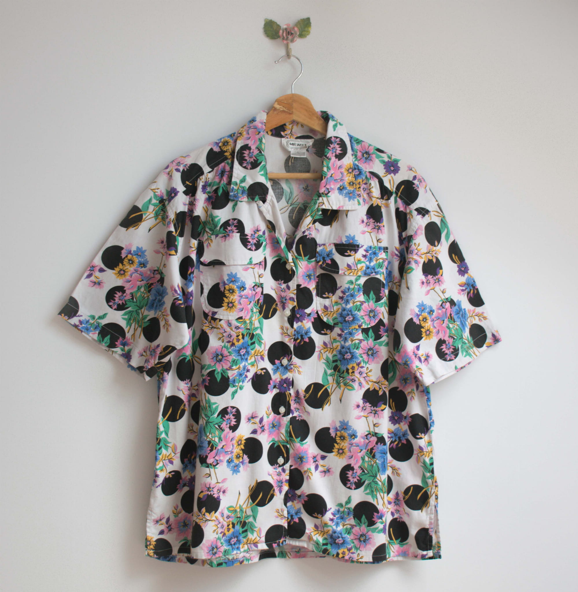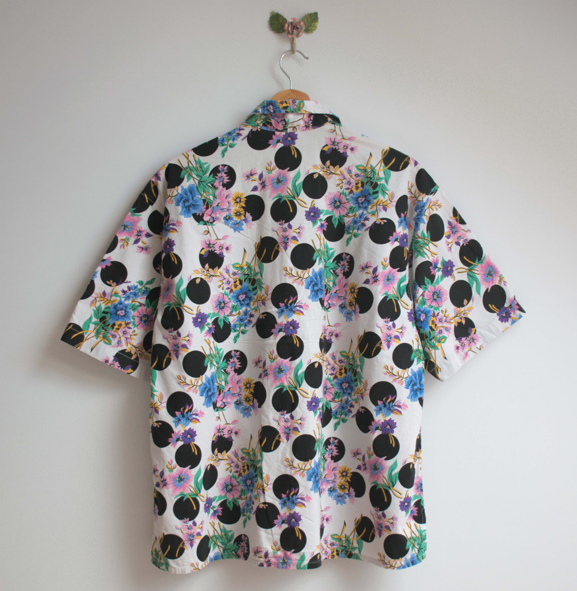 Koszula 80s w grochy i kwiaty 100% bawełna L oversize