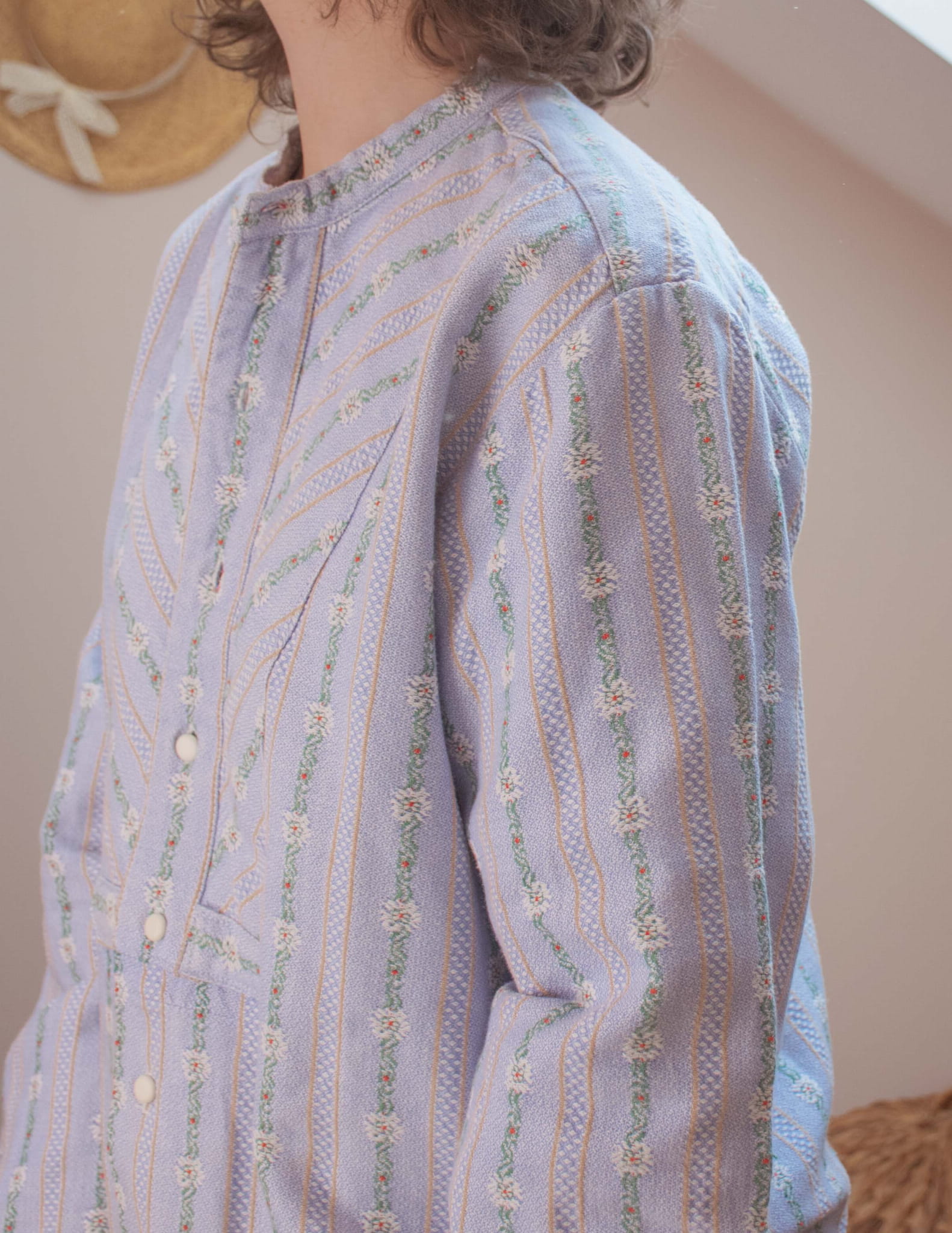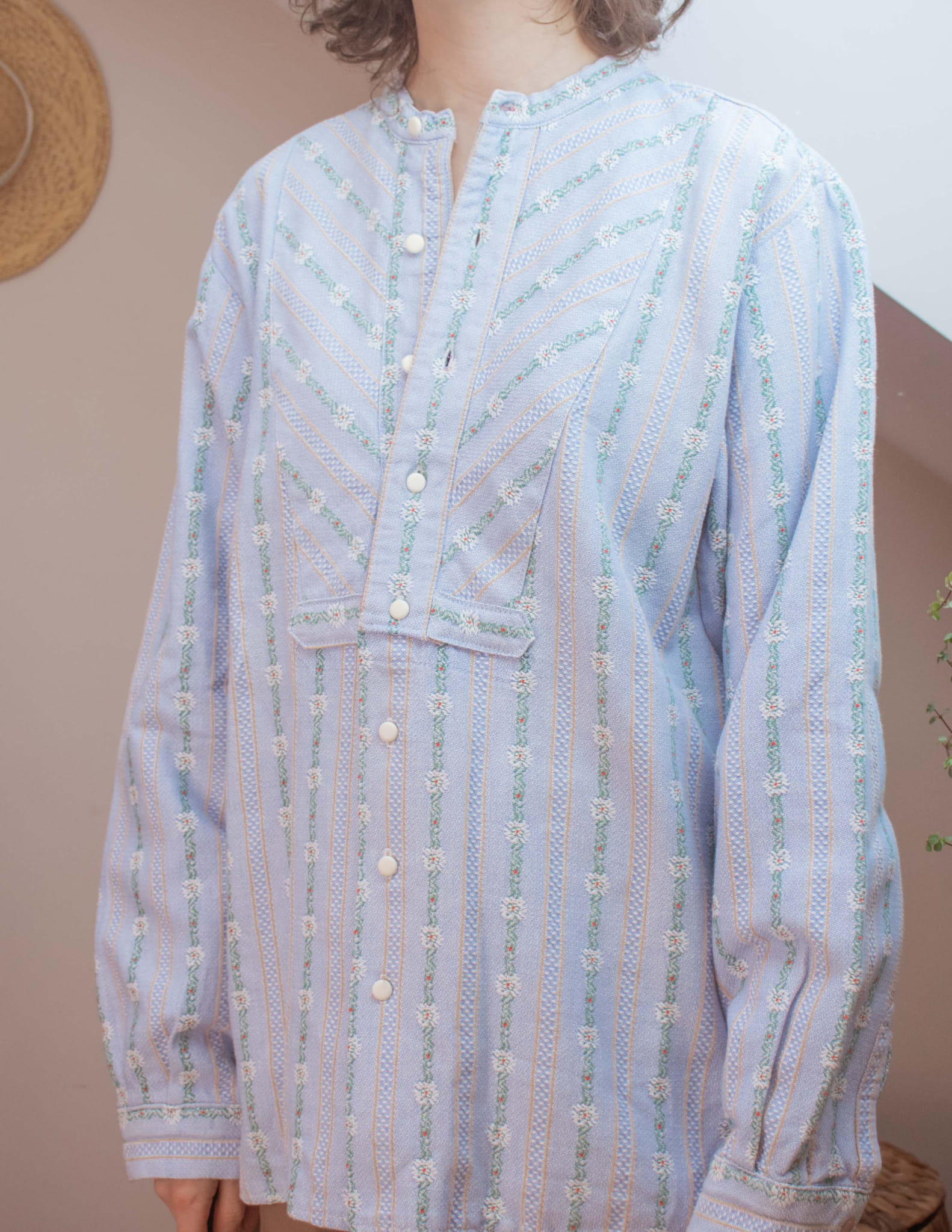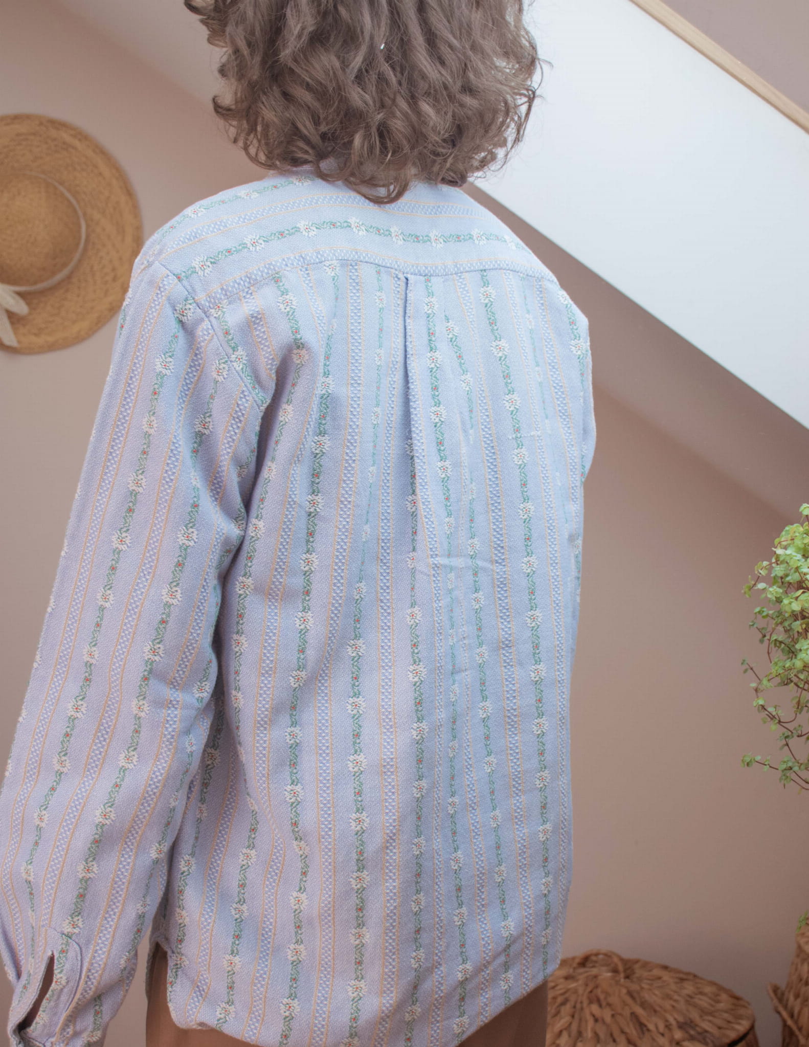 Koszula gobelinowa 100% bawełna błękitna paski kwiatki M/L