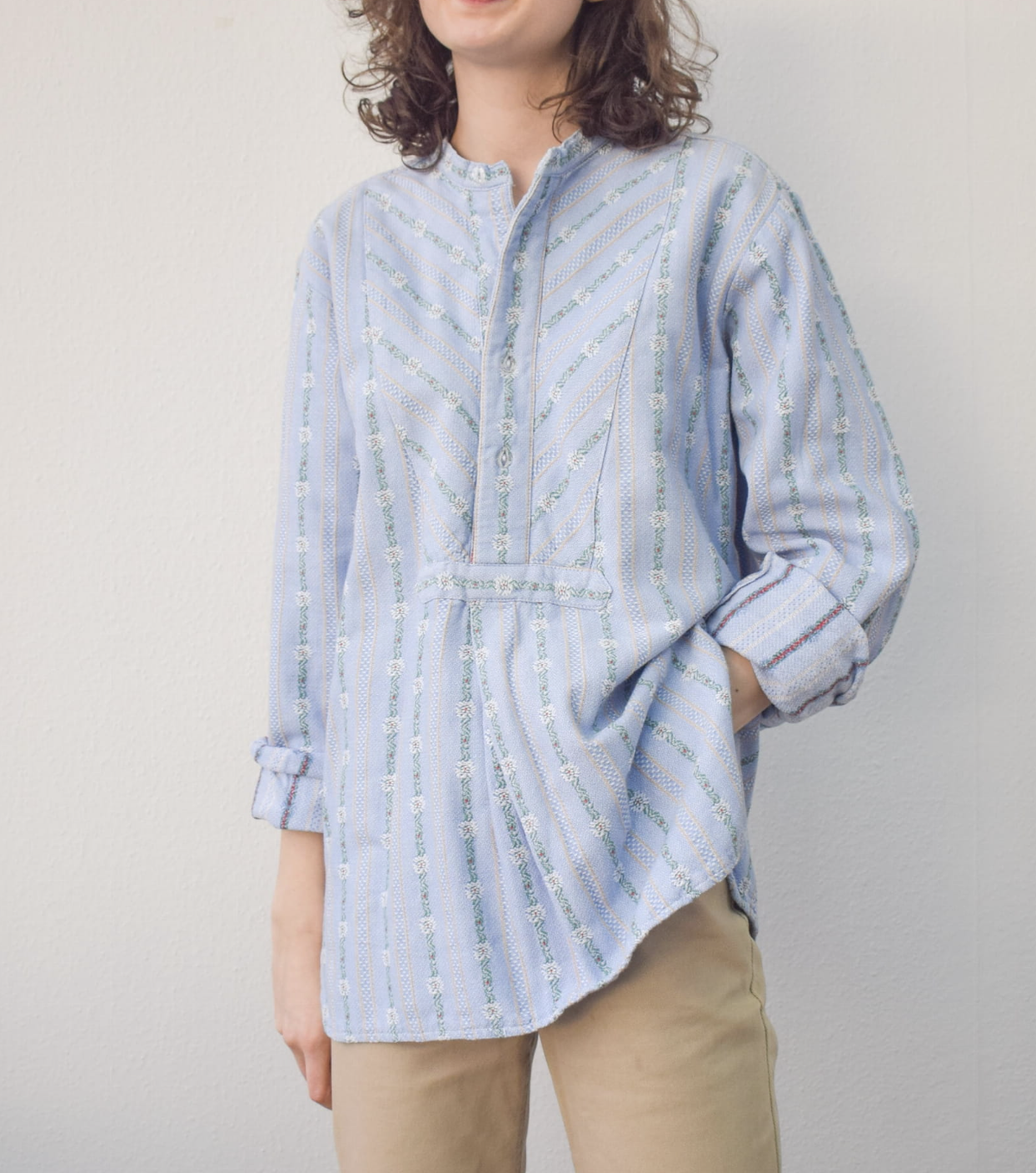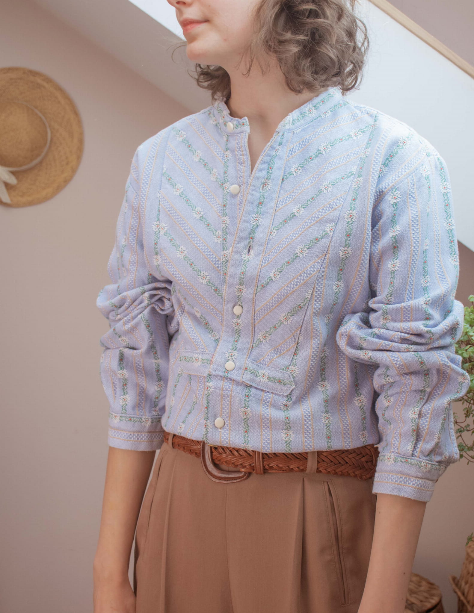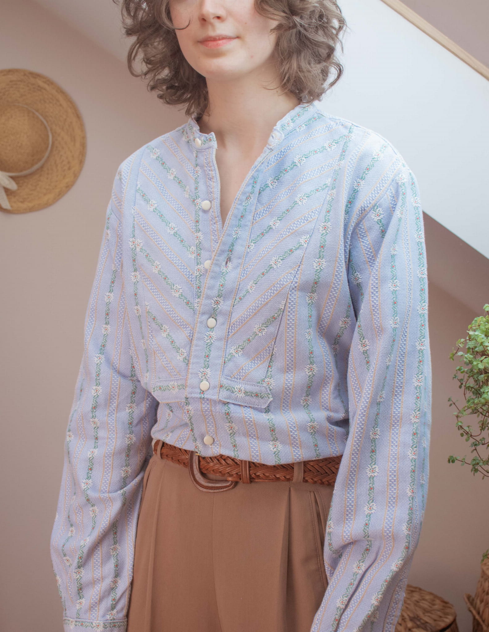 Koszula gobelinowa 100% bawełna błękitna paski kwiatki M/L