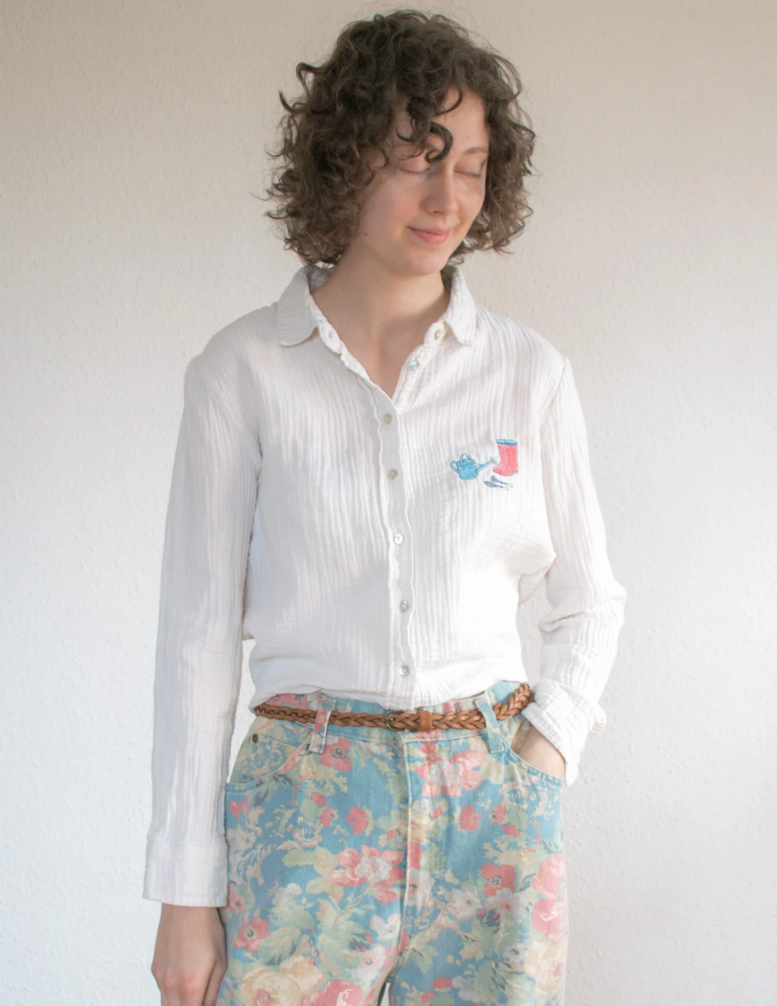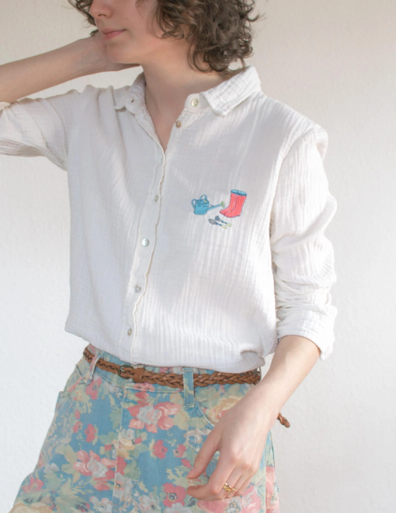 Koszula muślinowa haft ogrodnik 100% bawełna S/M