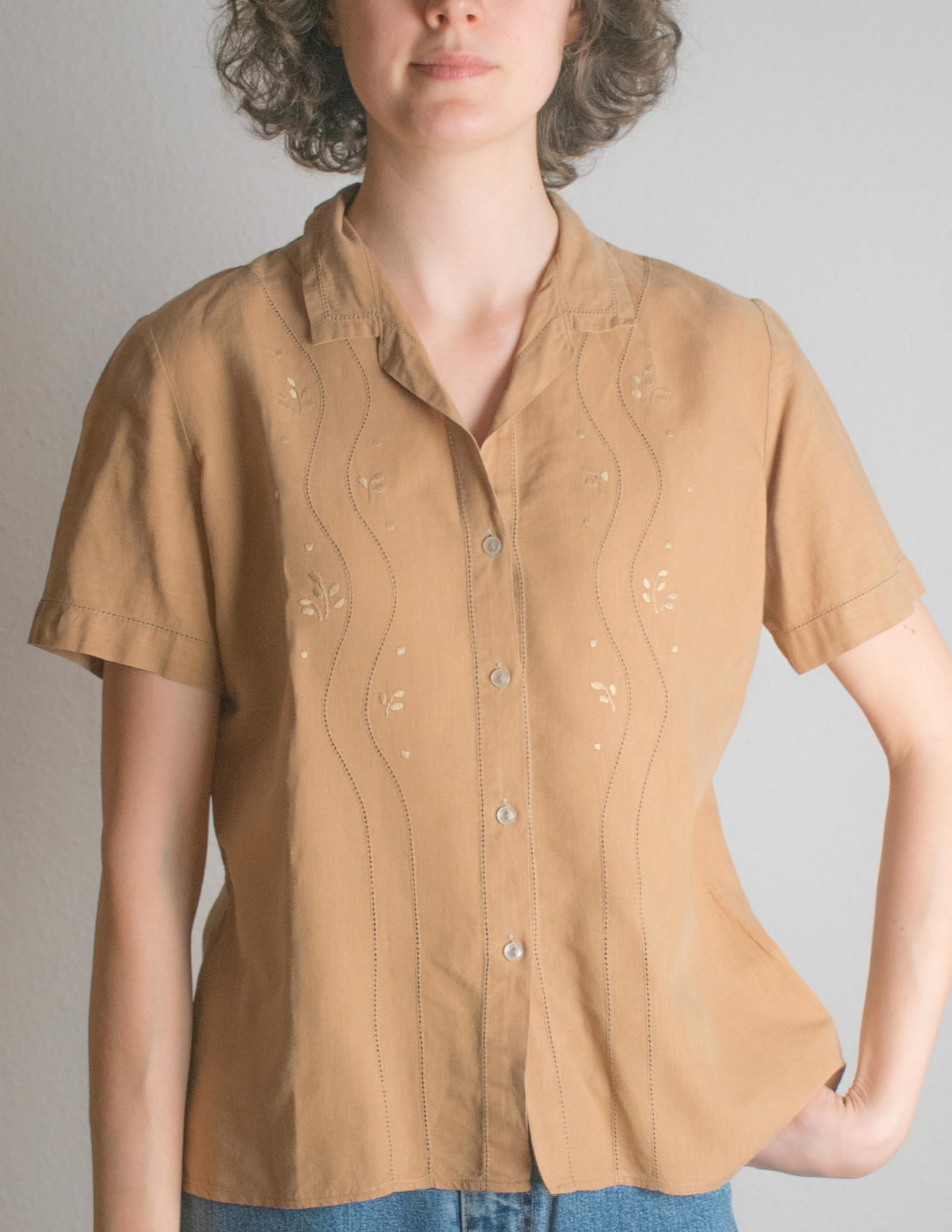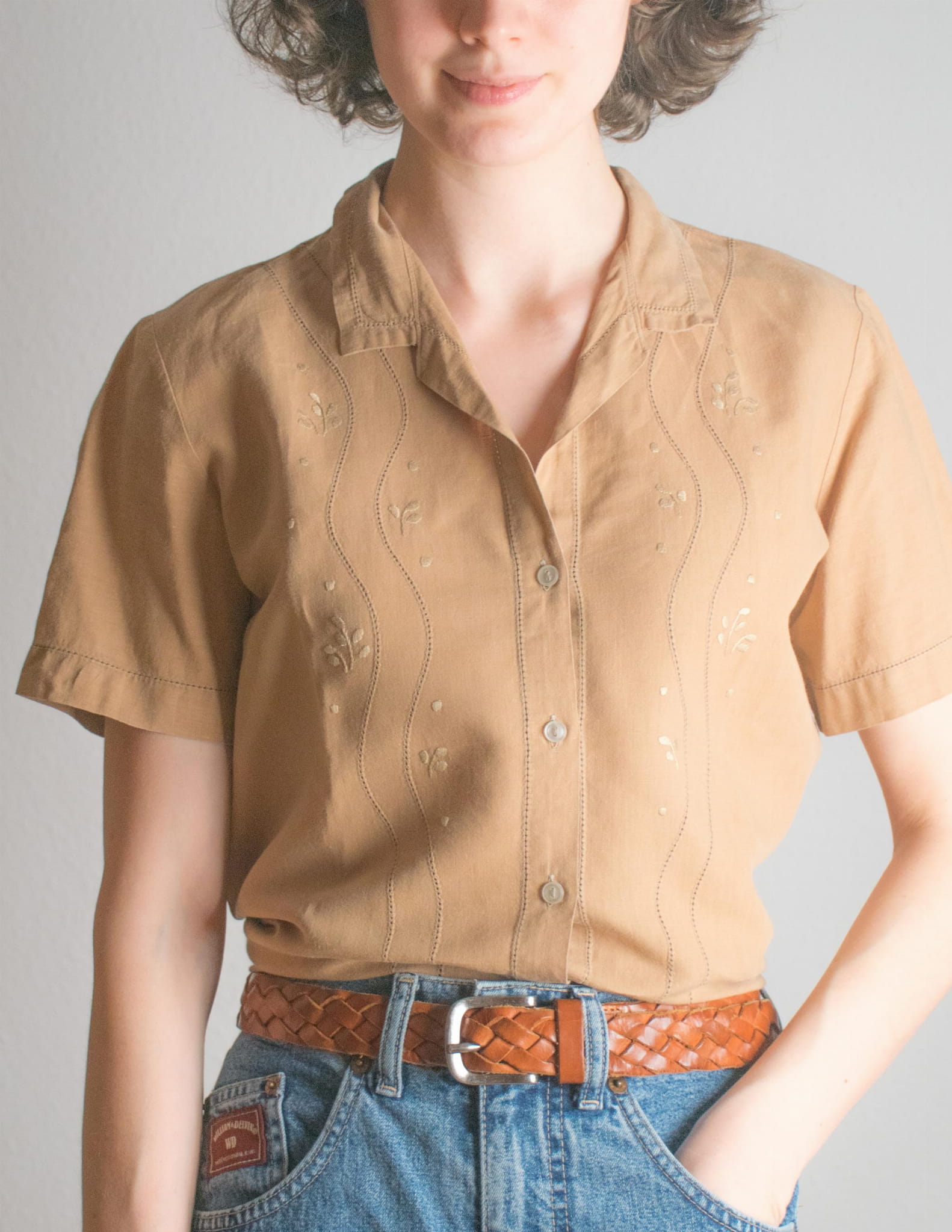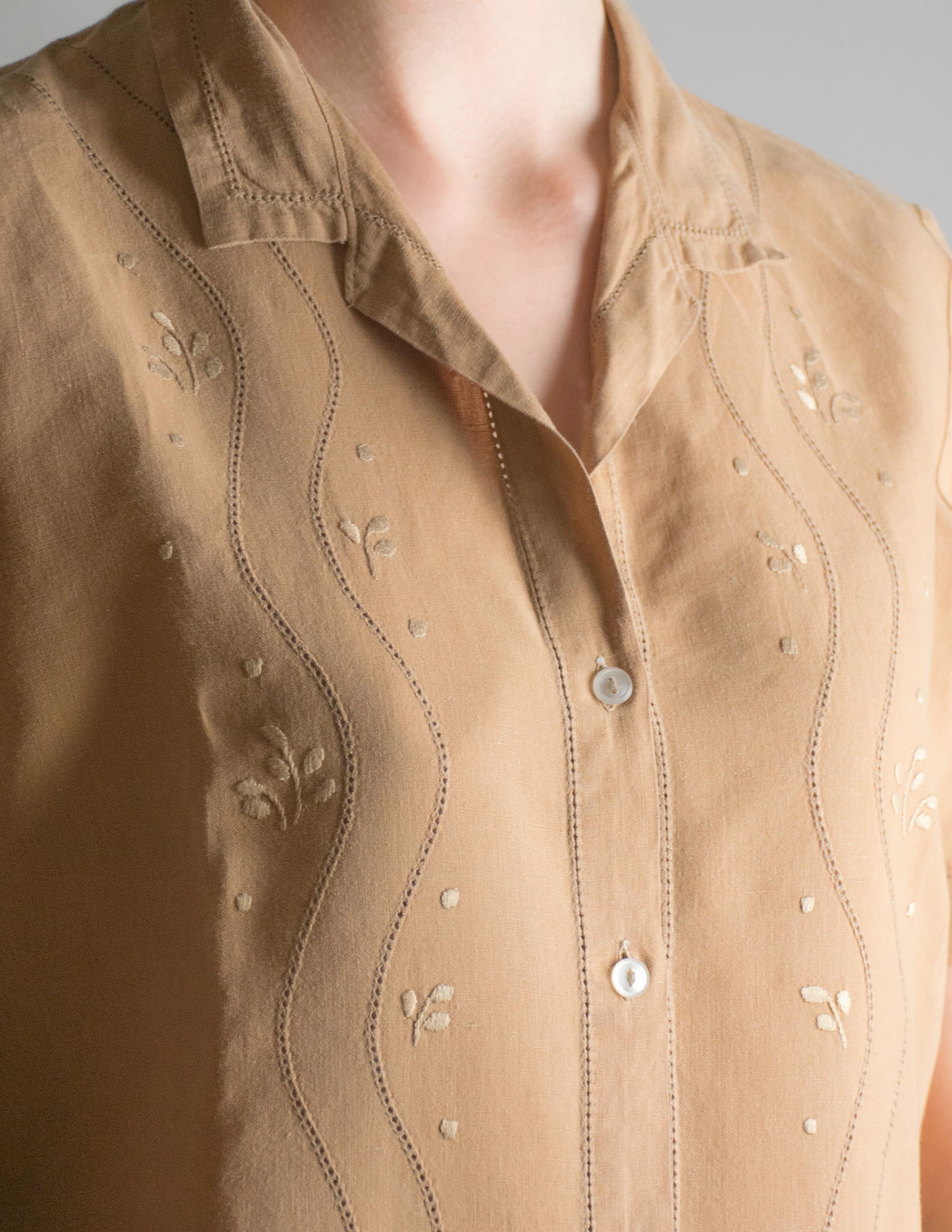 Koszula ręczny haft 100% len beż M