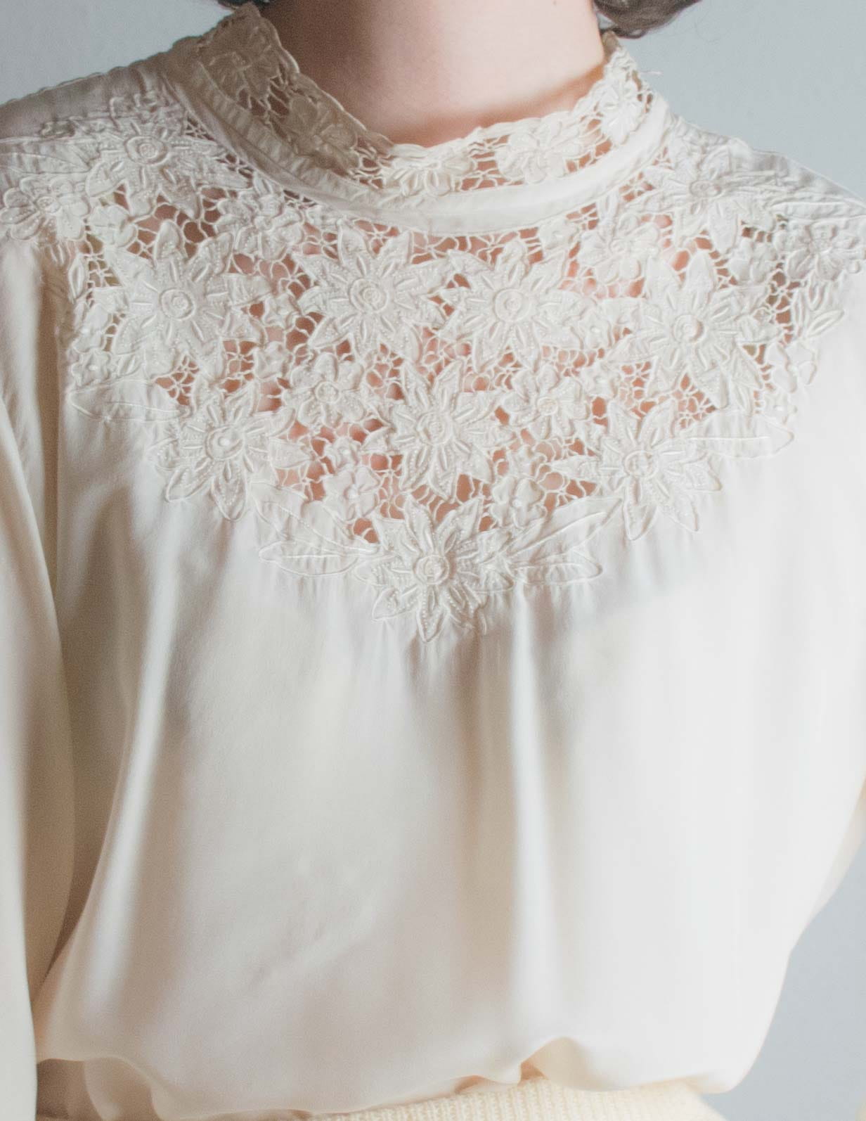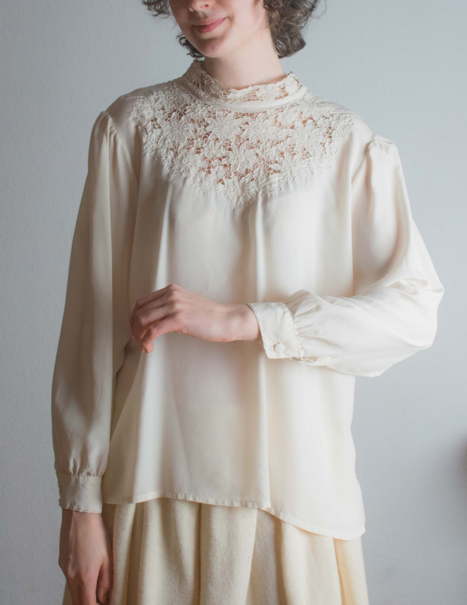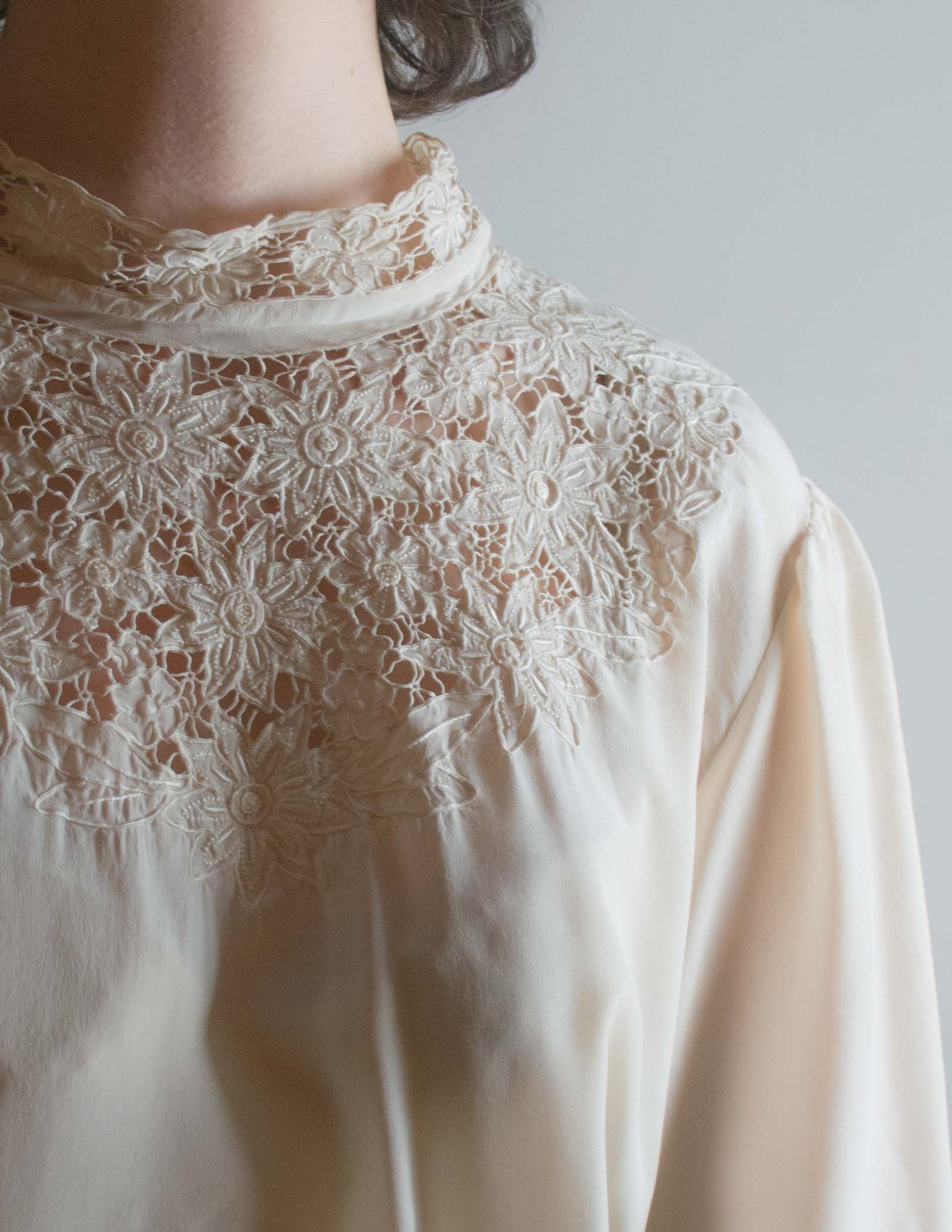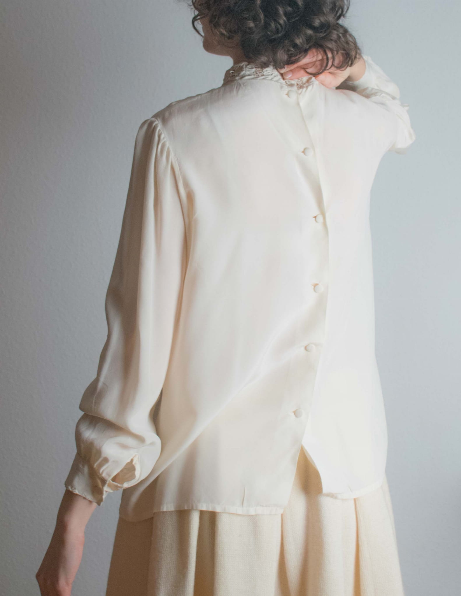 Koszula vintage ręczny haft 100% jedwab ecru XL