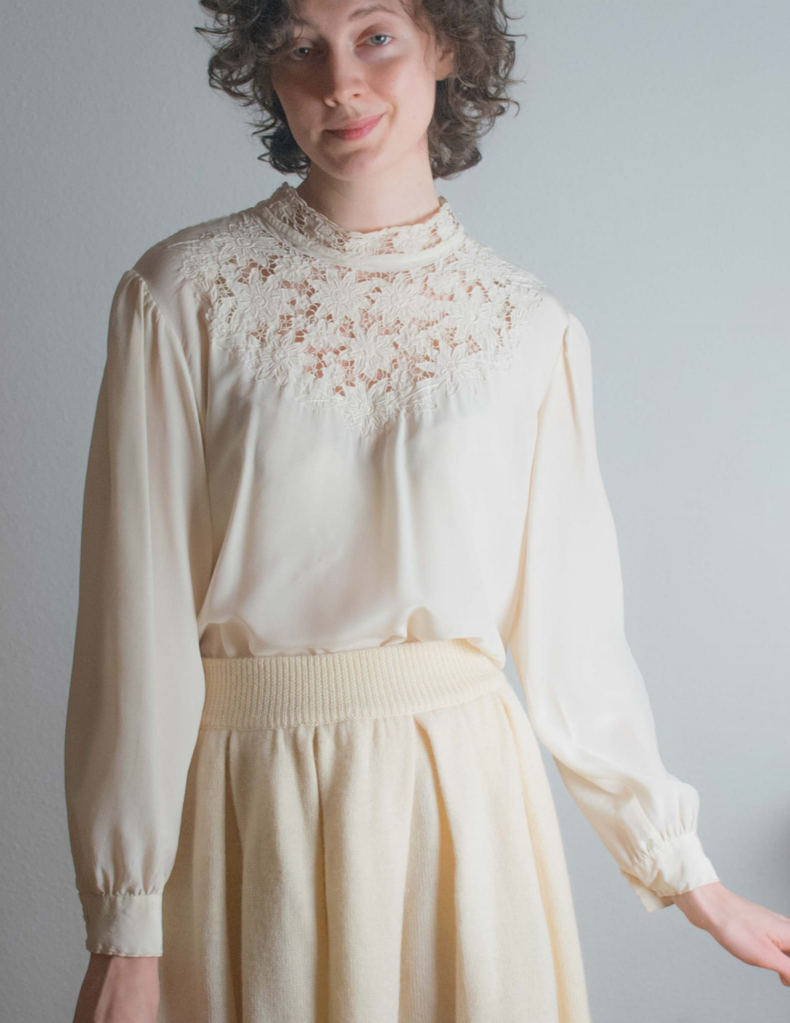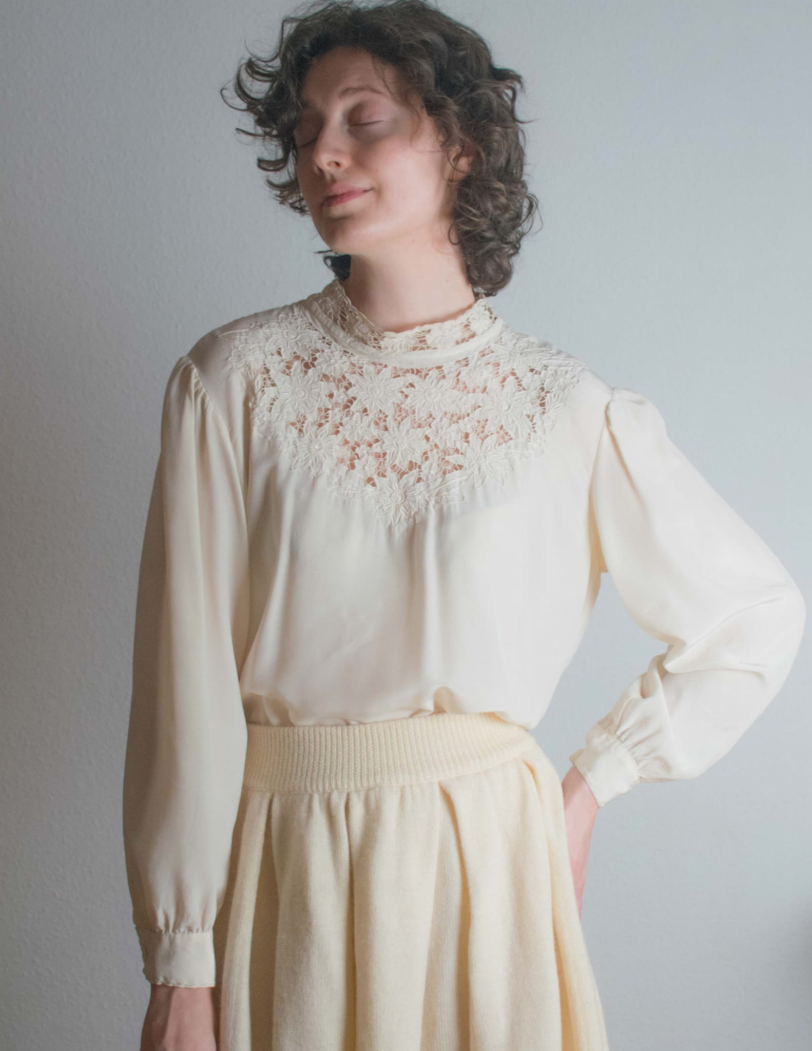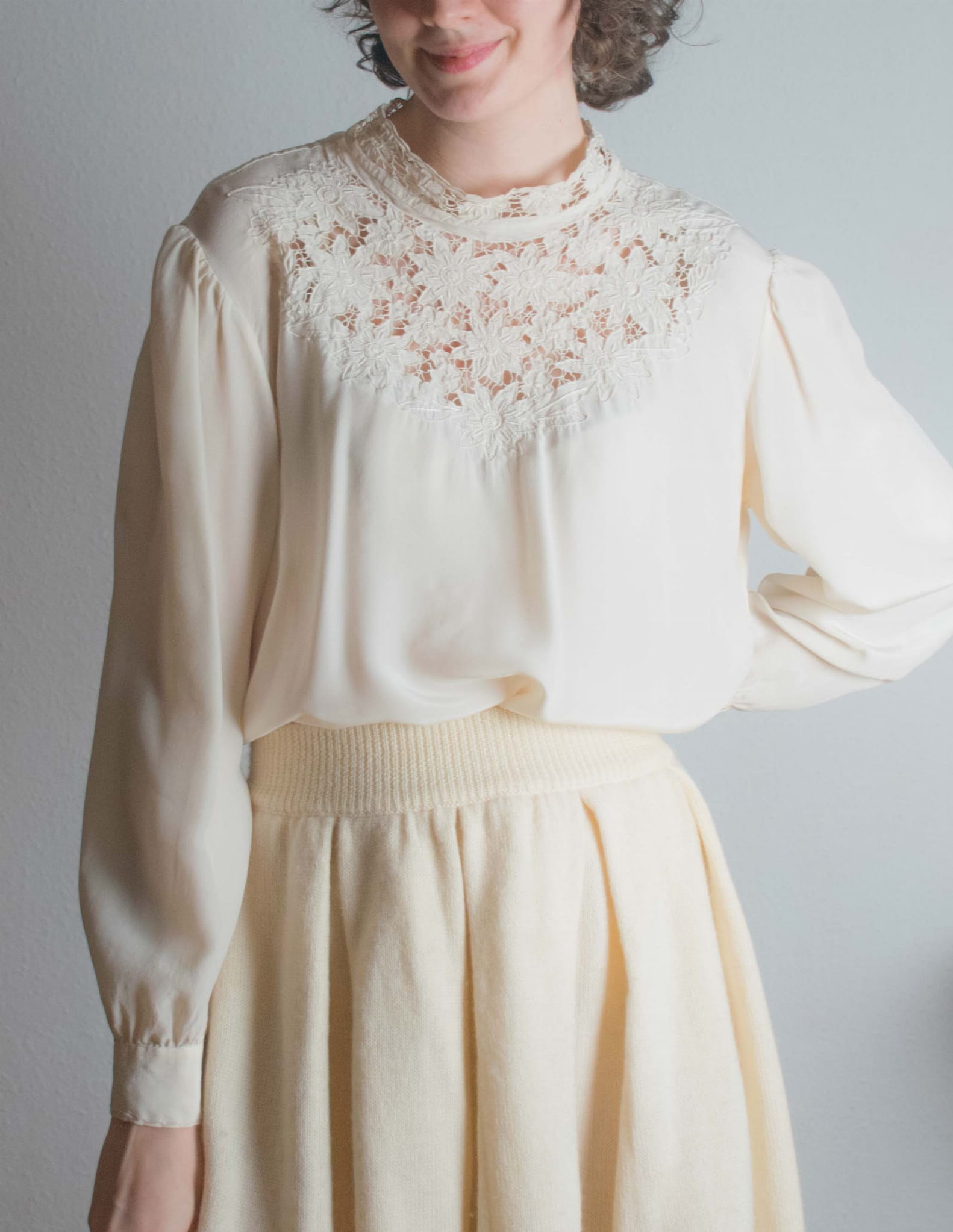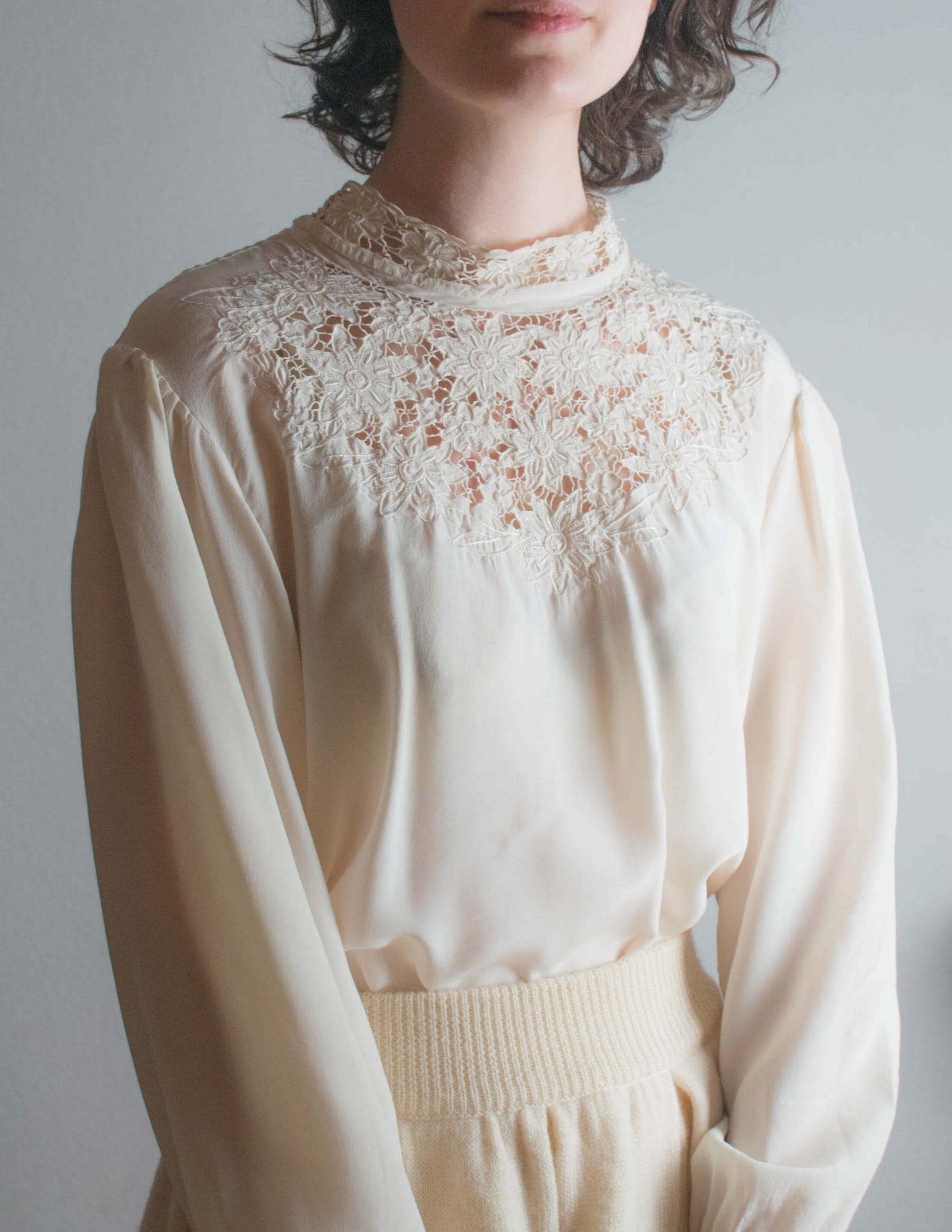 Koszula vintage ręczny haft 100% jedwab ecru XL