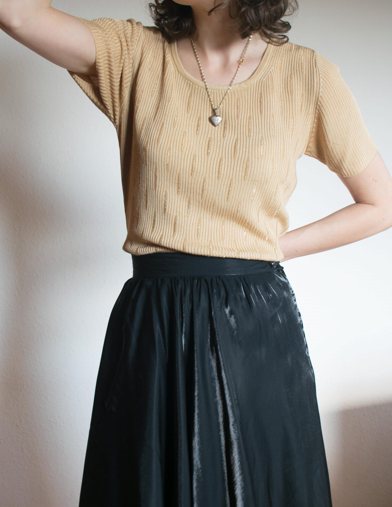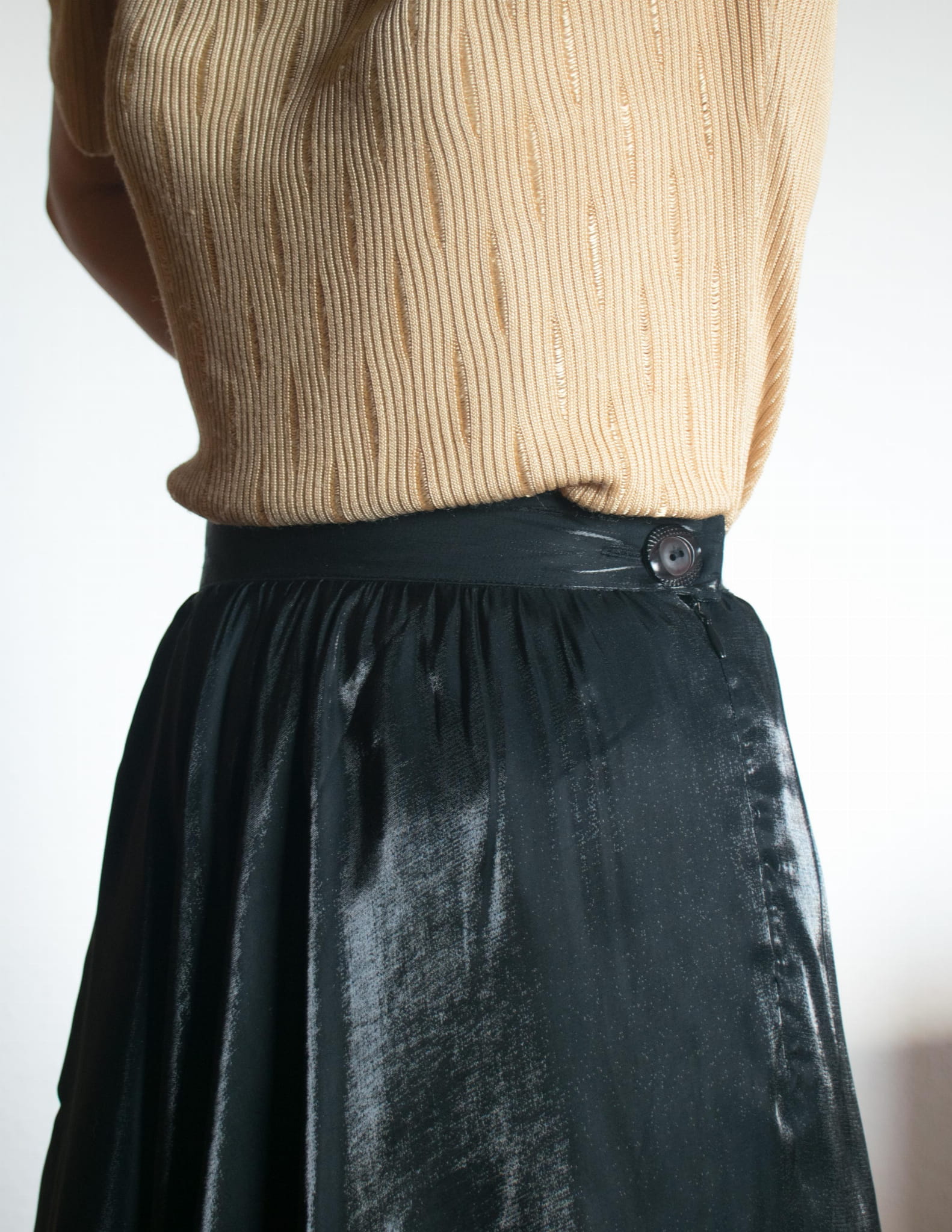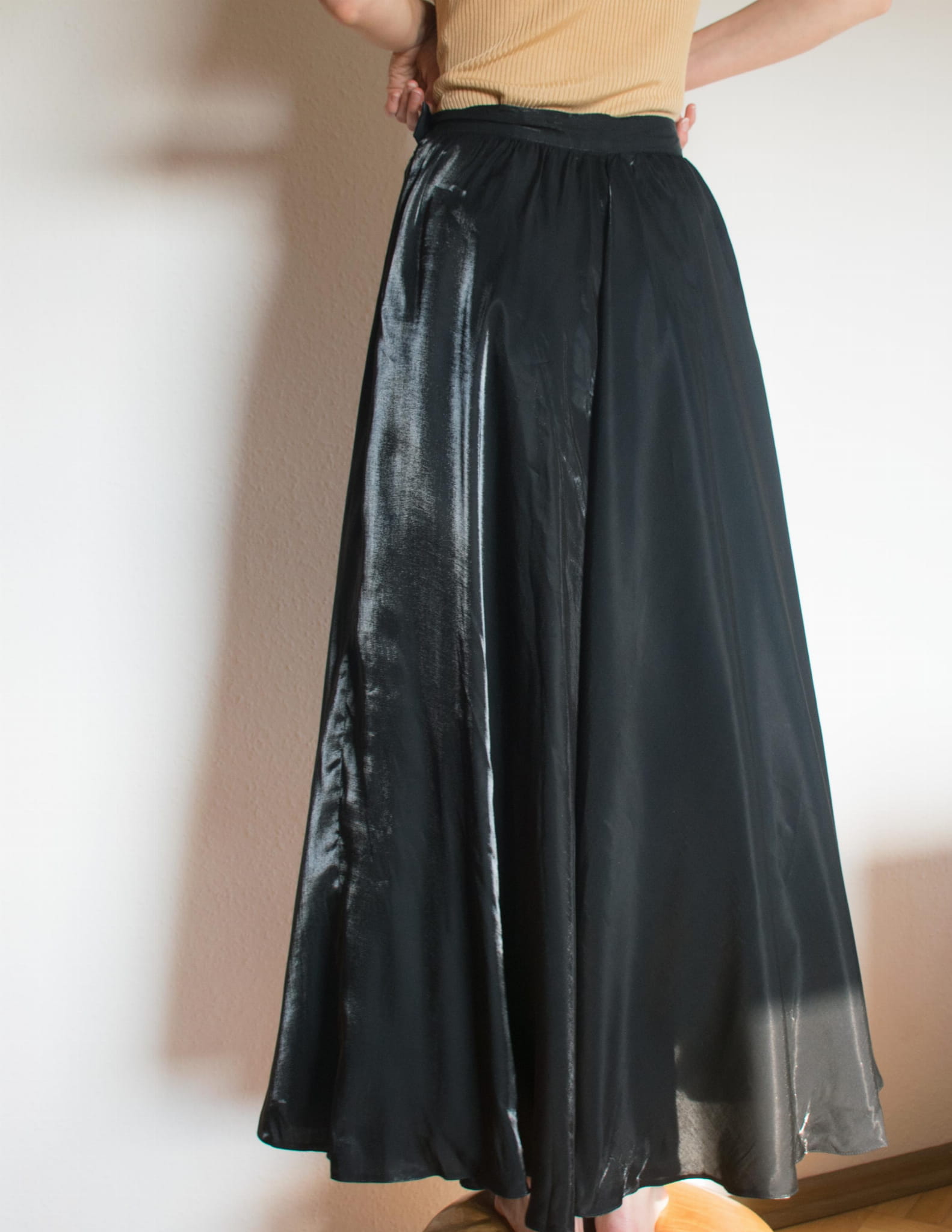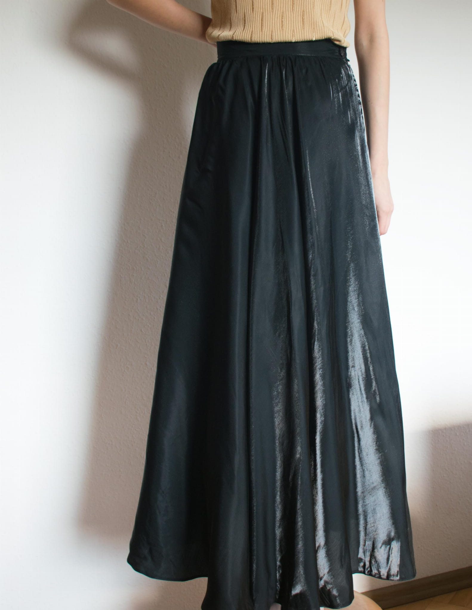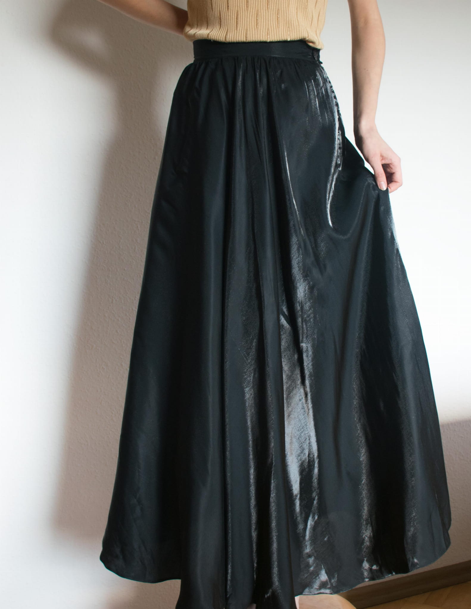 Spódnica szampańska maxi wiskoza acetat czerń S