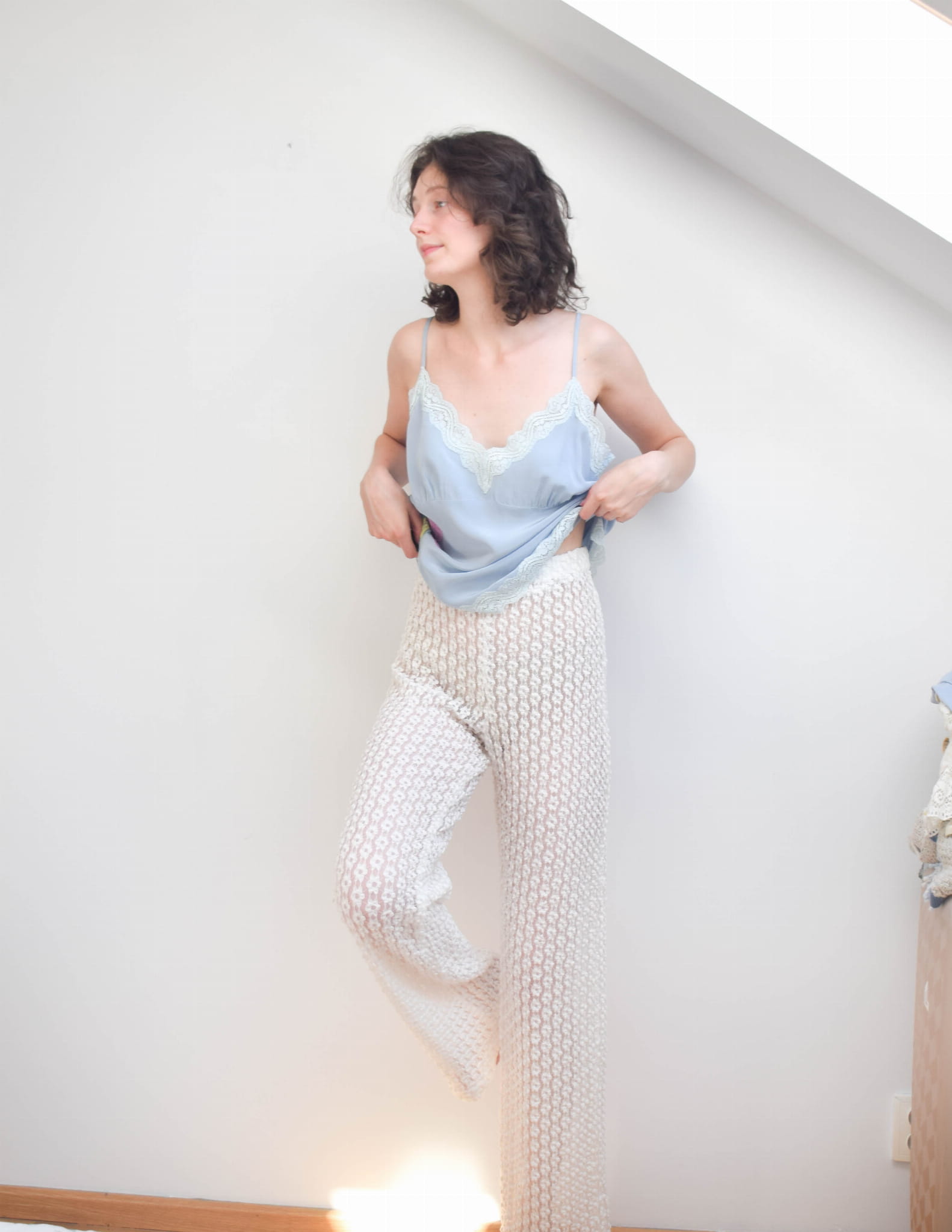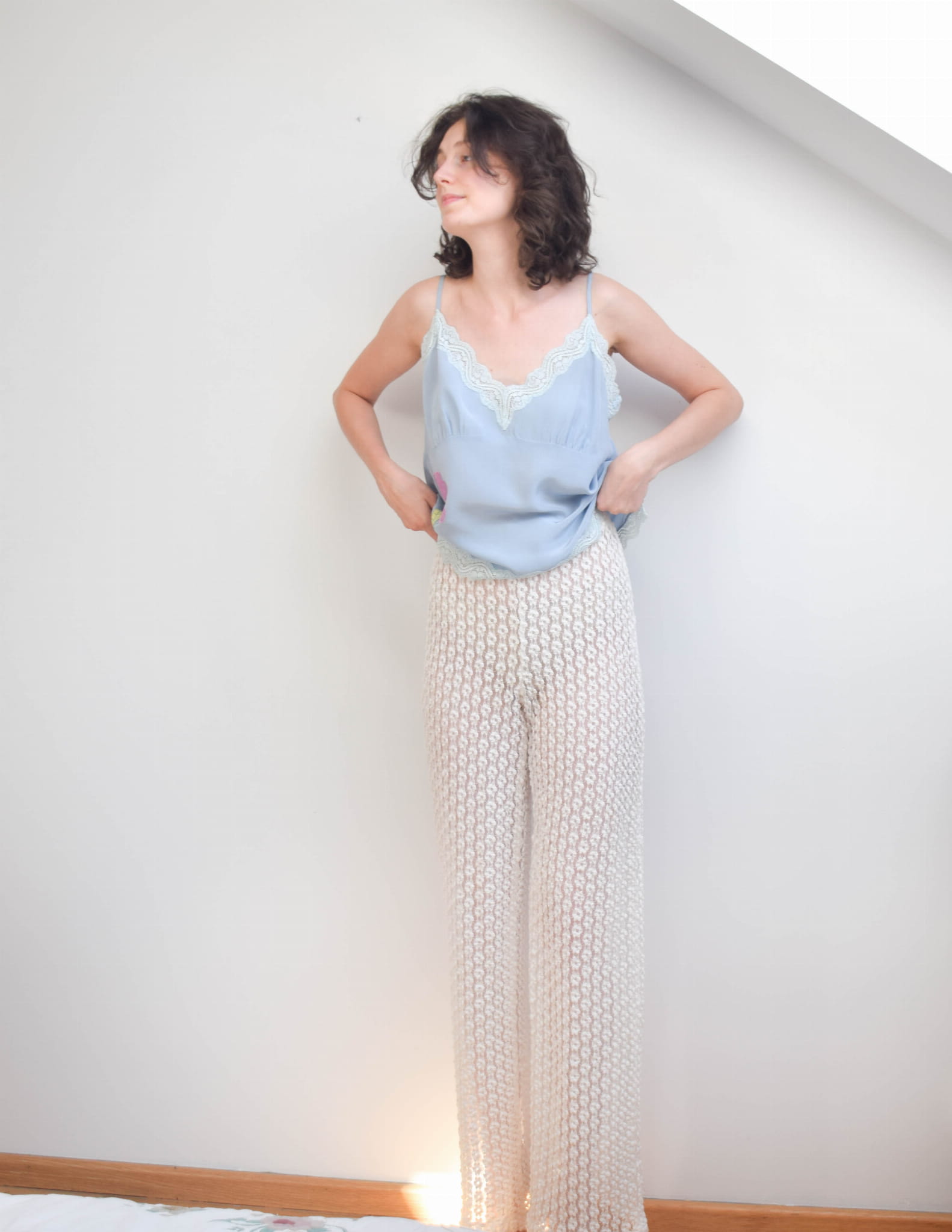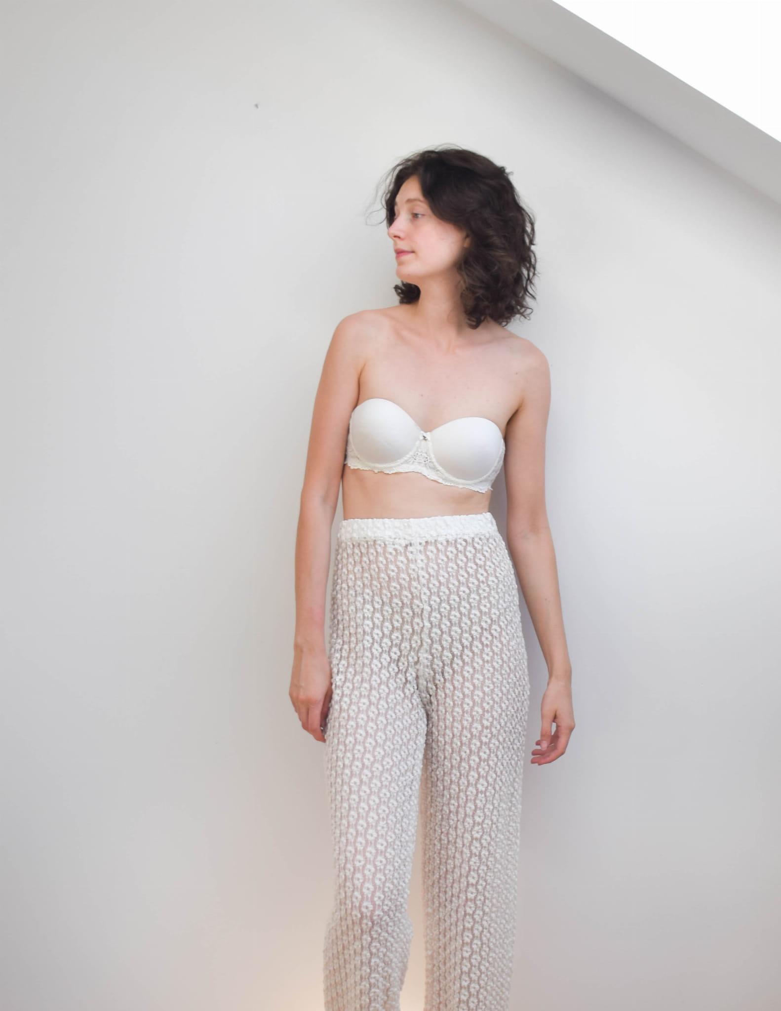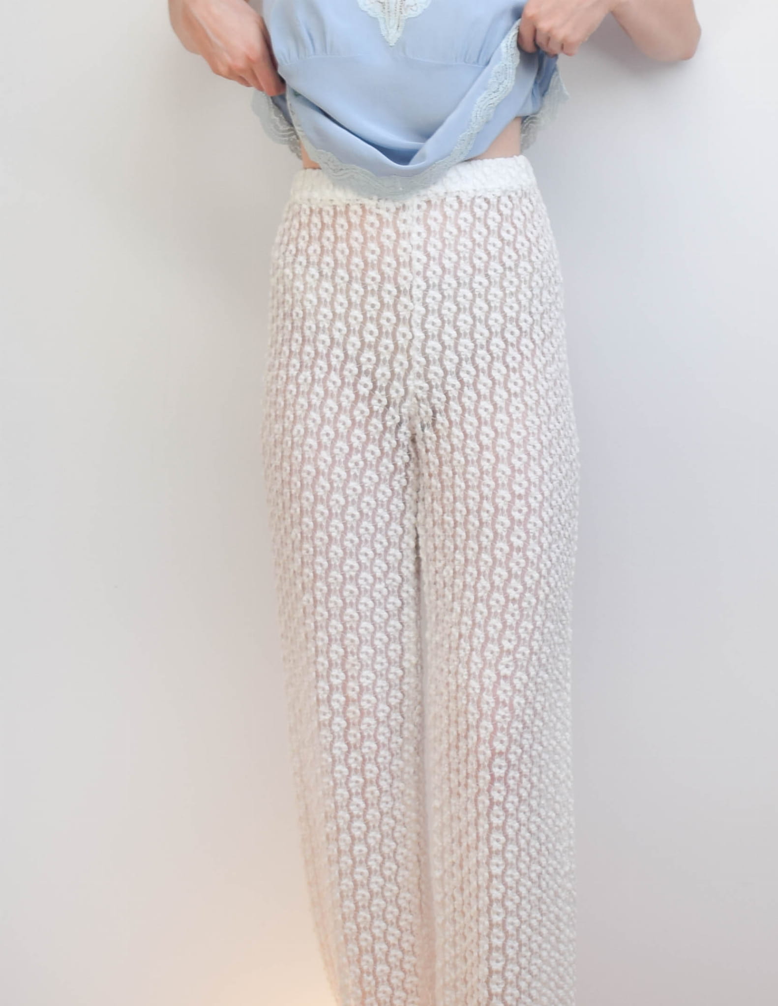 Spodnie elastyczne vintage koronkowe kwiatki S/M