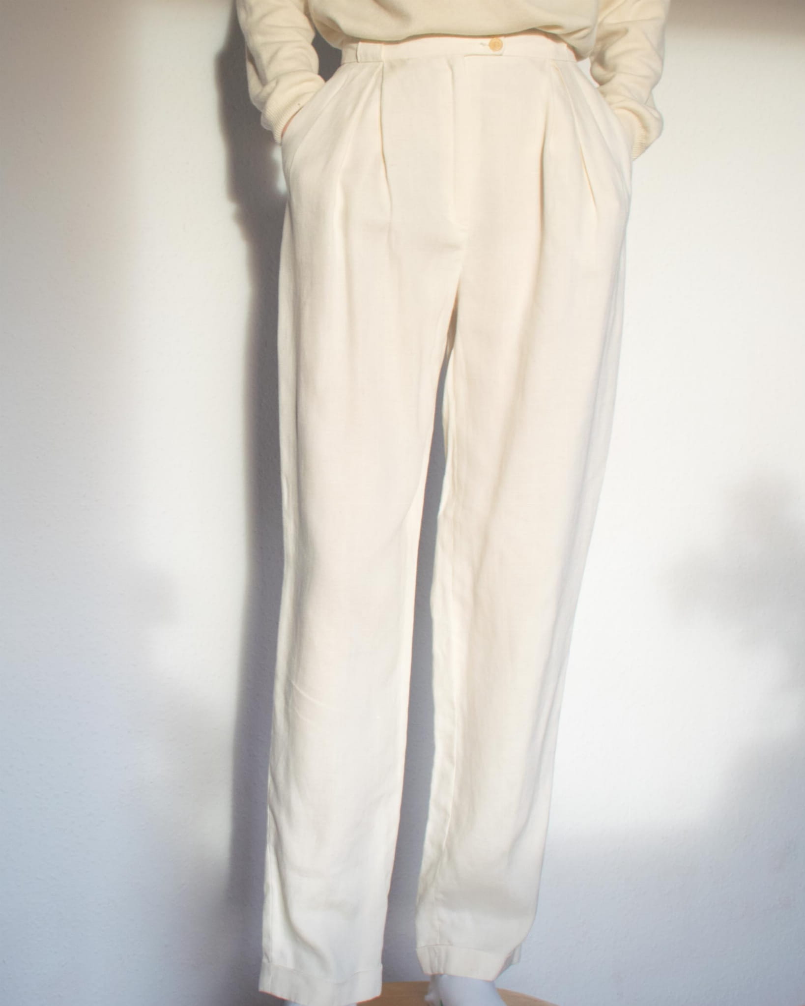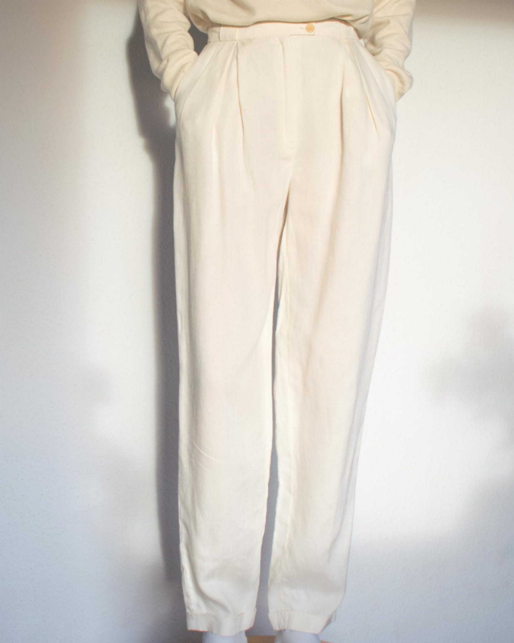 Spodnie klasyczne ecru 100% len S