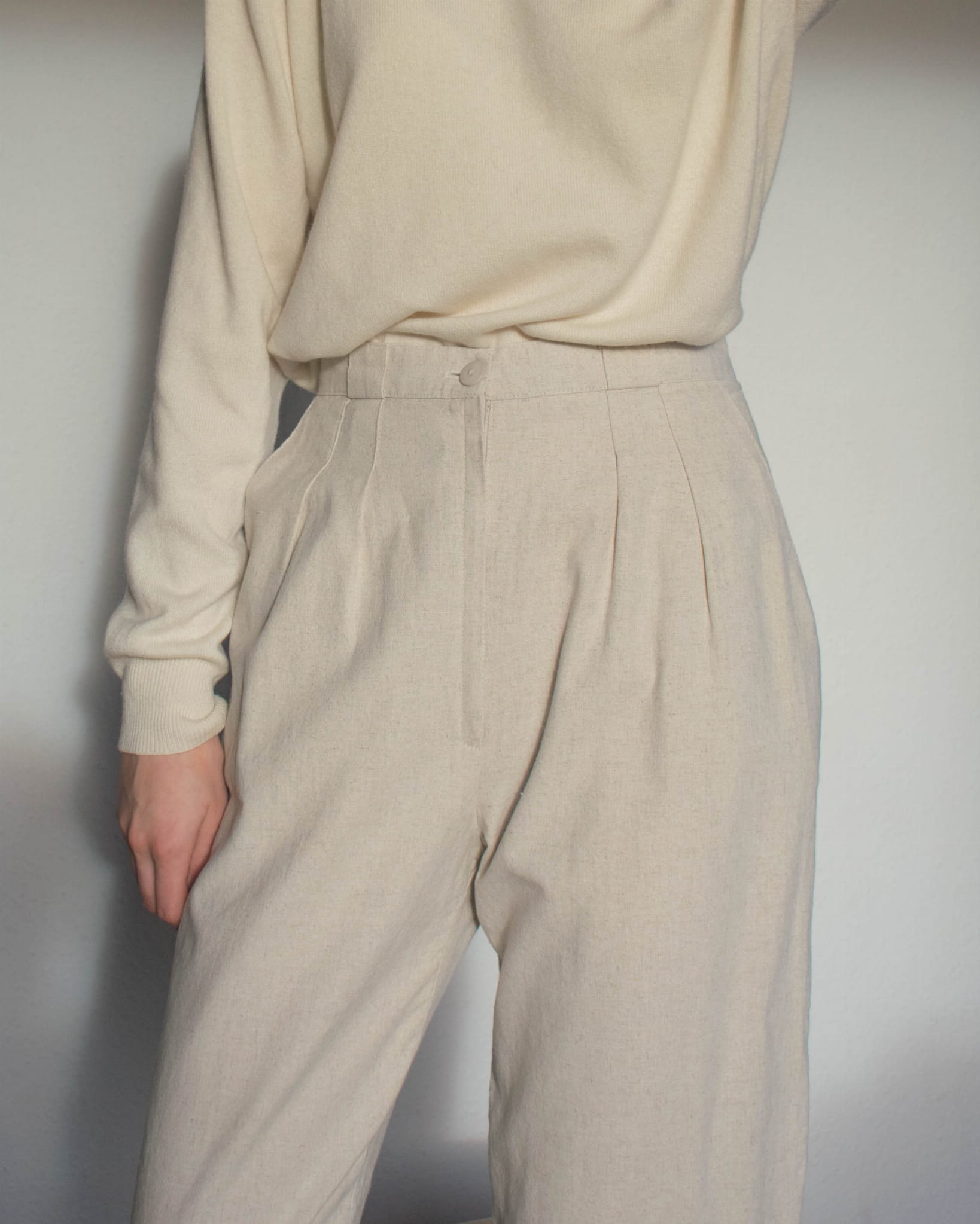 Spodnie vintage beżowe bawełna i len S