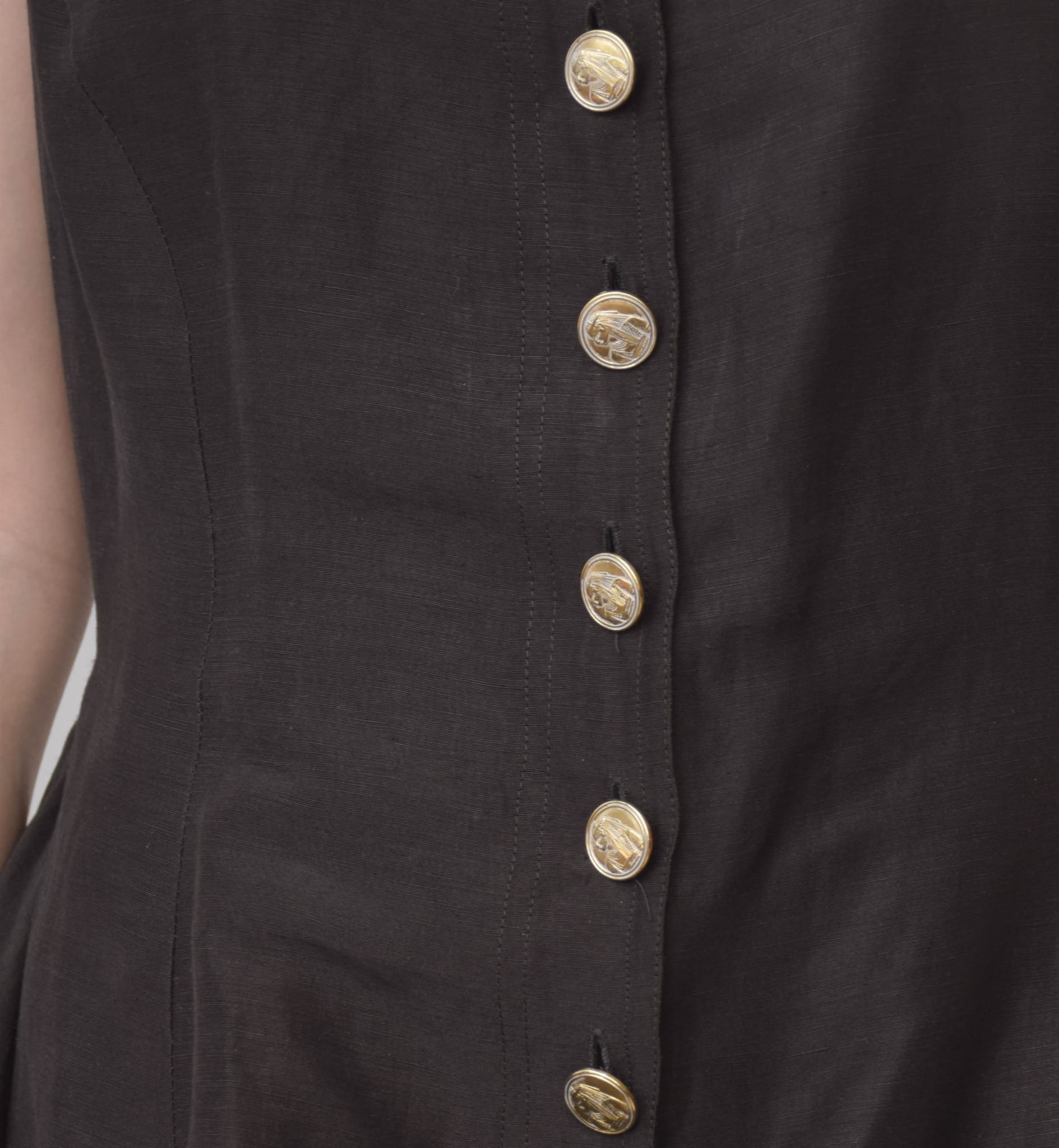 - zapinana na złote metalowe guziki z podobizną starożytnej postaci