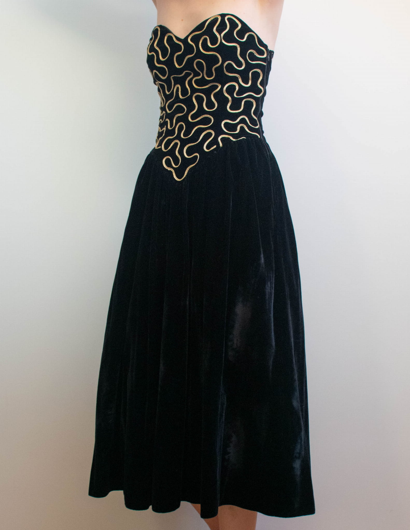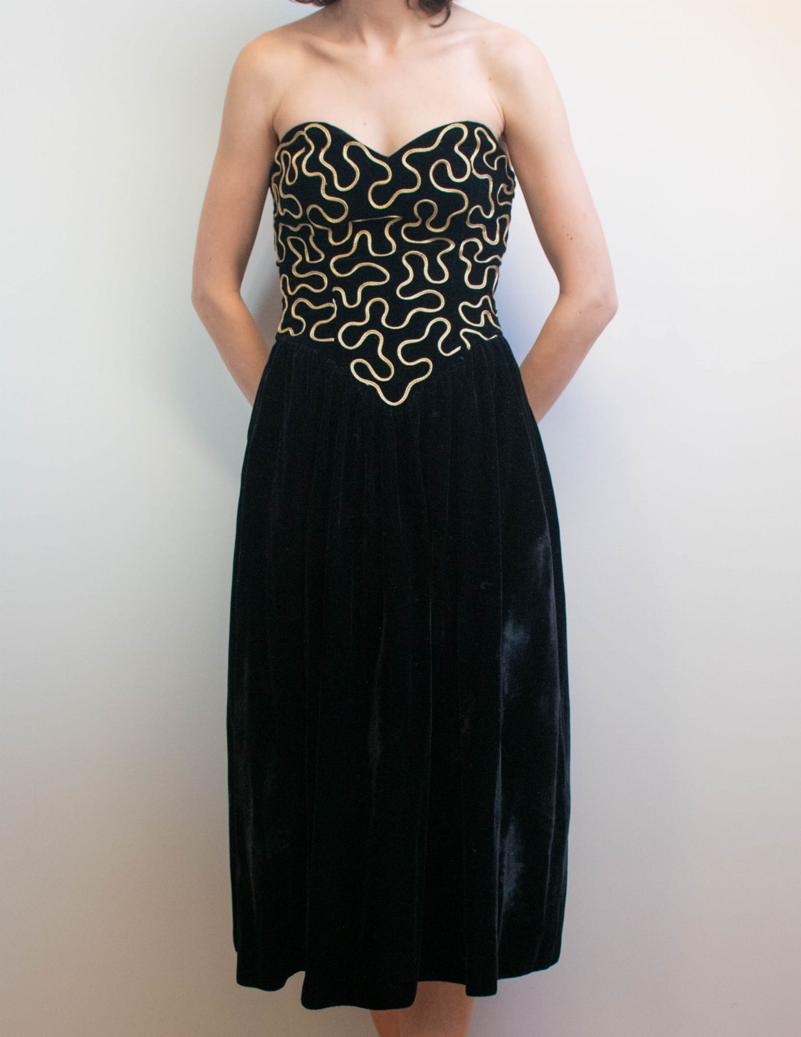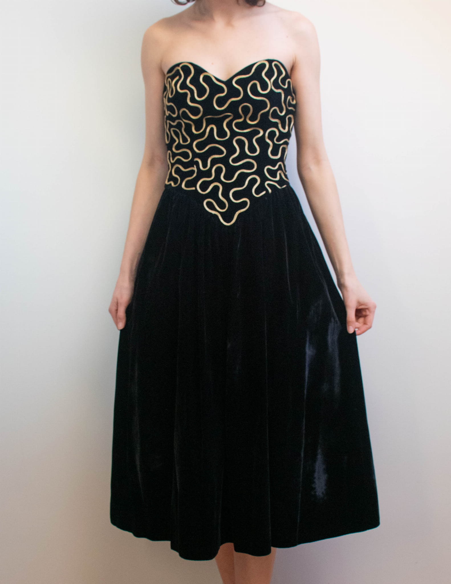 Sukienka Principles aksamitny welur czarna złote zdobienie S