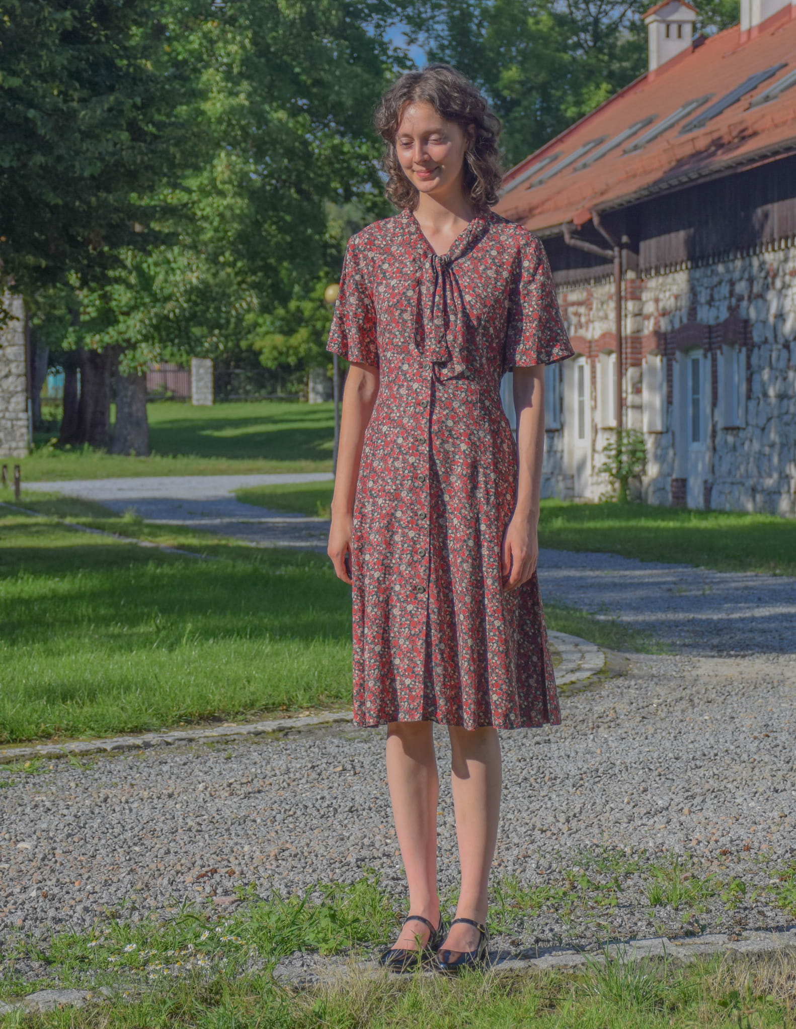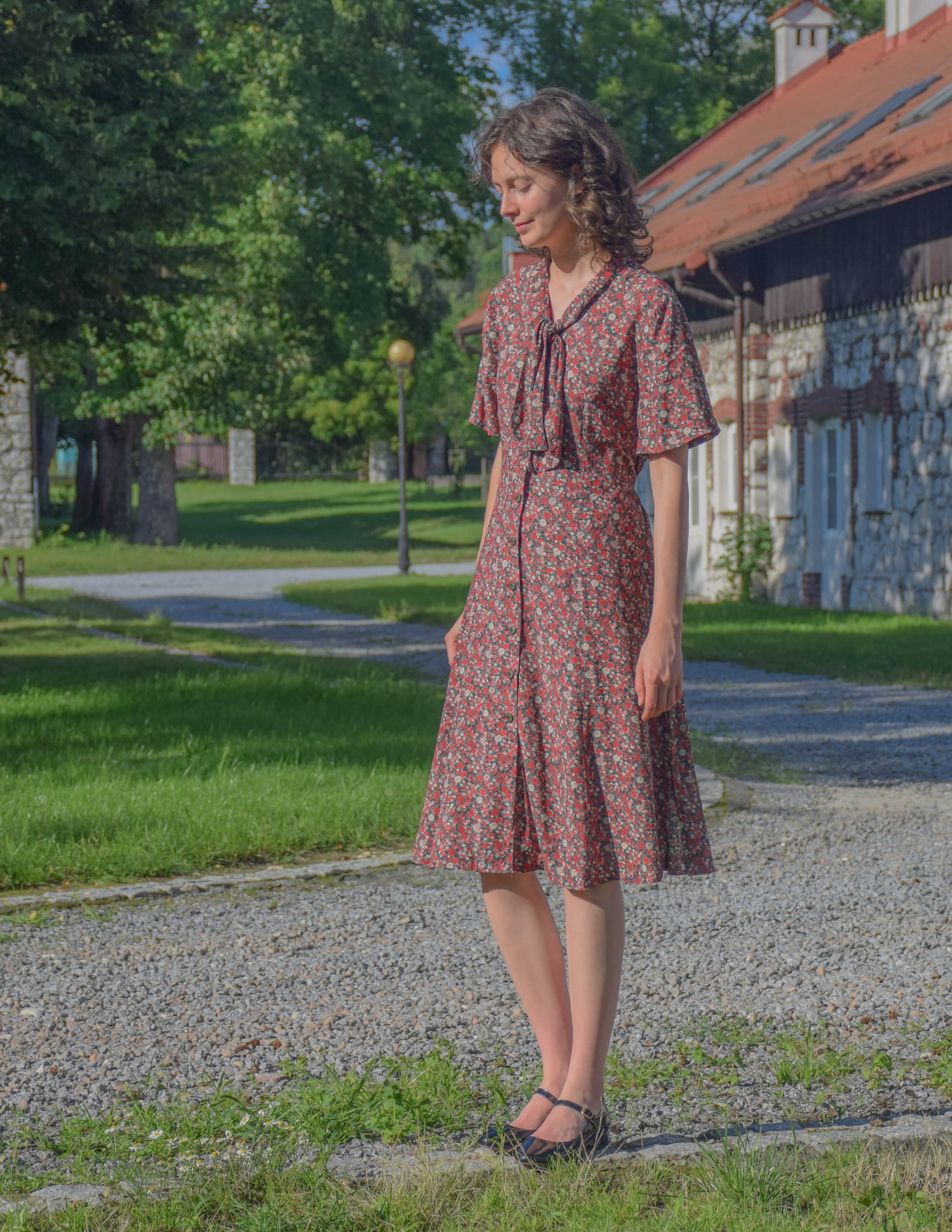 Sukienka kwiecista z szarfą 100% wiskoza M