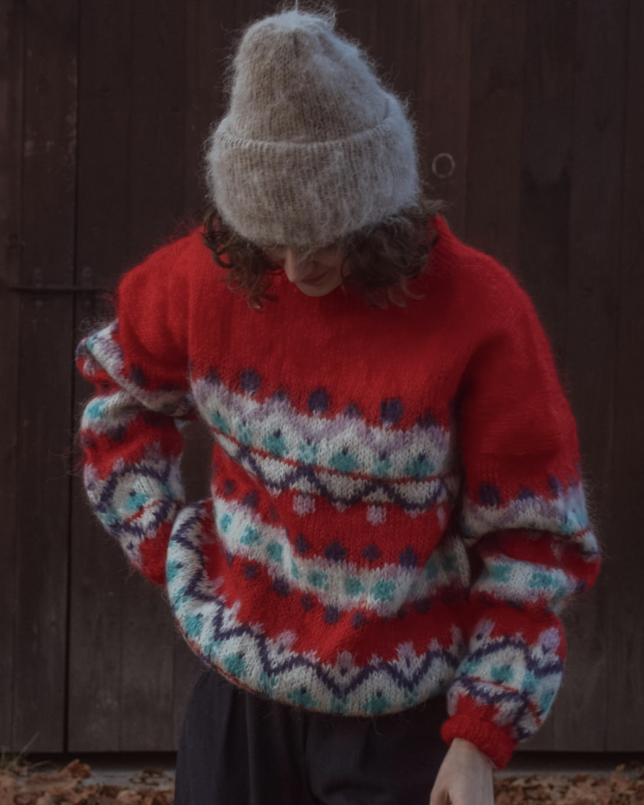 Skład 100% moher starego typu co oznacza, że ma dłuższy i grubszy włos dzięki czemu nie mechaci się jak mohery nowego typu