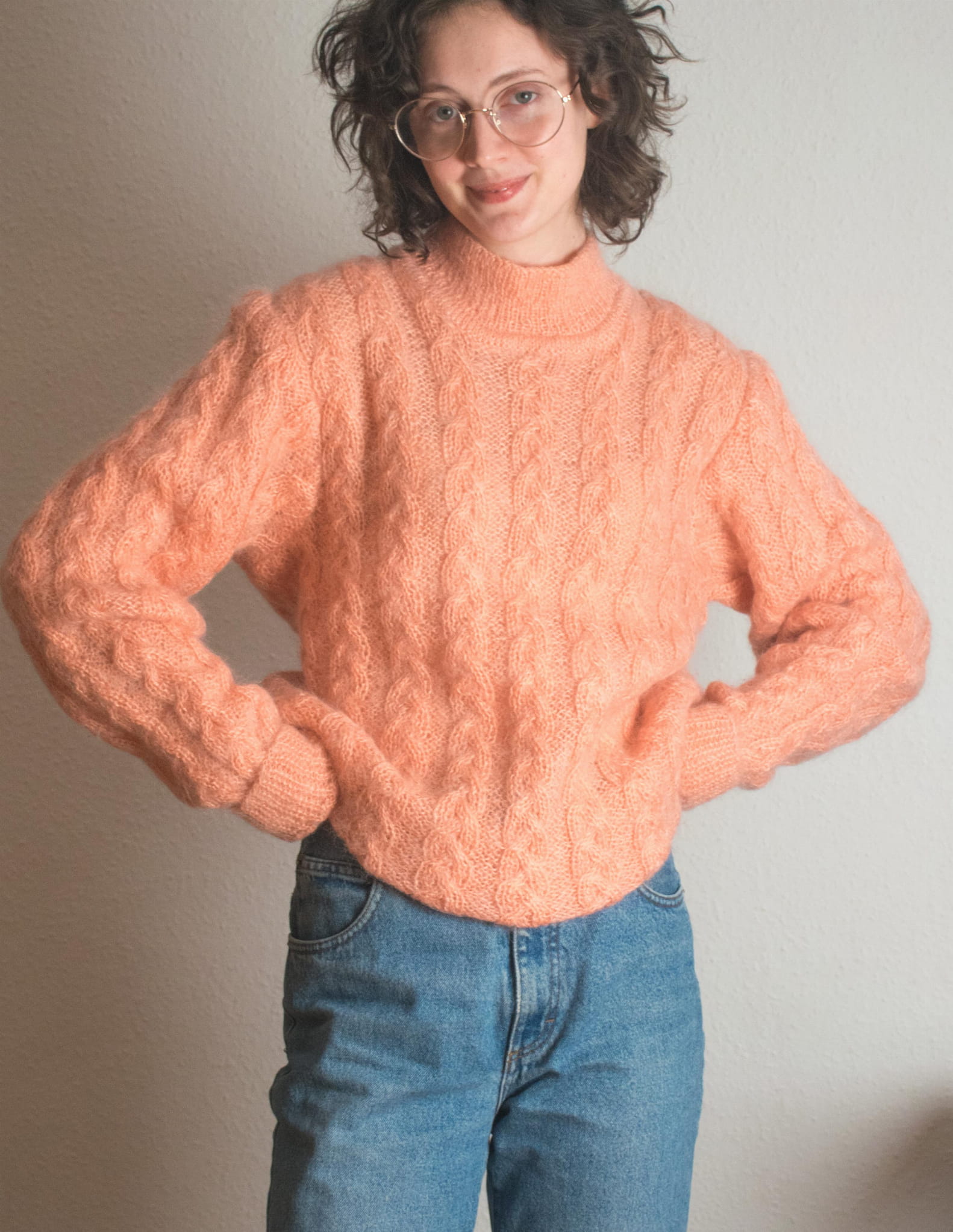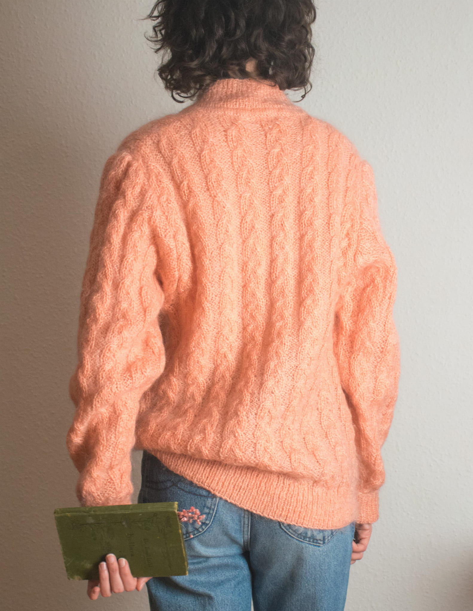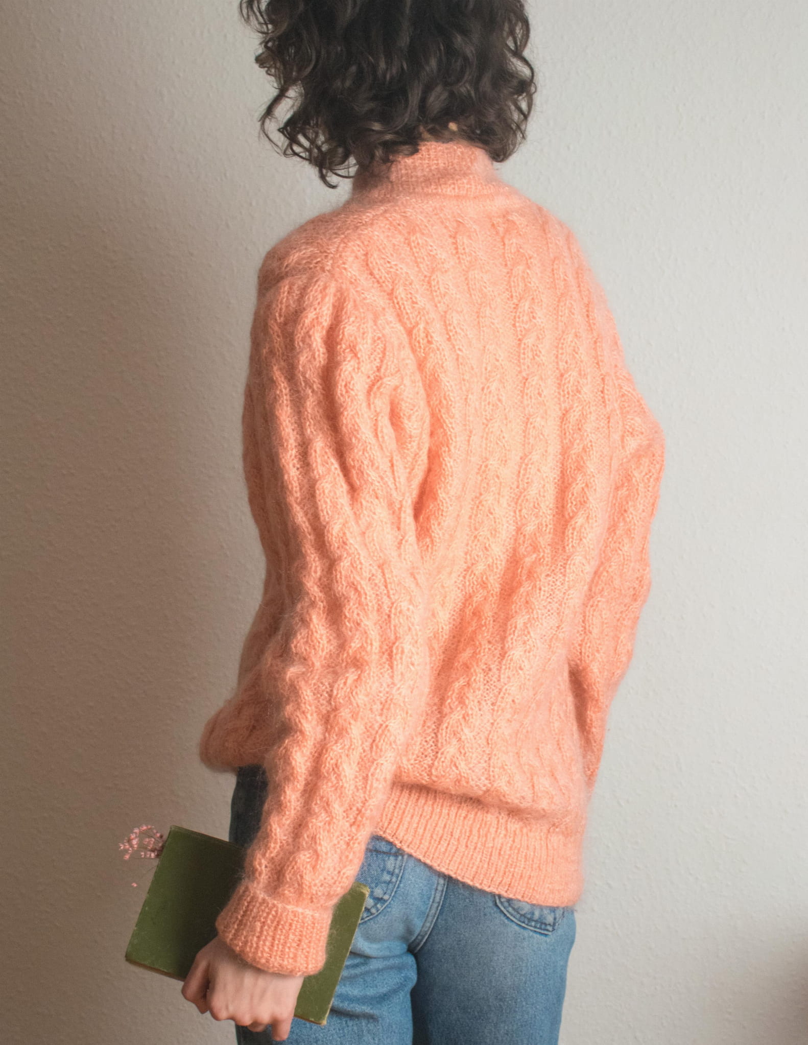 Sweter vintage 100% moher warkocze pastelowa brzoskwinia L