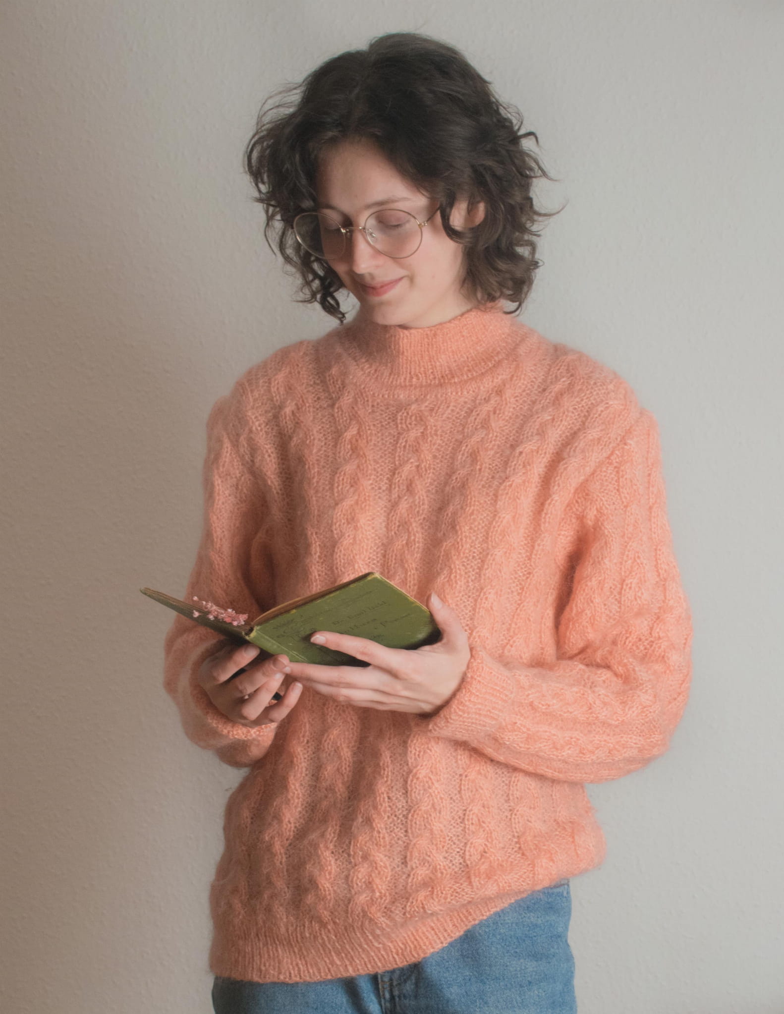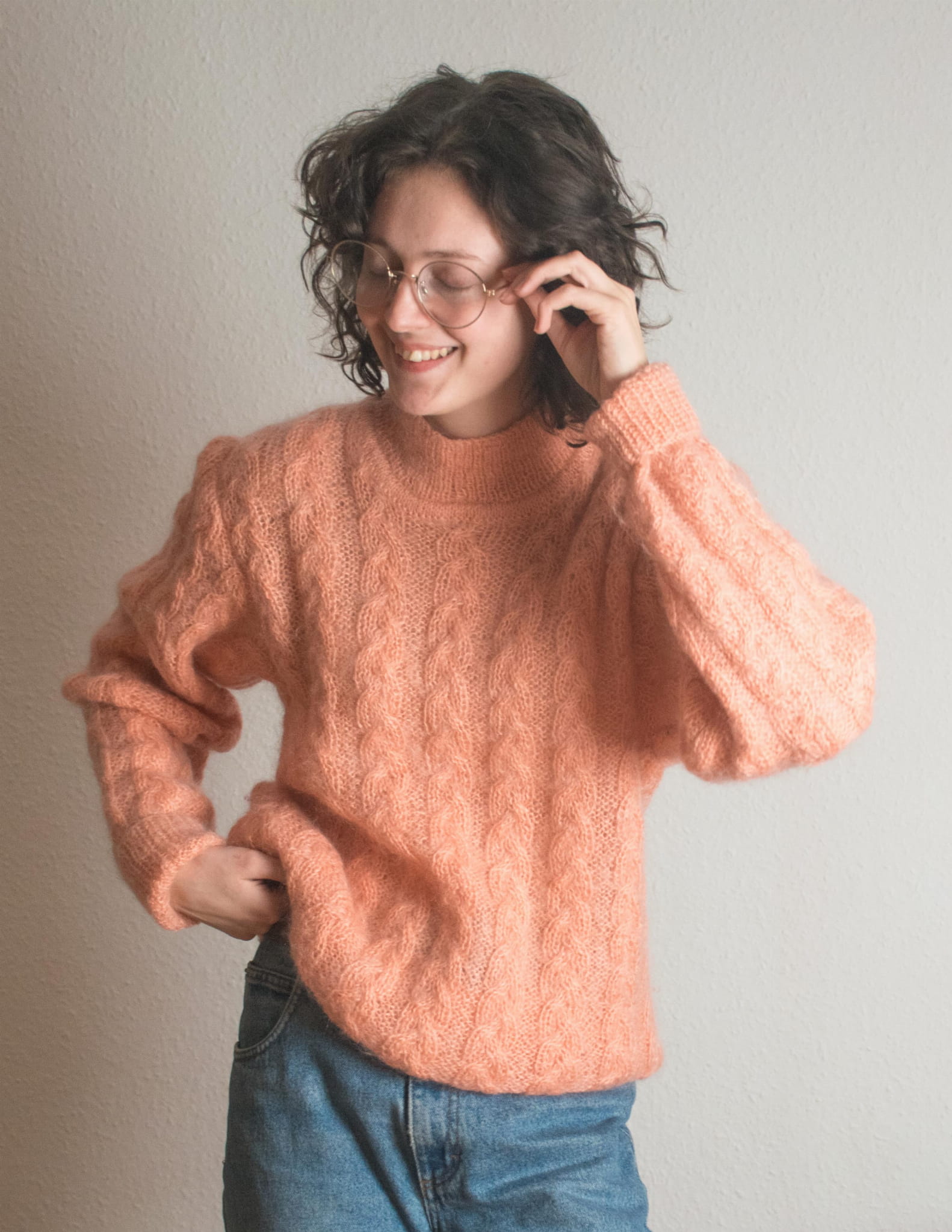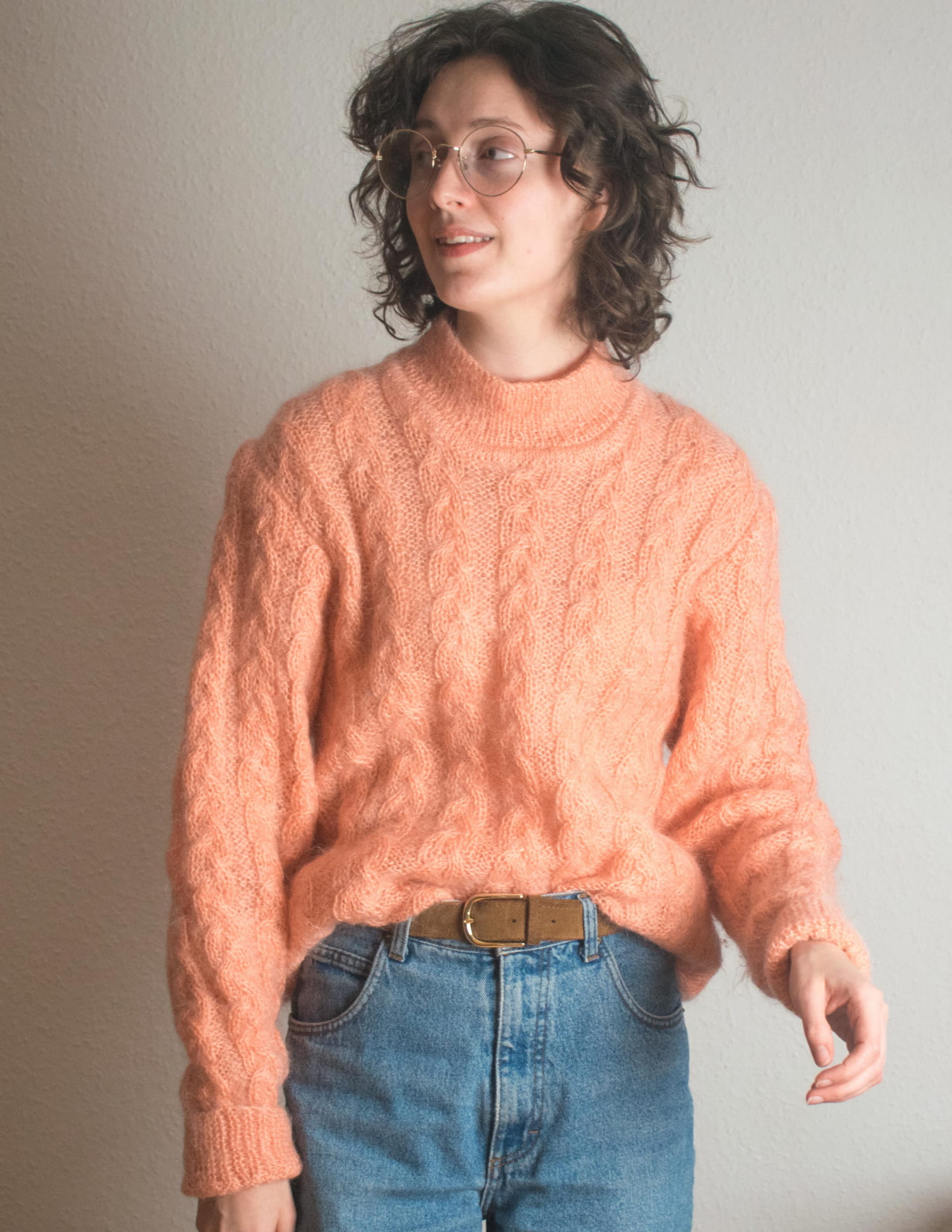 Sweter vintage 100% moher warkocze pastelowa brzoskwinia L