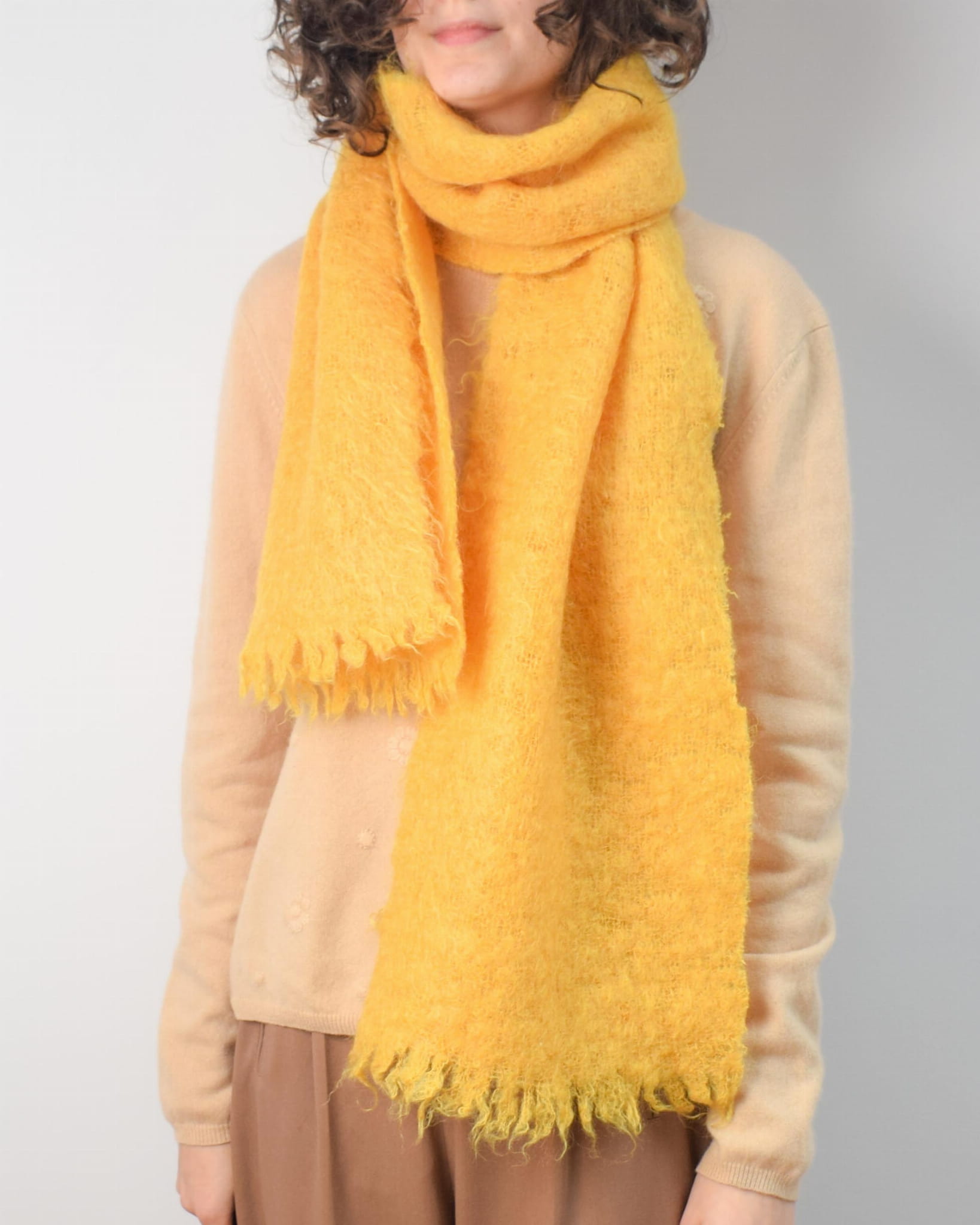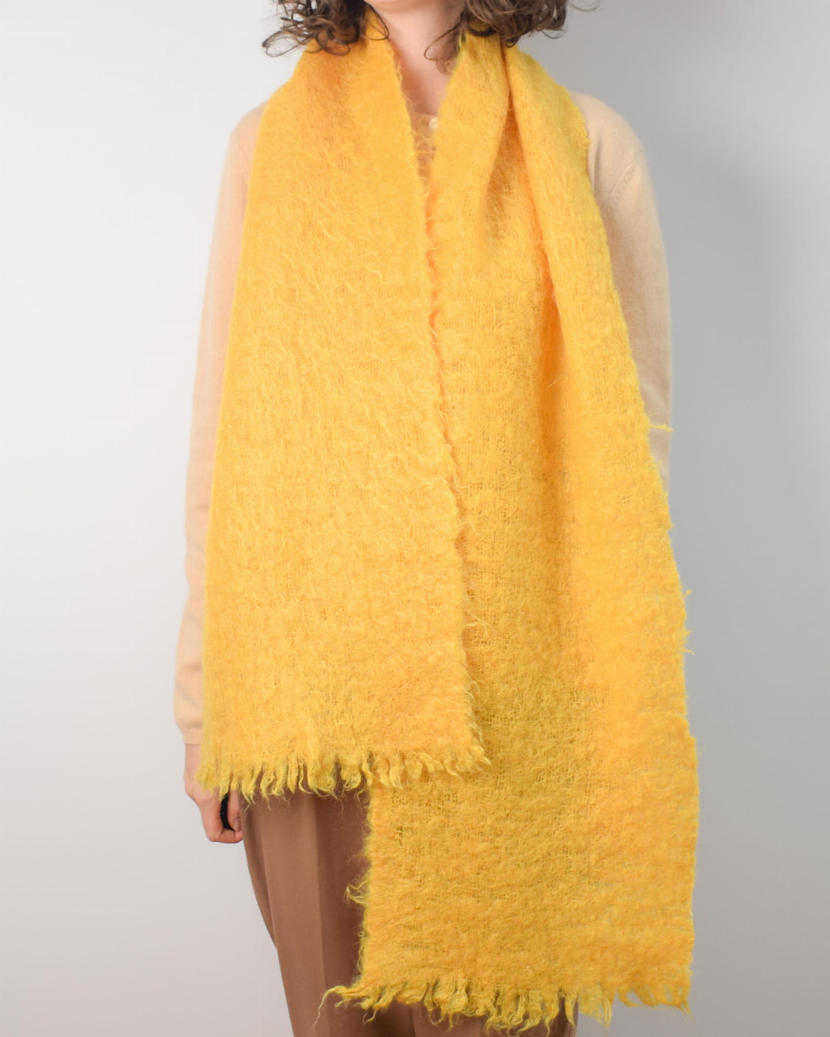 Szalik vintage 100% moher kanarkowy