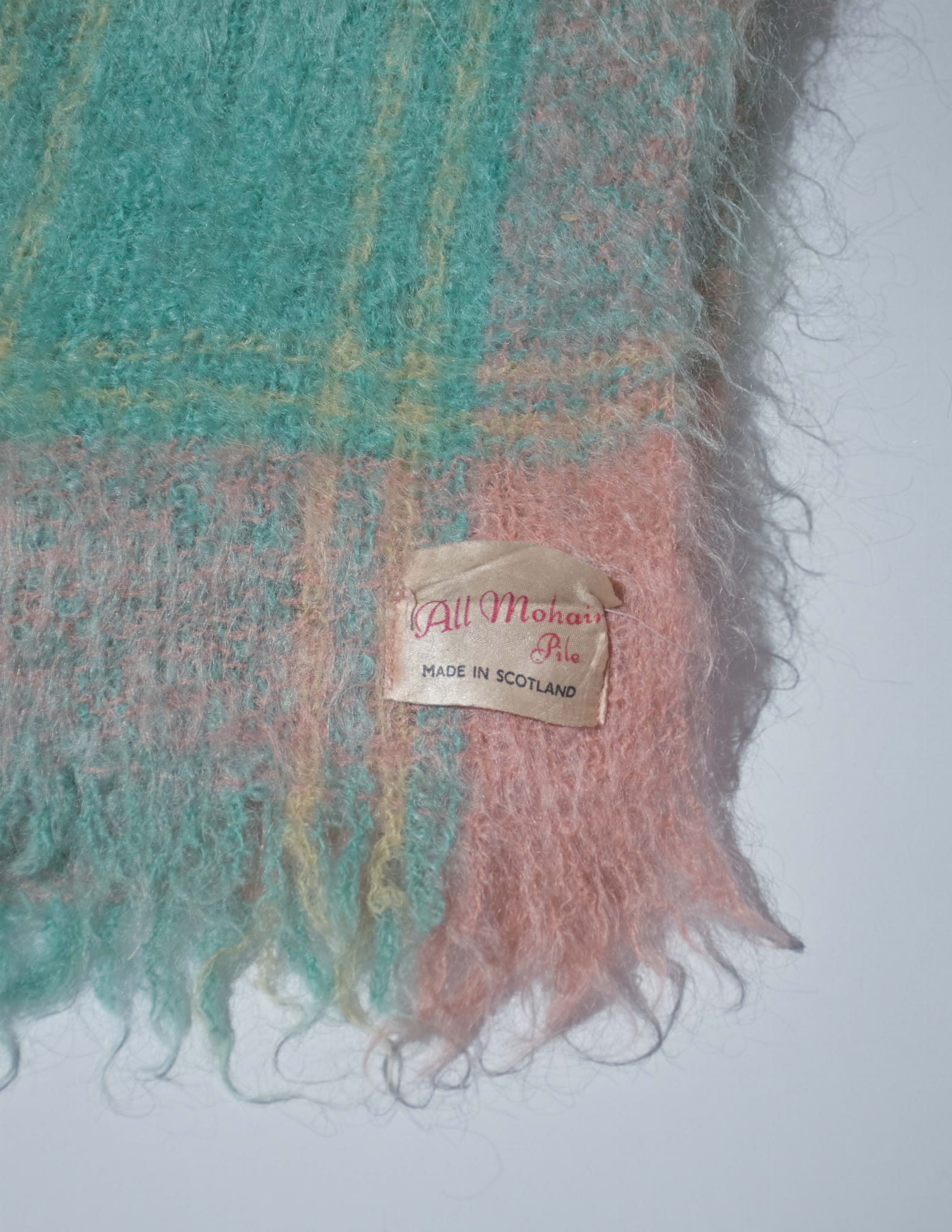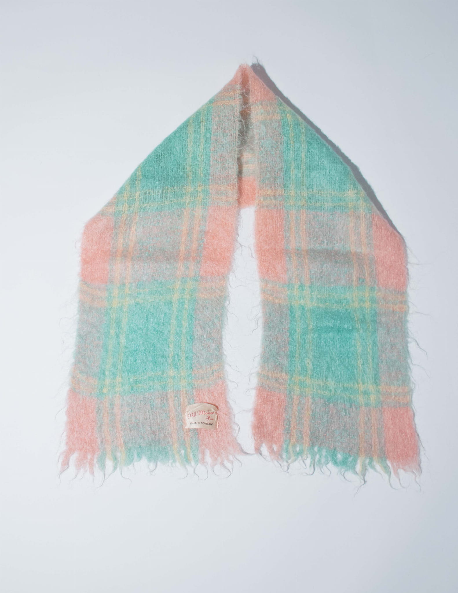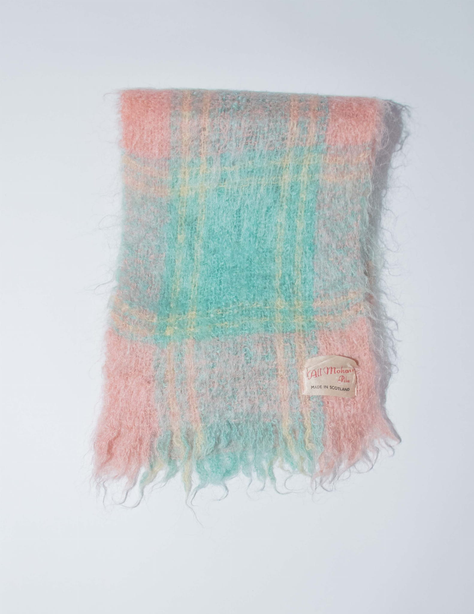 Szalik vintage 100% moher karata pudrowy róż mięta