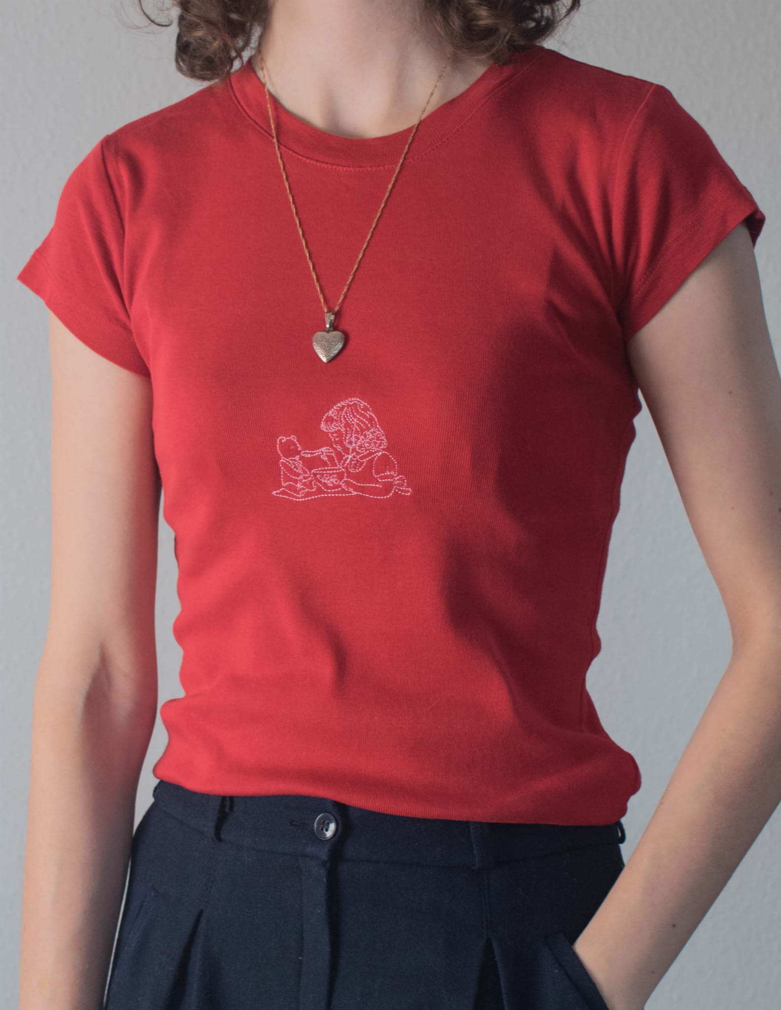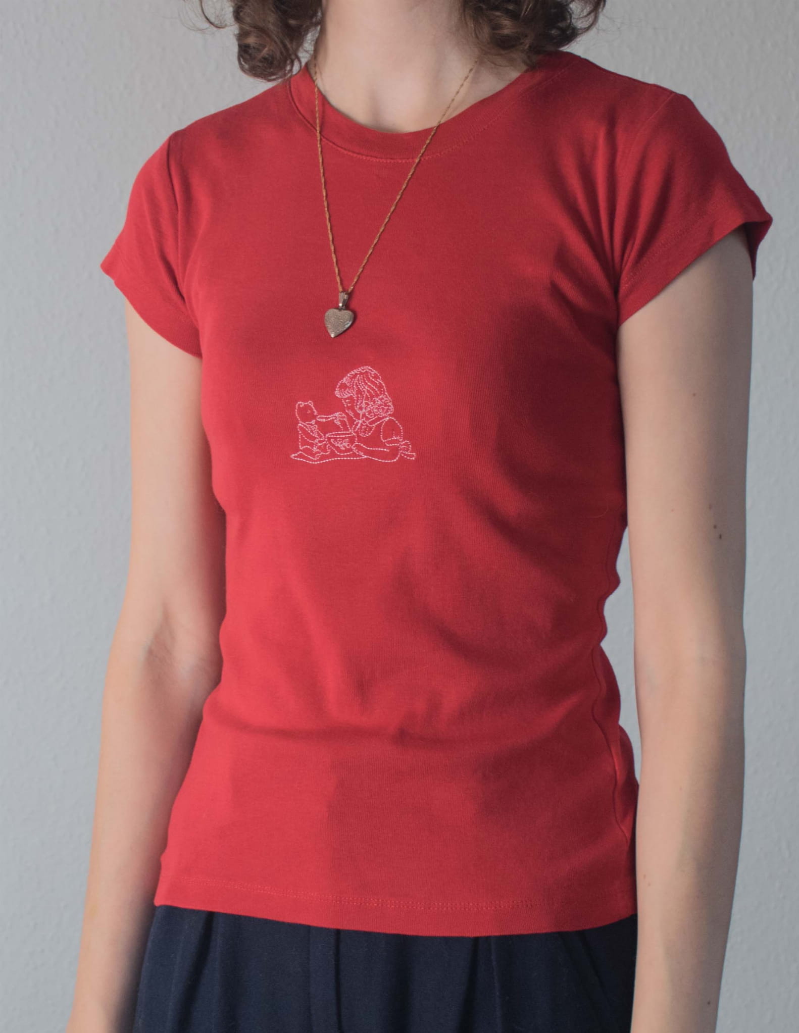 T-shirt 100% bawełna haft miś i dziewczynka XS/S