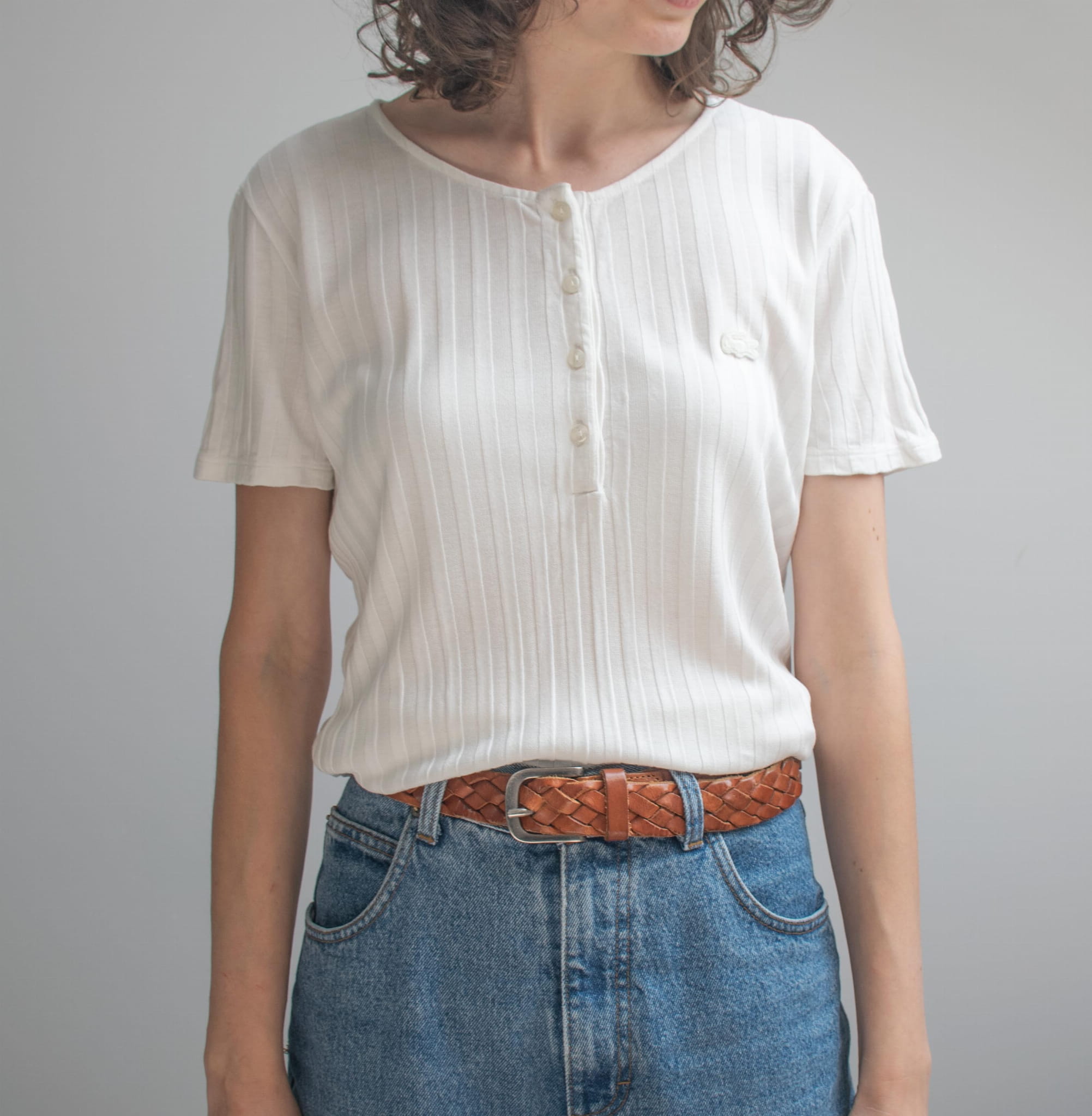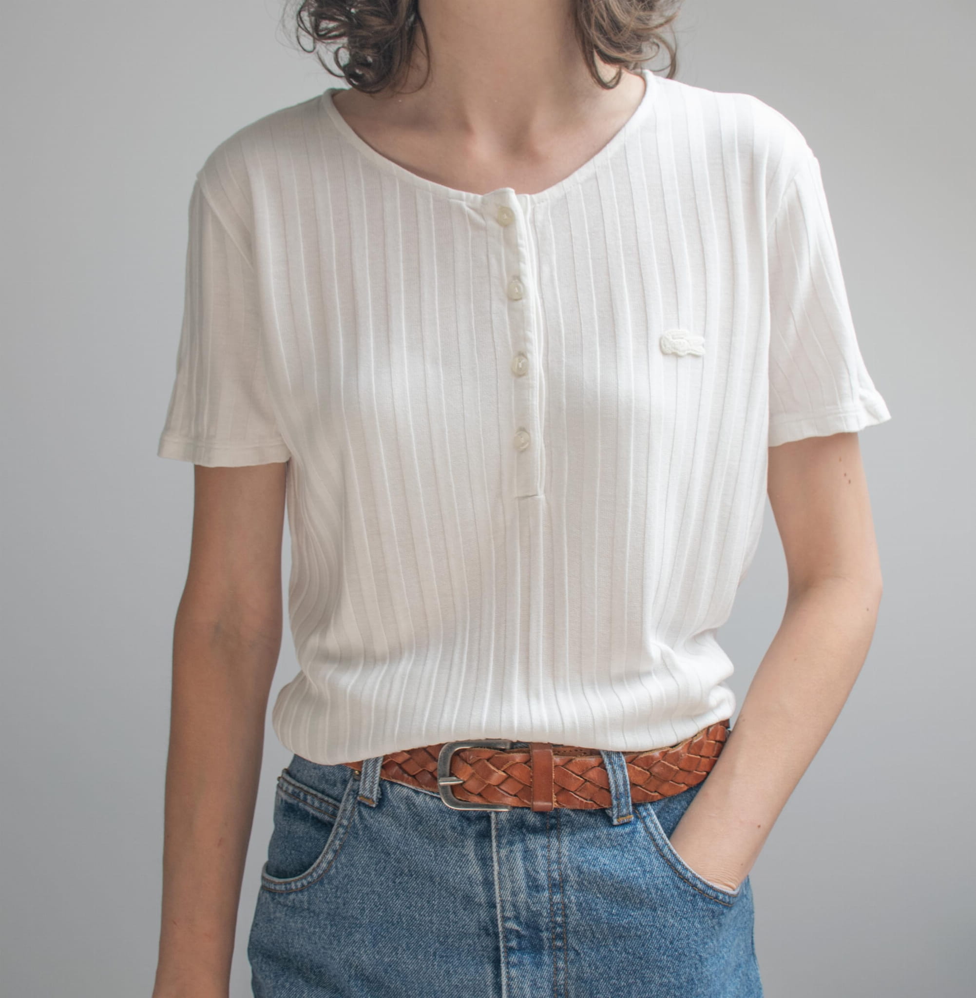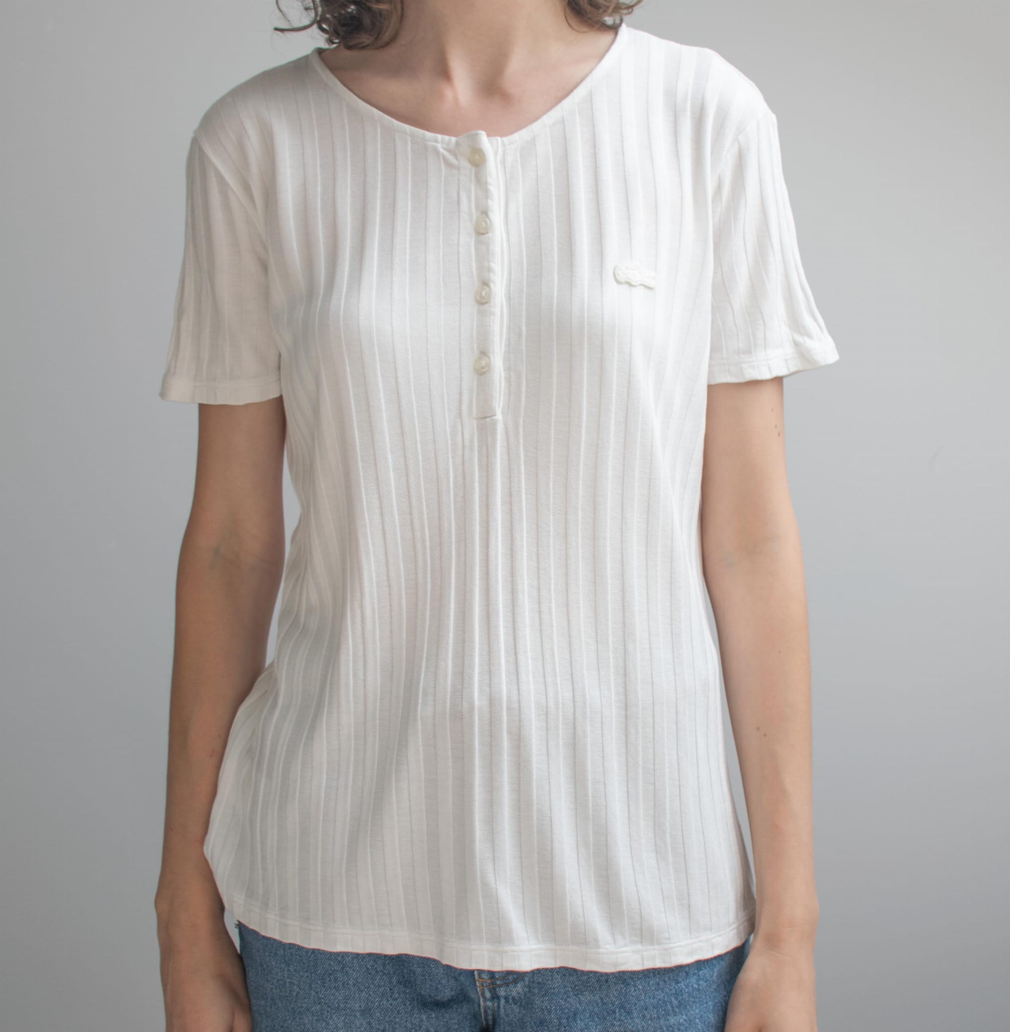 T-shirt Lacoste biały w prążek 100% rayon M/L