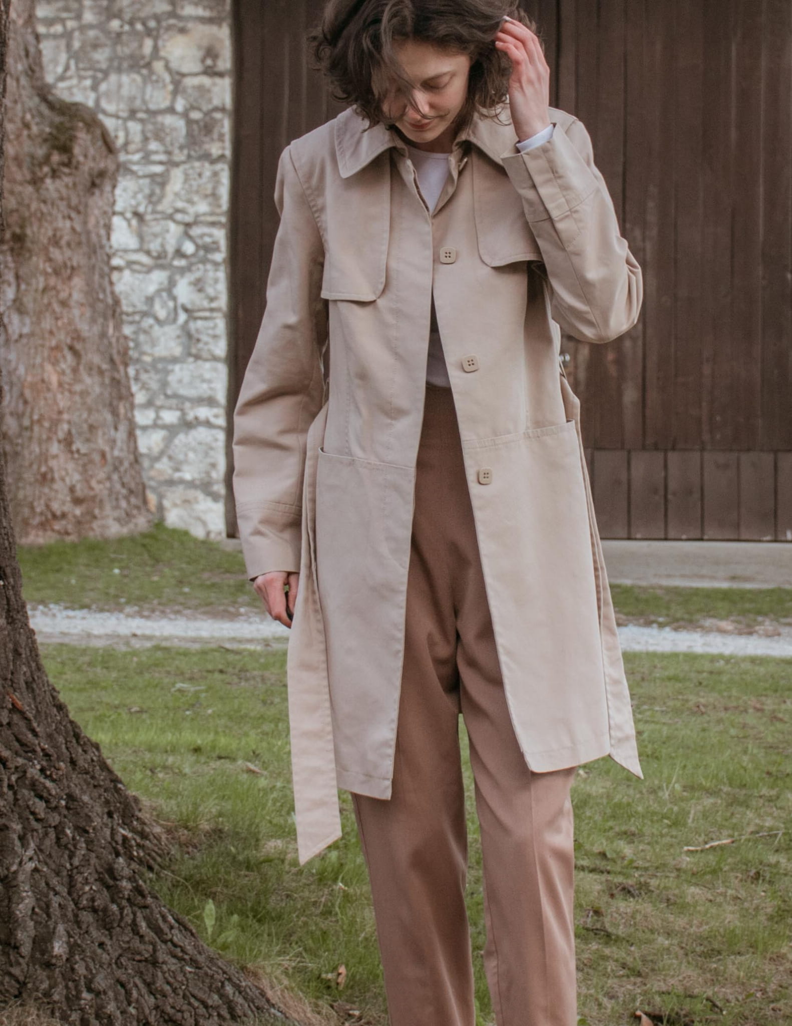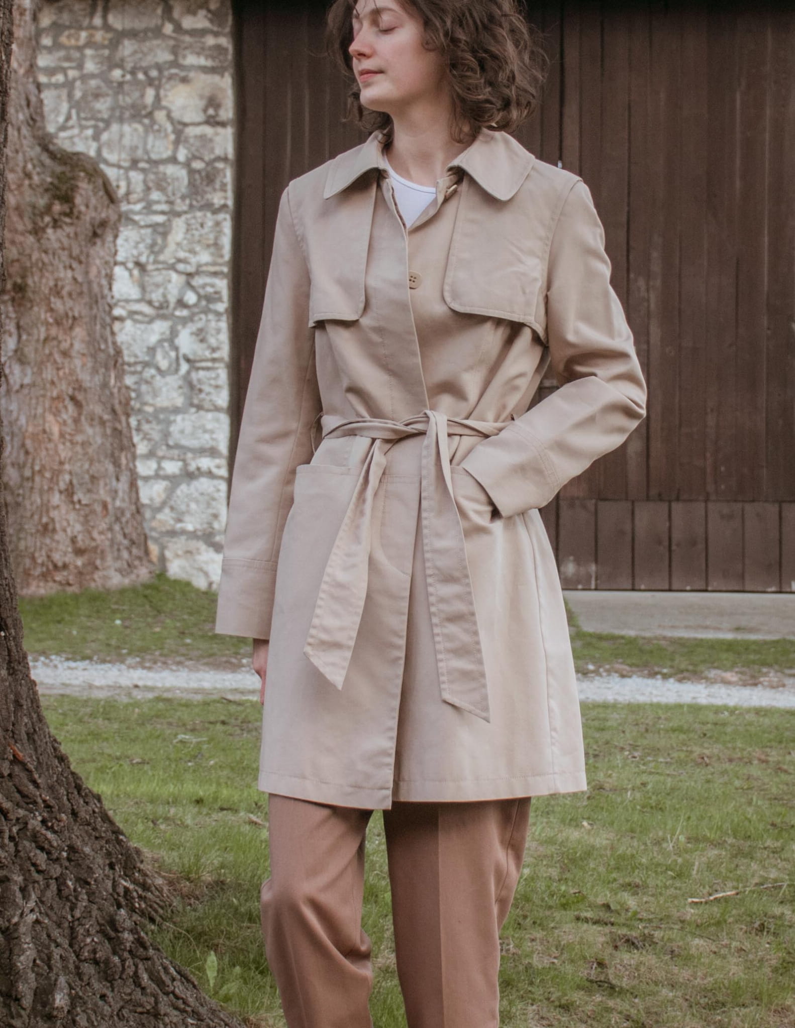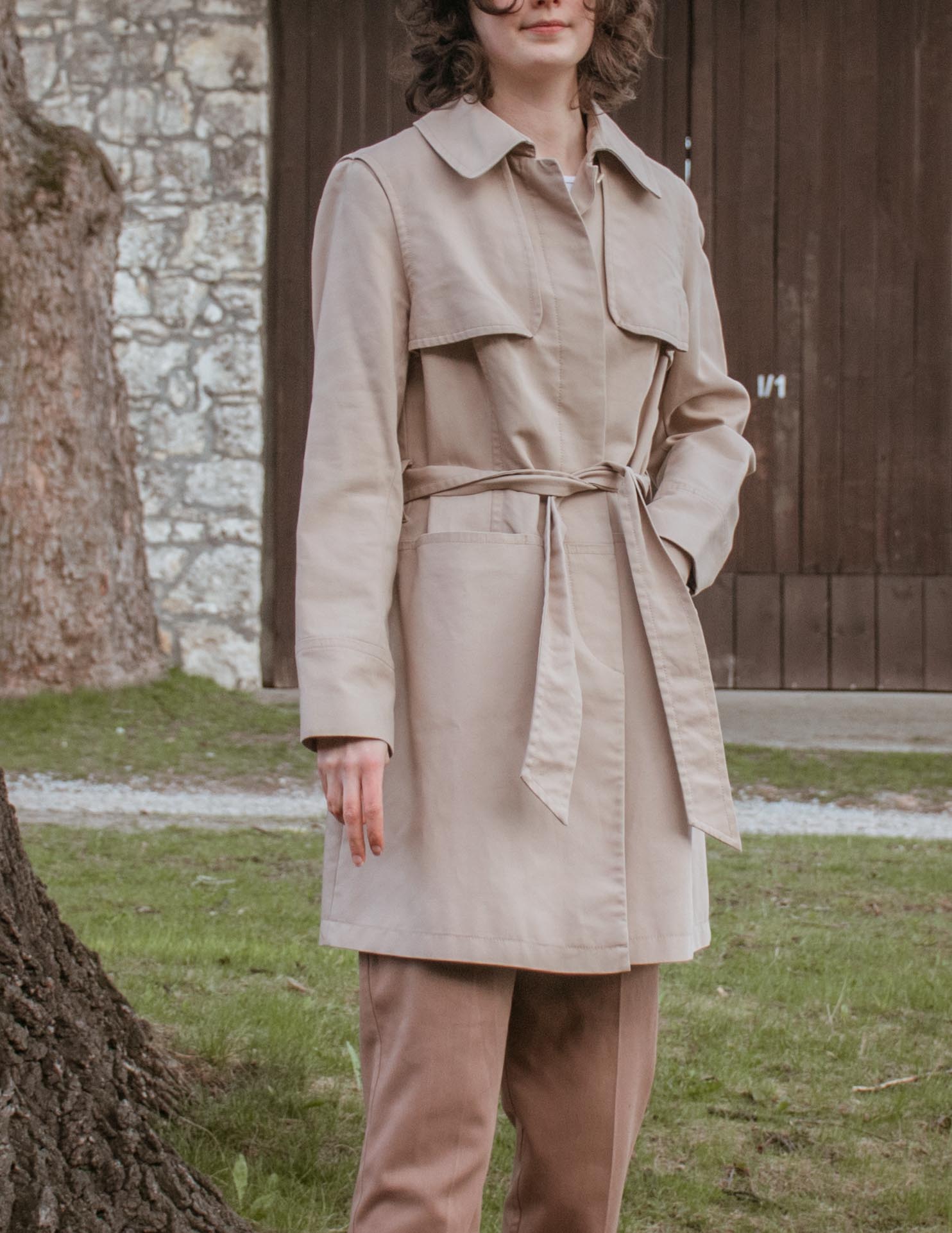 Trencz z paskiem ciepły beż 100% bawełna S/M