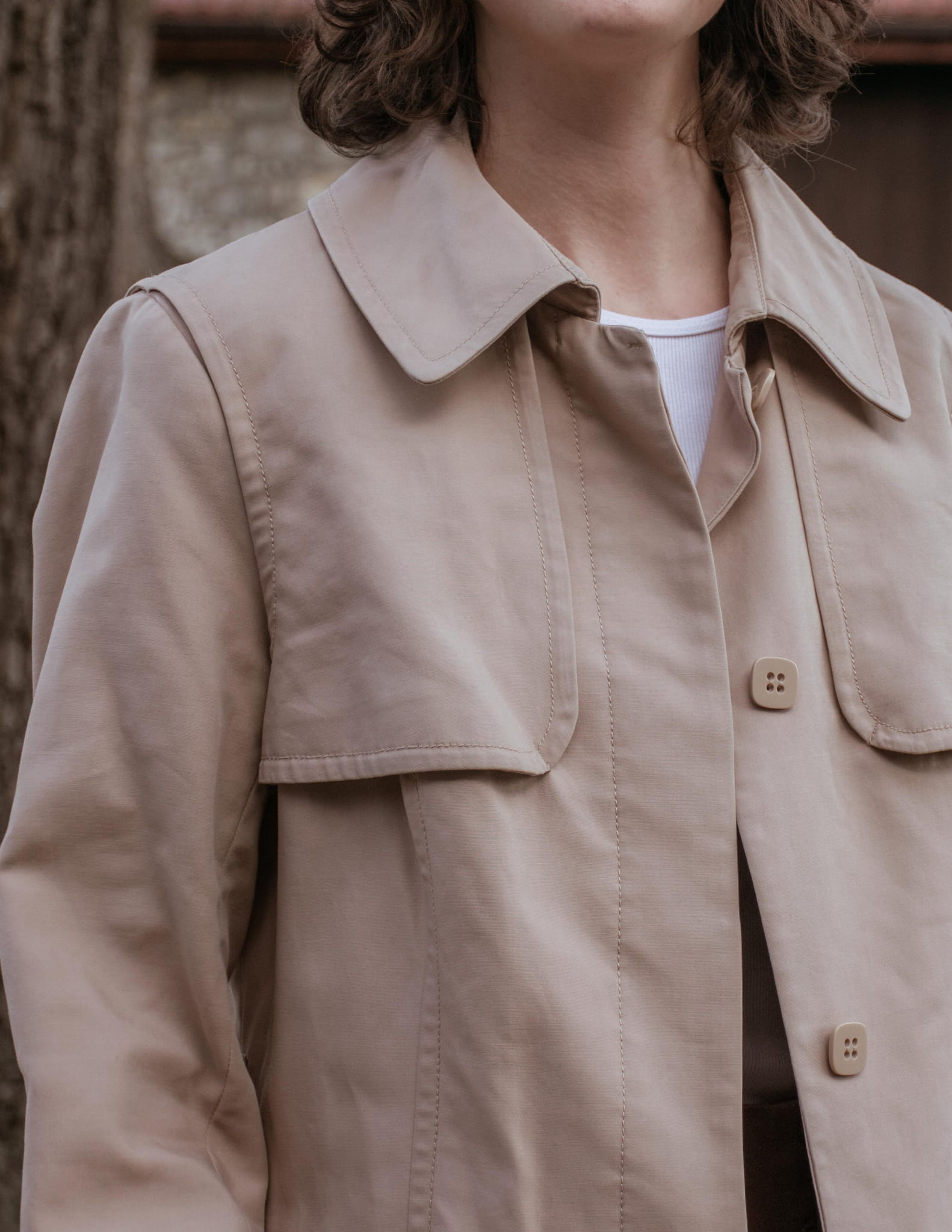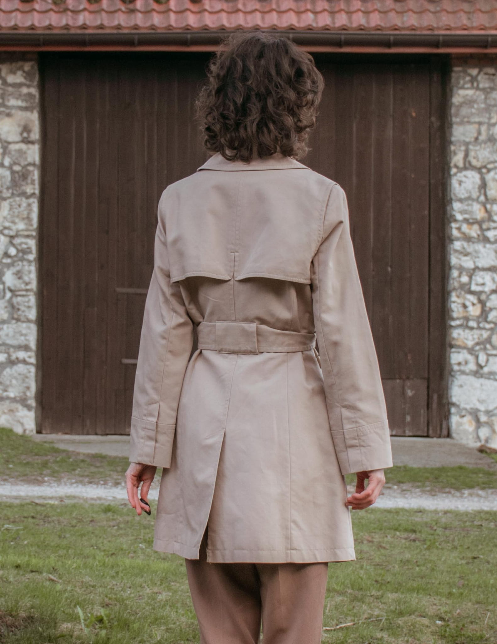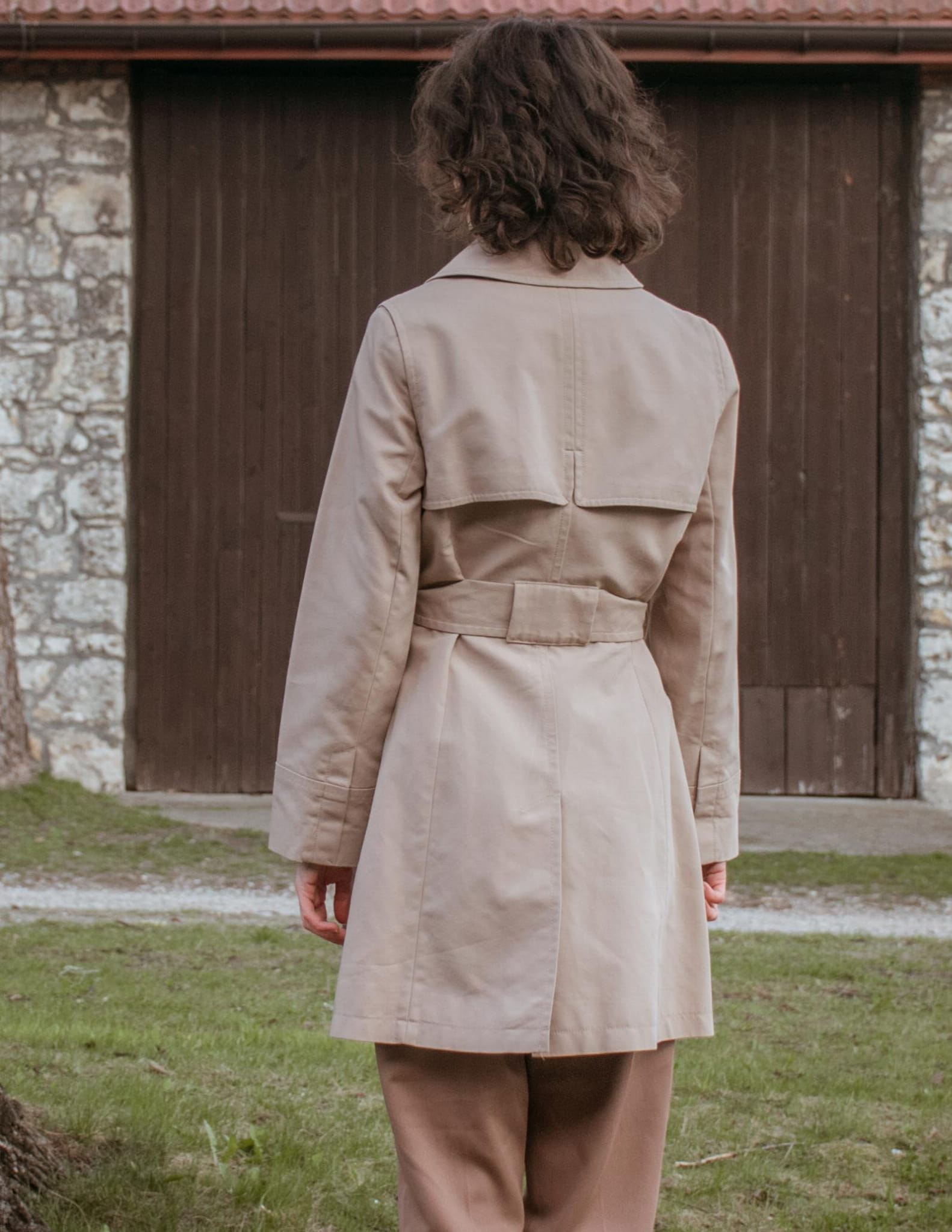 Trencz z paskiem ciepły beż 100% bawełna S/M