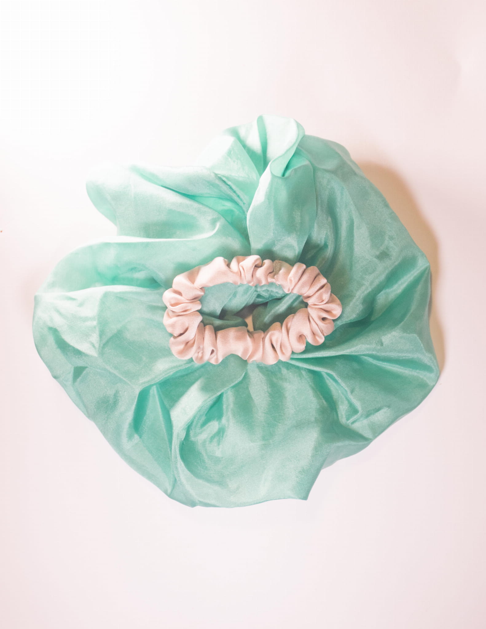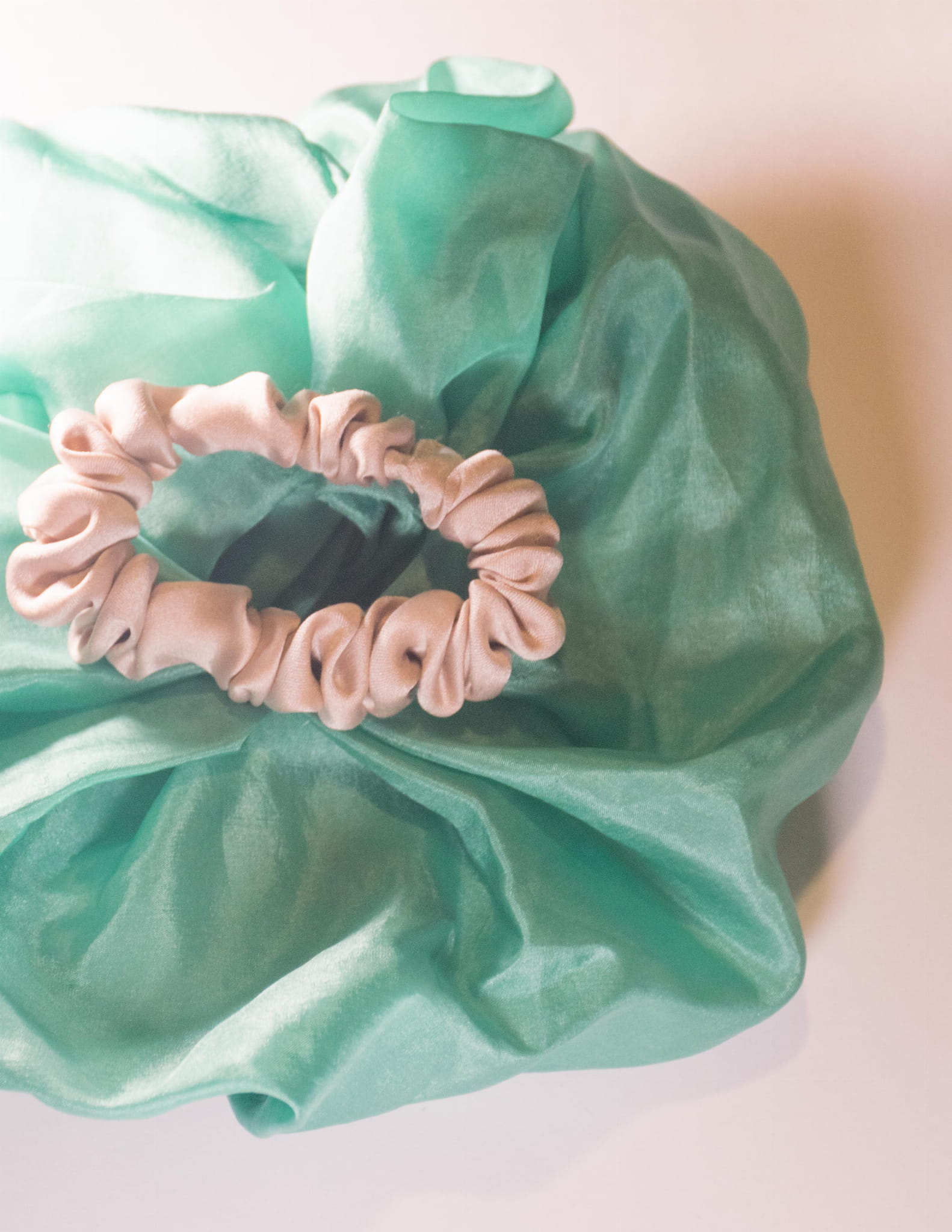 Zestaw 2 sztuk gumek do włosów szytych ręcznie z 100% jedwabiu z odzysku - co oznacza, że materiał nie został kupiony fabrycznie nowy, jest z drugiej ręki. Są to najczęściej jedwabne bluzki/apaszki posiadające miejscowe zniszczenie, które omijam i wykorzystuję pozostałą część.