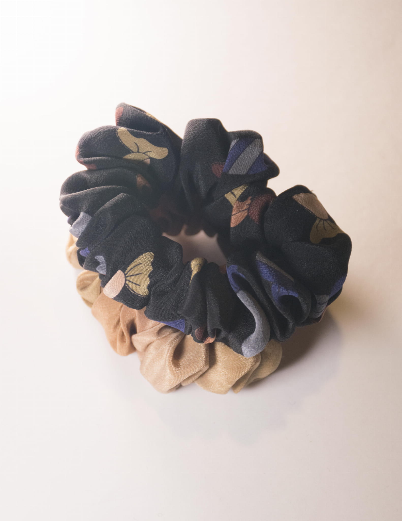 Zestaw 2 sztuk gumek do włosów szytych ręcznie z 100% jedwabiu z odzysku - co oznacza, że materiał nie został kupiony fabrycznie nowy, jest z drugiej ręki. Są to najczęściej jedwabne bluzki/apaszki posiadające miejscowe zniszczenie, które omijam i wykorzystuję pozostałą część.