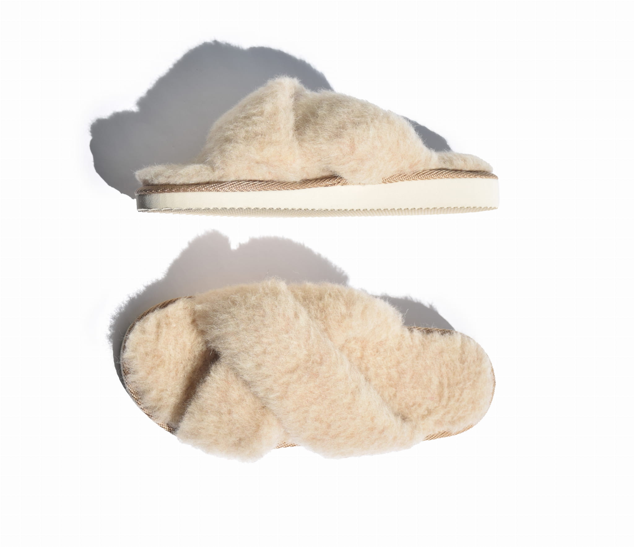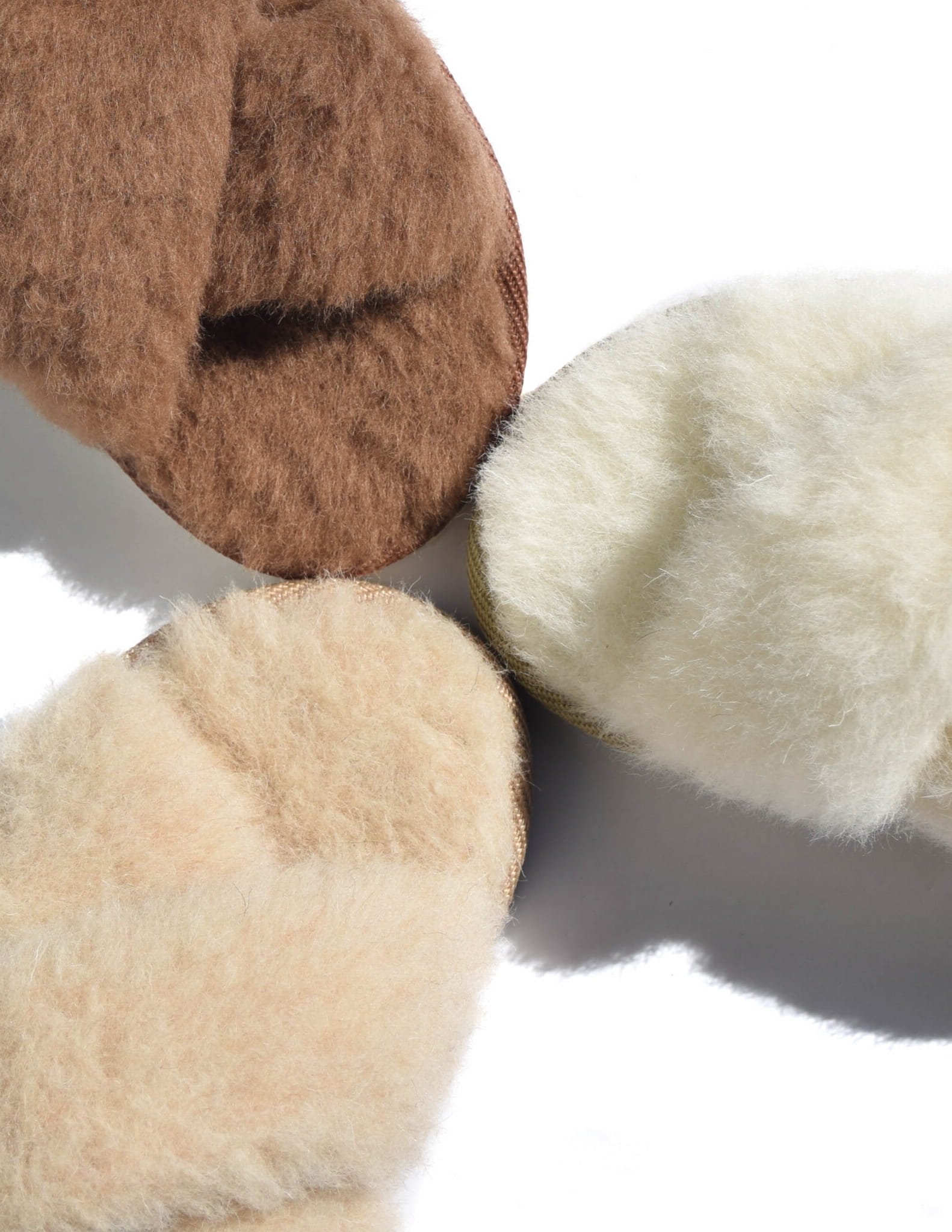Każda para jest szyta ręcznie z naturalnego surowca jakim jest wełna dlatego możliwe są minimalne różnice w kształcie obuwia, długości włosia oraz kolorze wełny niż widoczne na zdjęciach